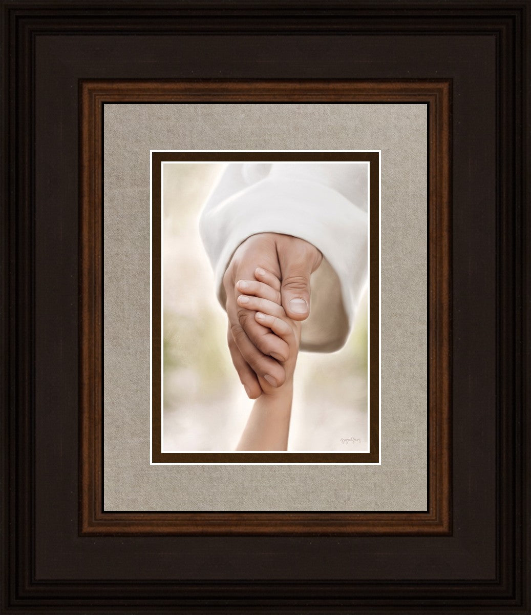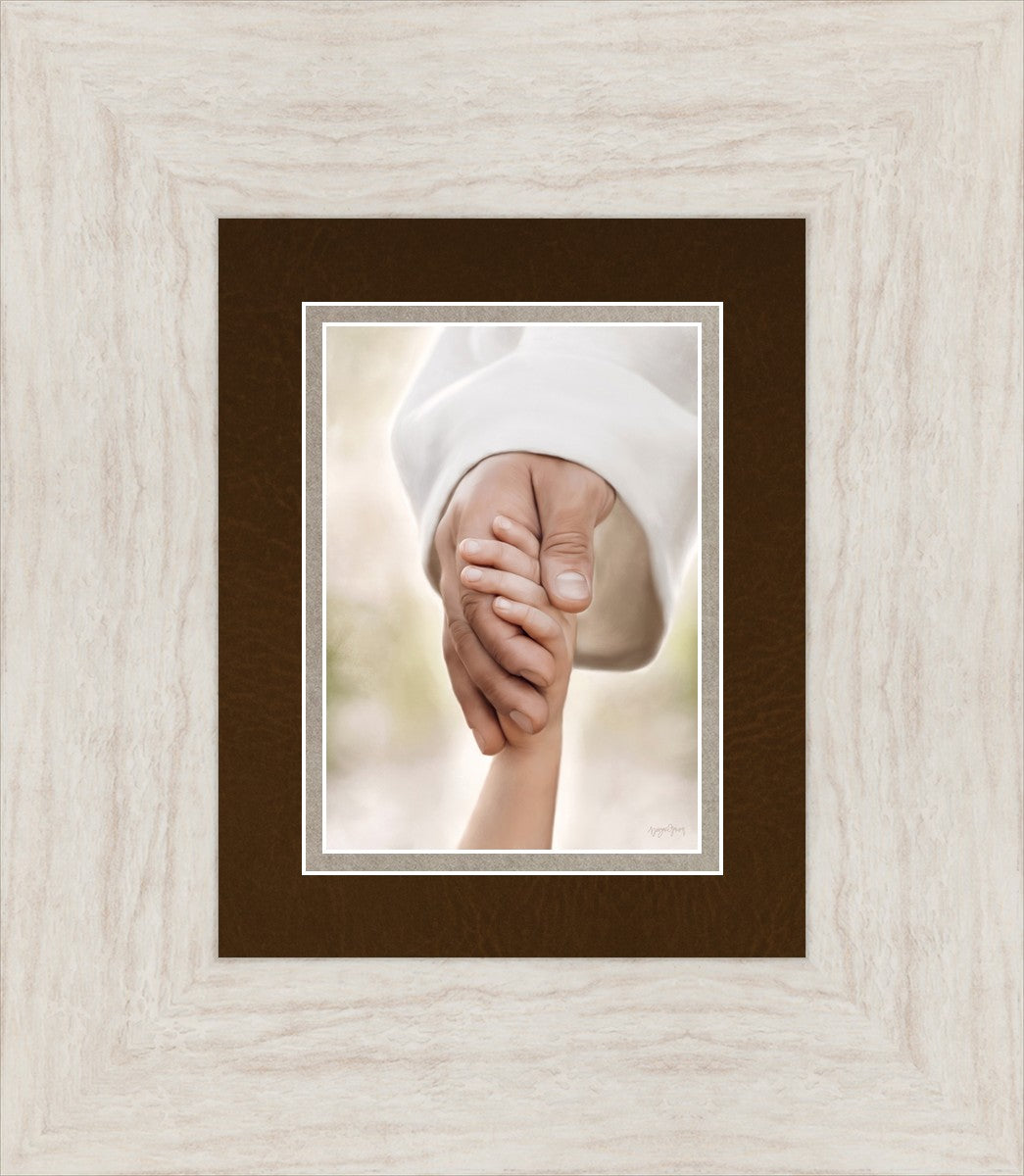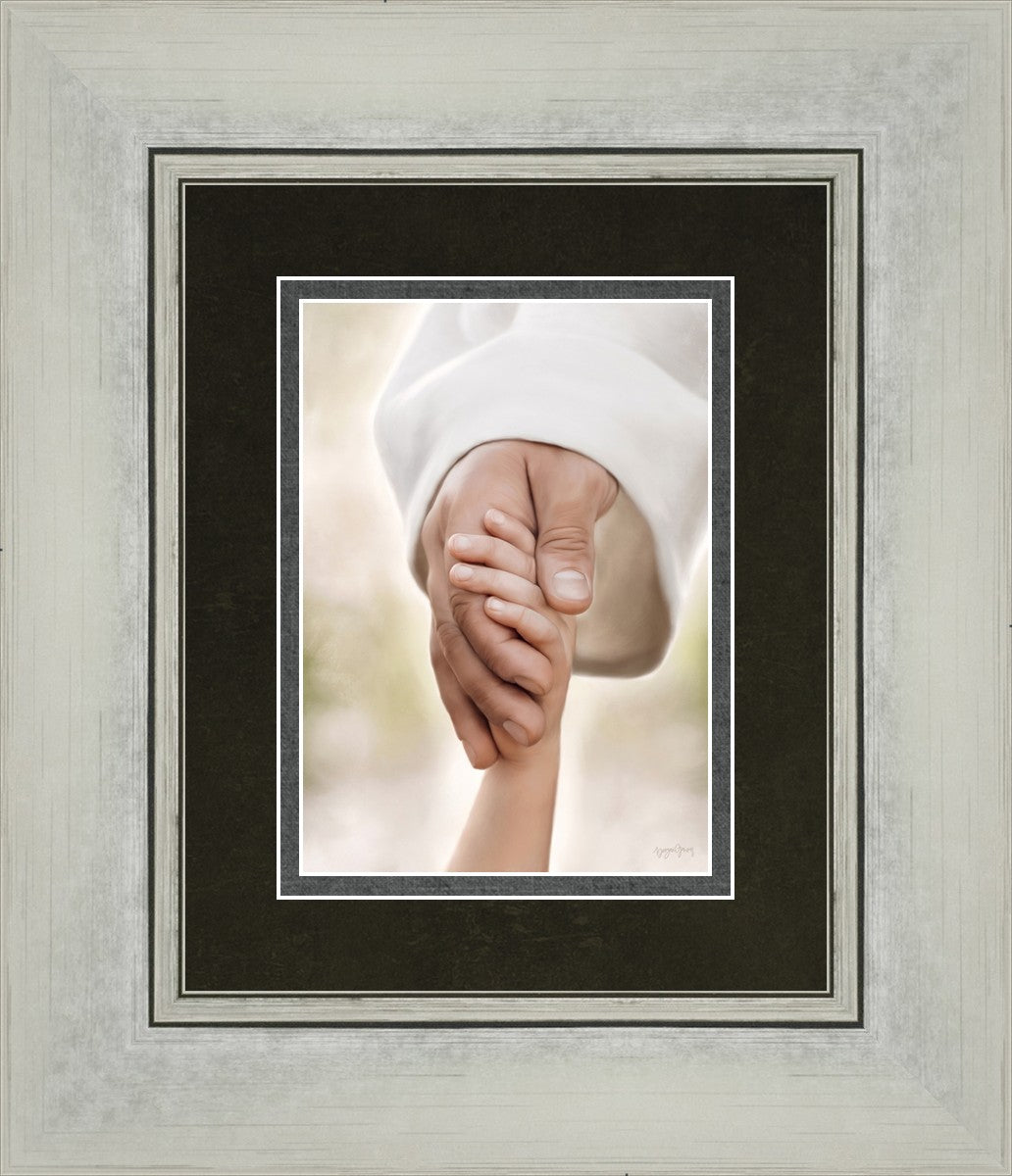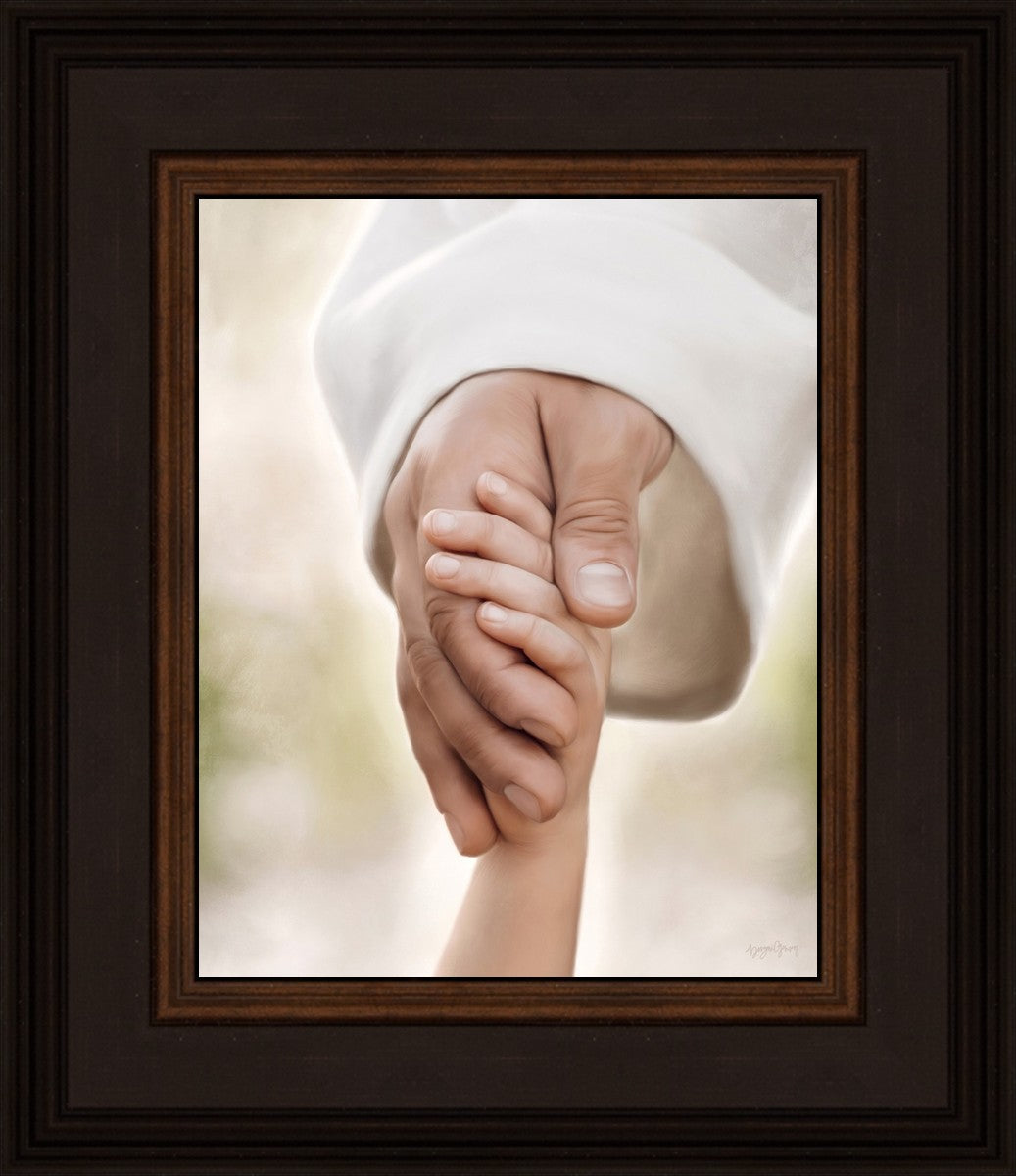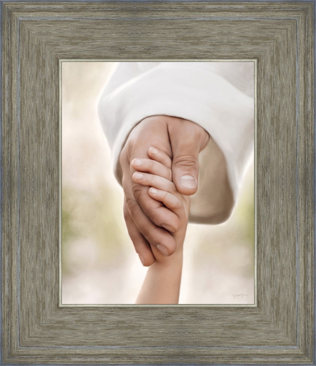 A beautiful painted portrait of the Savior holding a little child's hand as they walk.