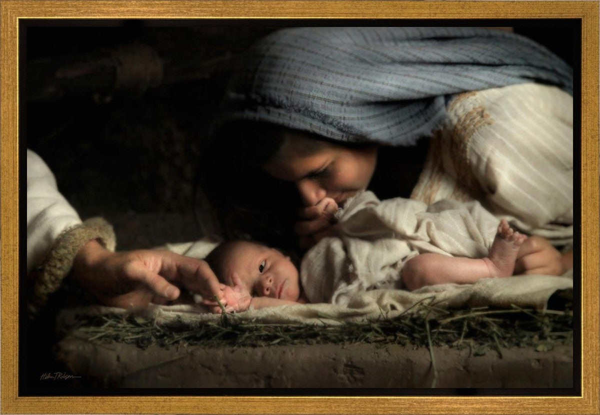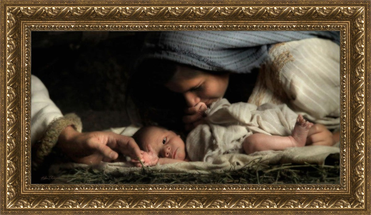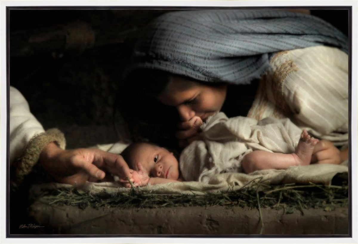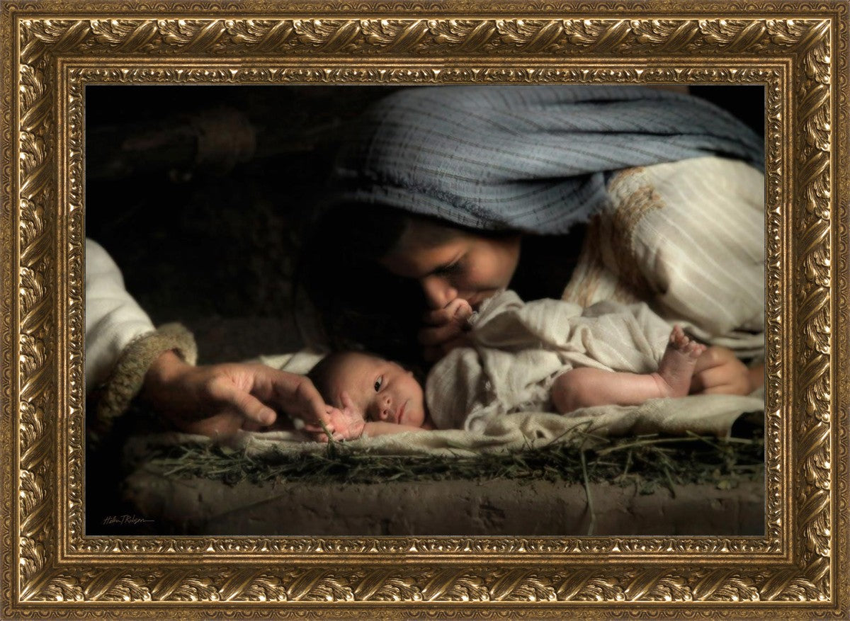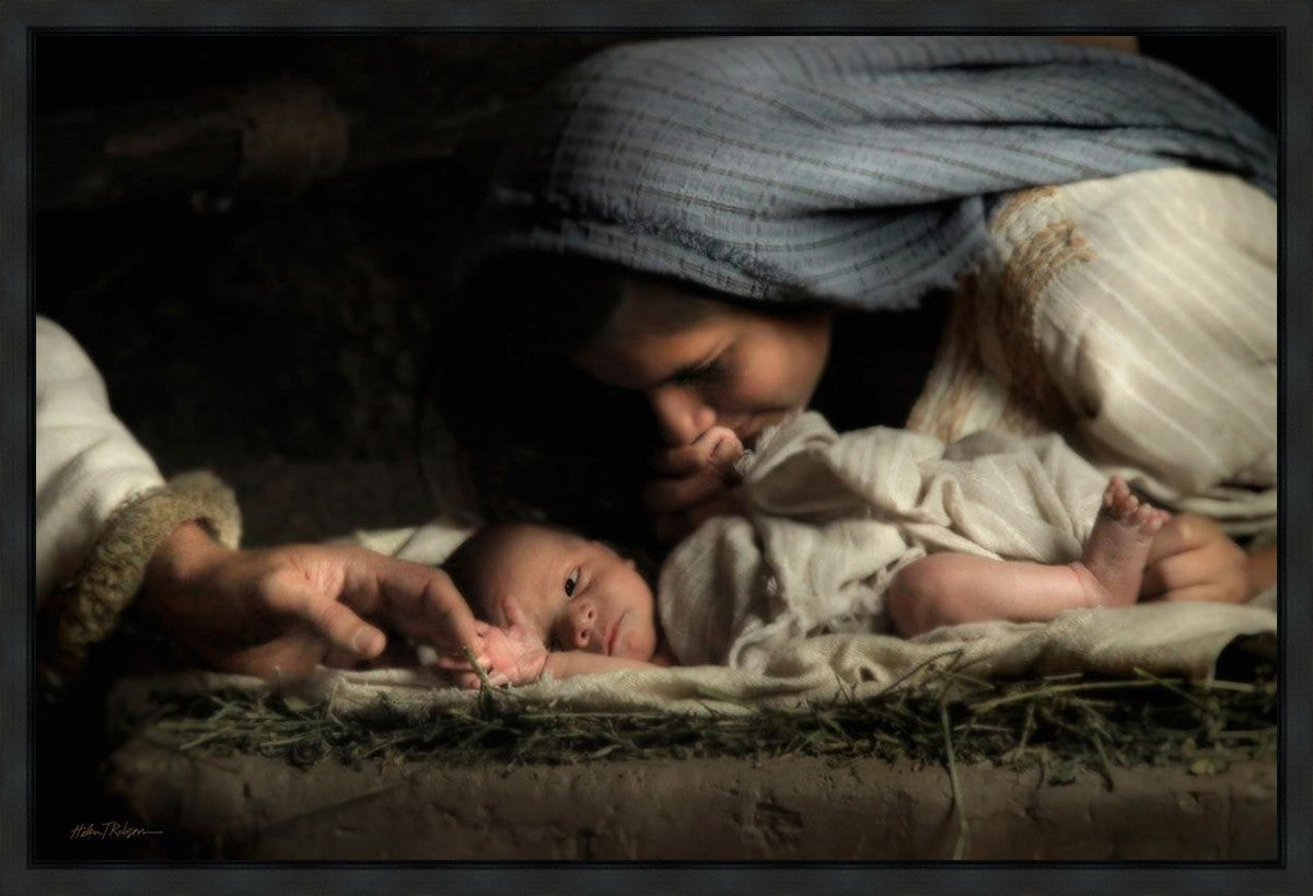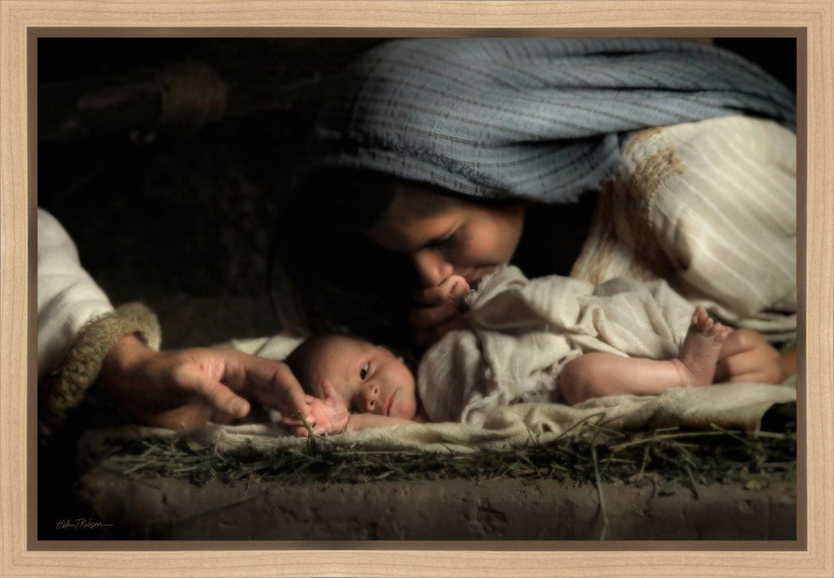 The sense of purpose in the eyes of the newborn Christ as he reaches out to Joseph's fingers is amazing.