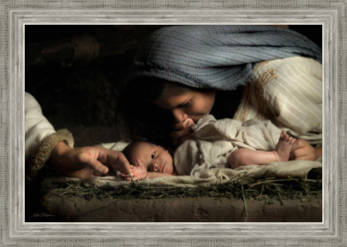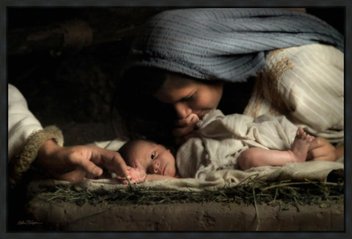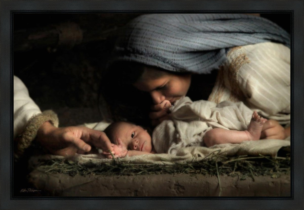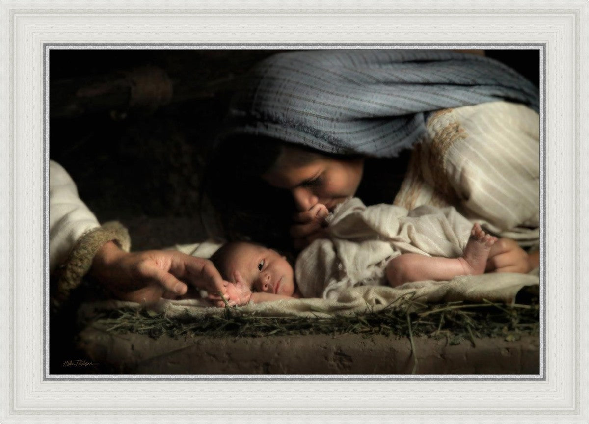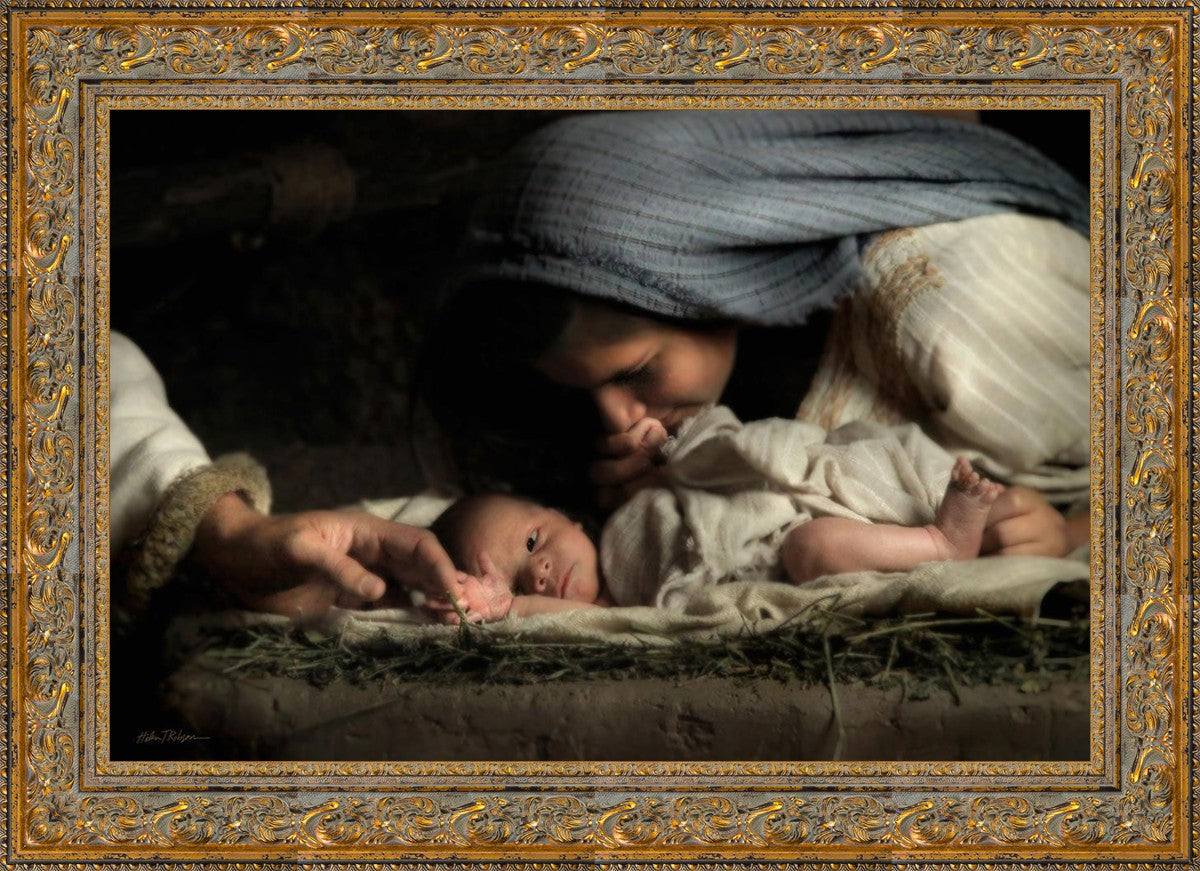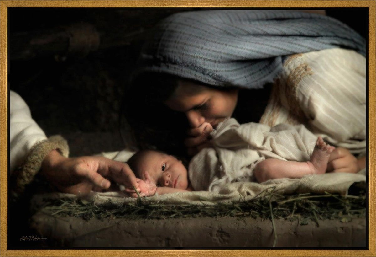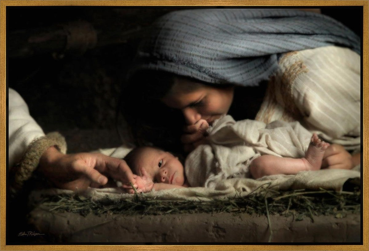 The sense of purpose in the eyes of the newborn Christ as he reaches out to Joseph's fingers is amazing.