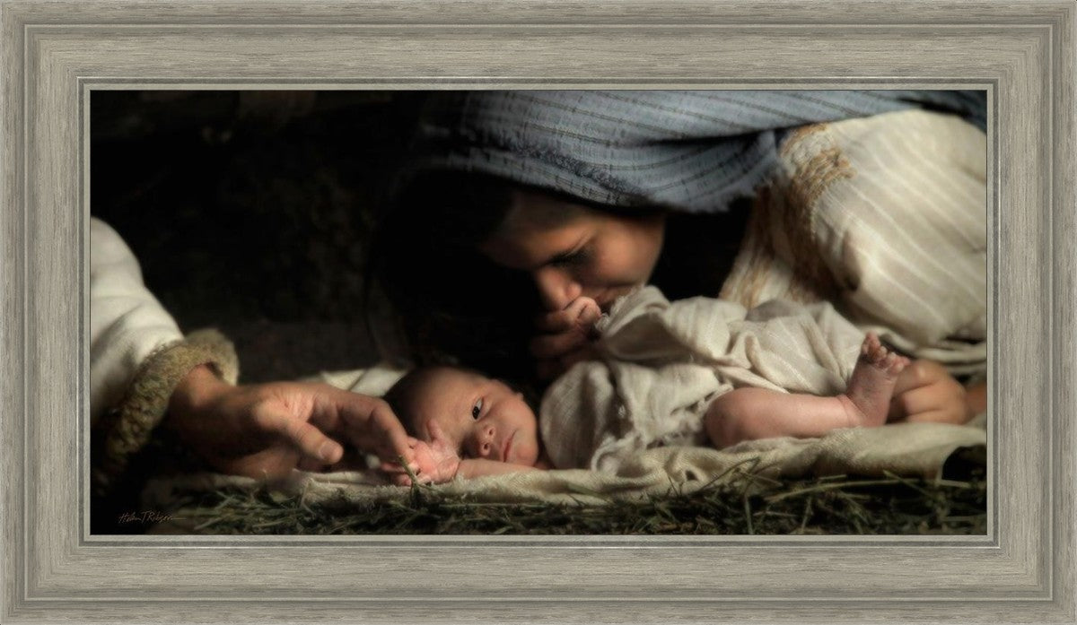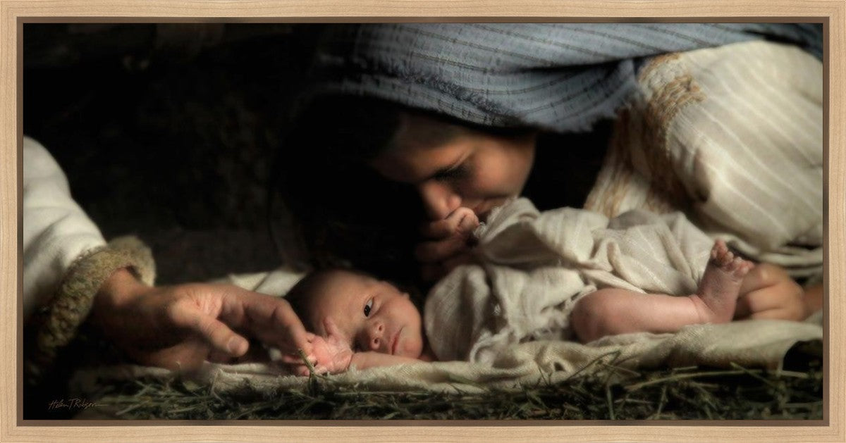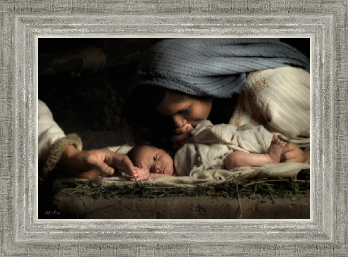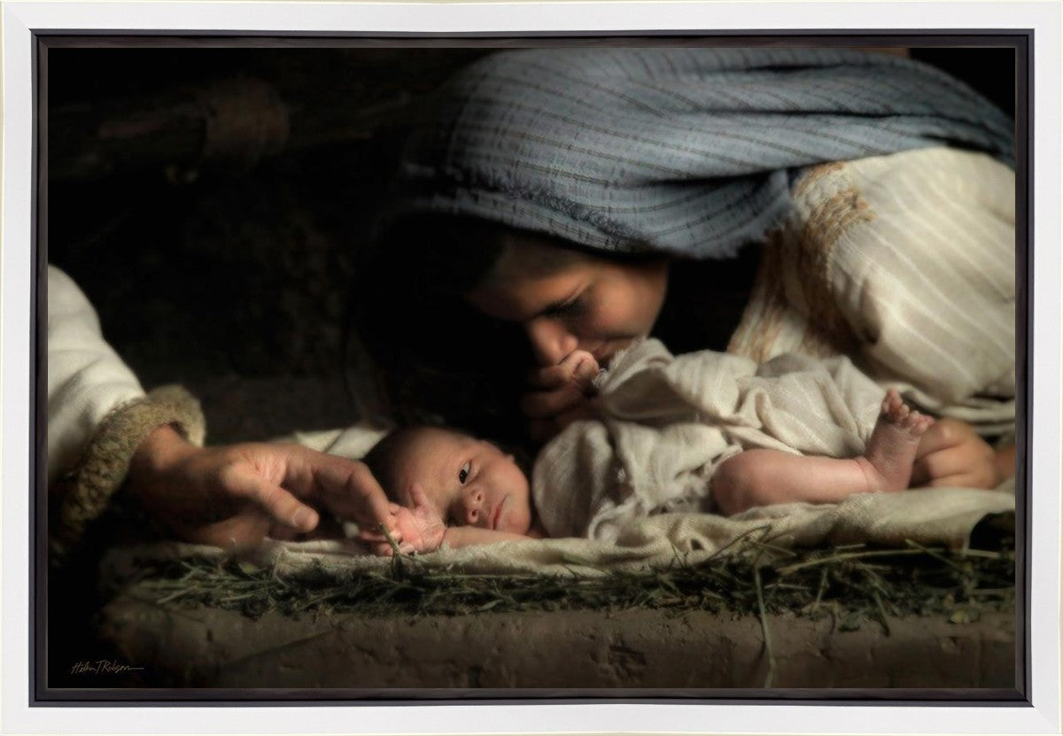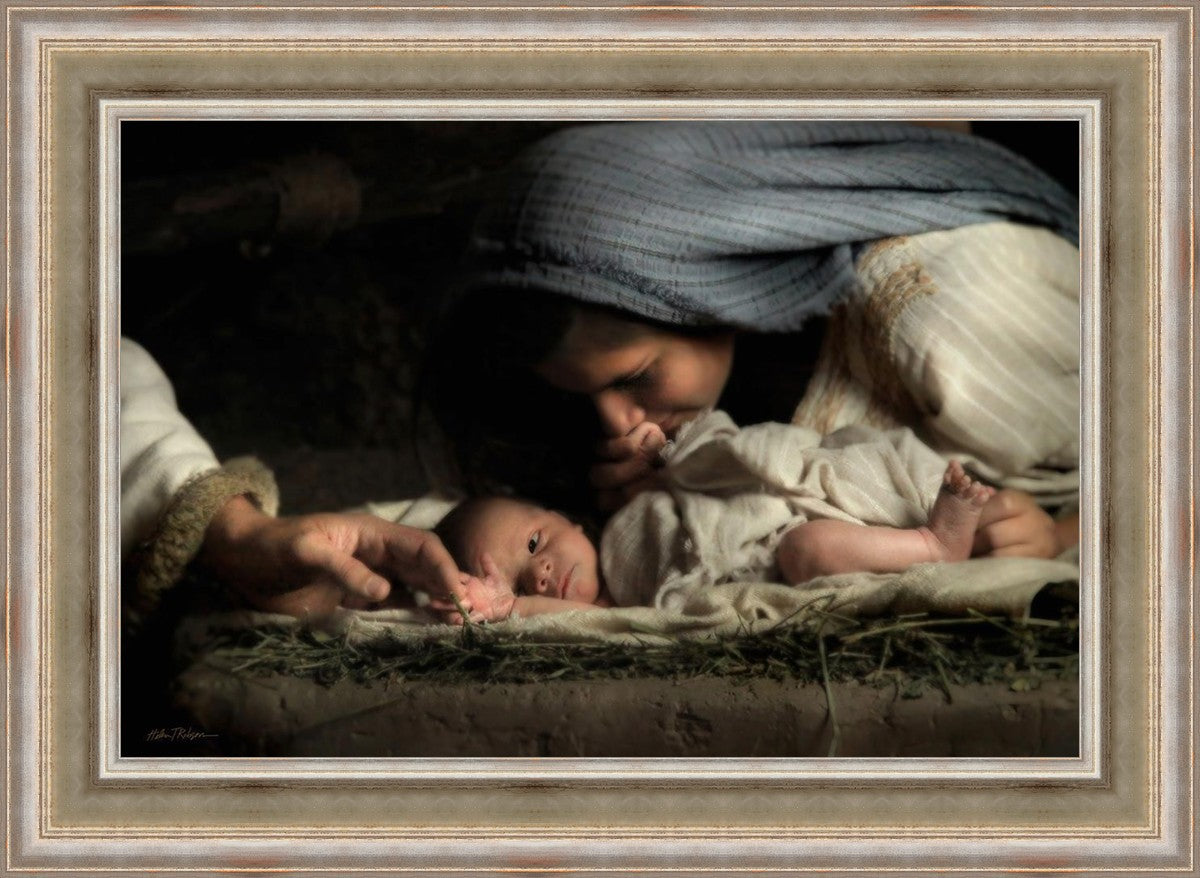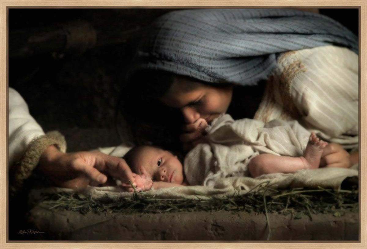 The sense of purpose in the eyes of the newborn Christ as he reaches out to Joseph's fingers is amazing.