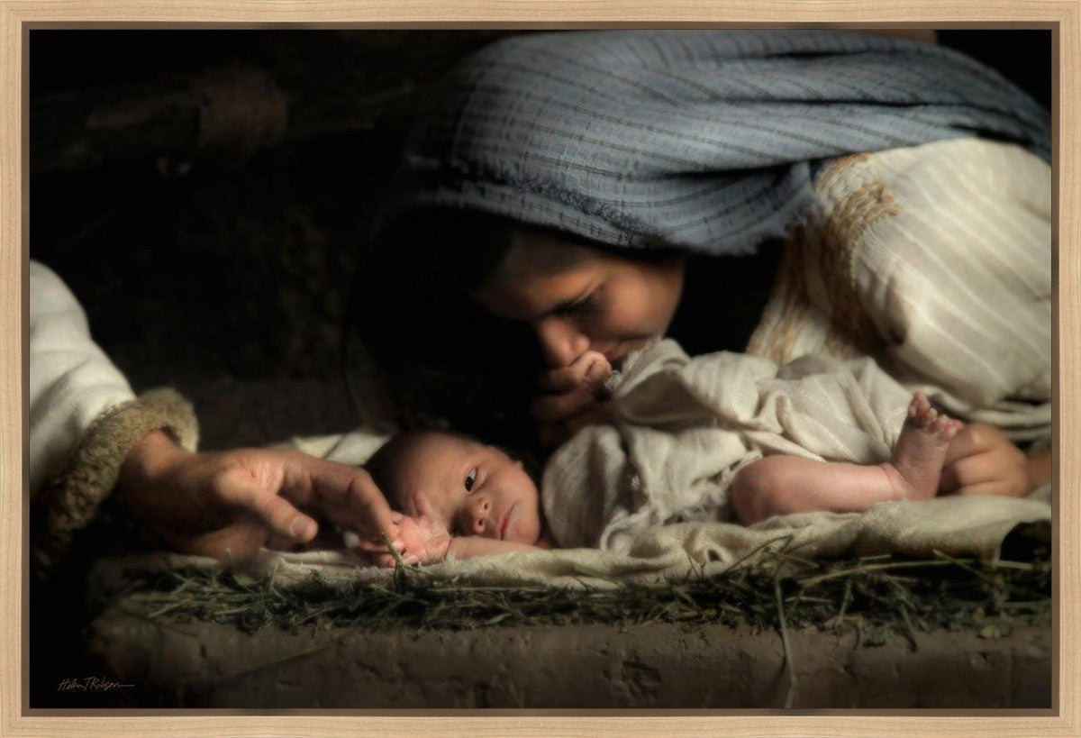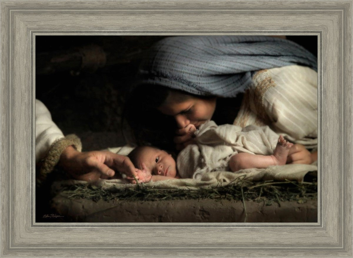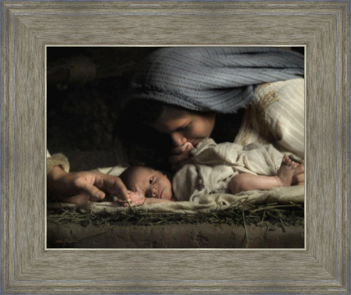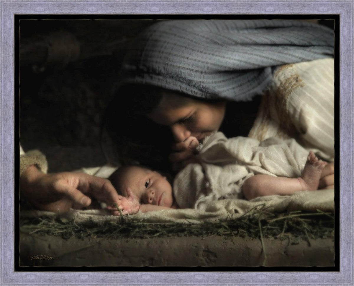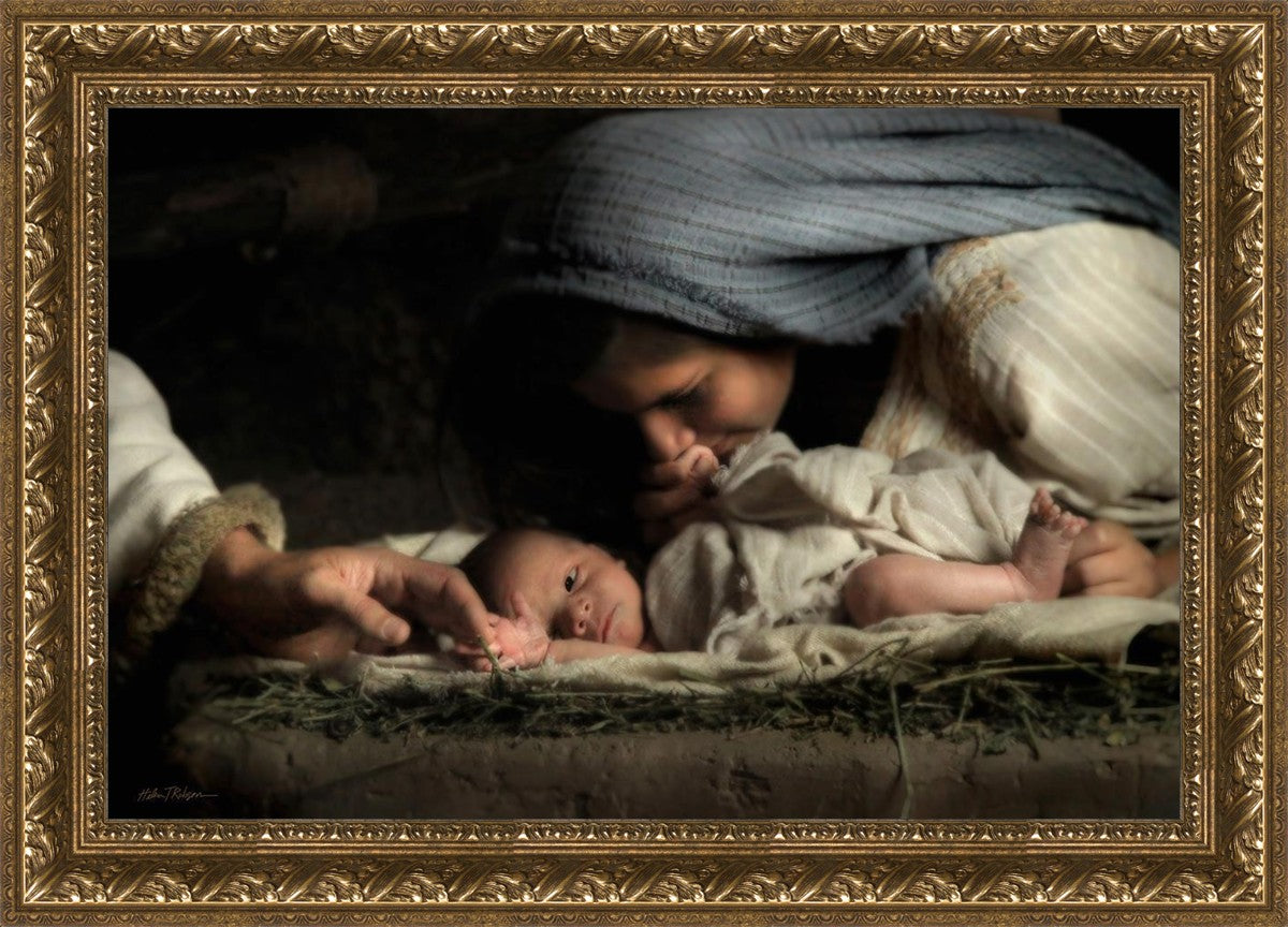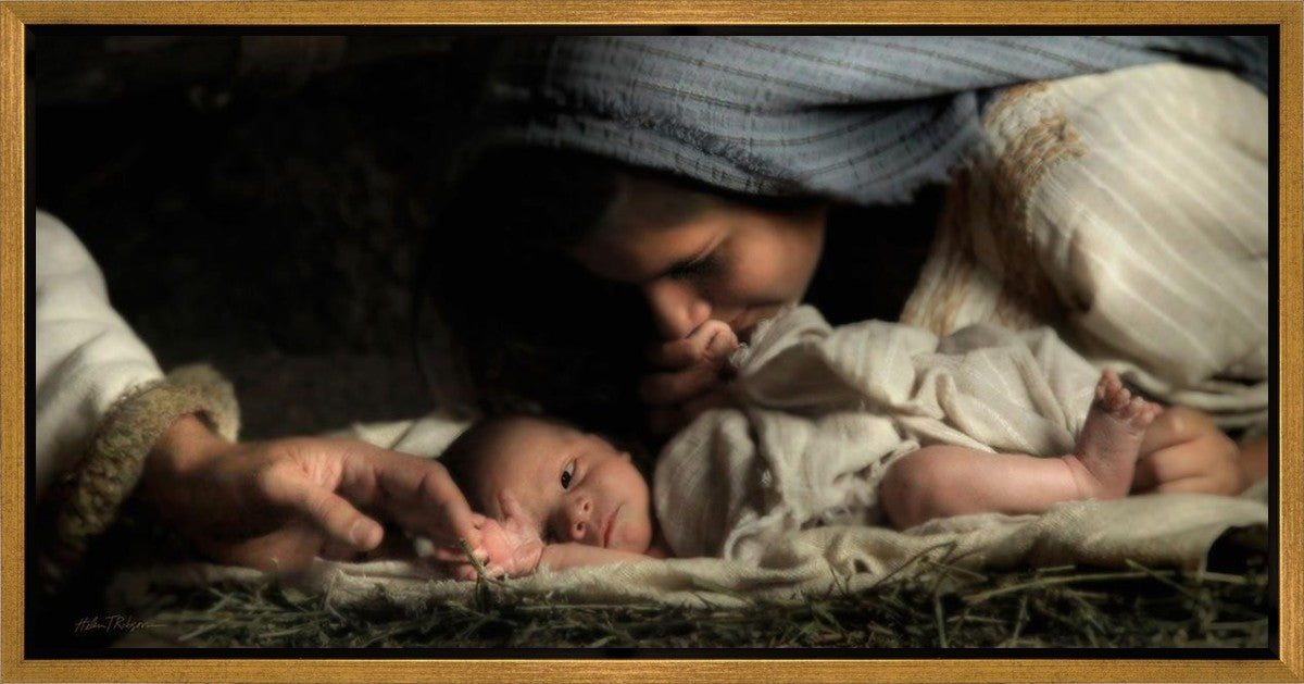 The sense of purpose in the eyes of the newborn Christ as he reaches out to Joseph's fingers is amazing.