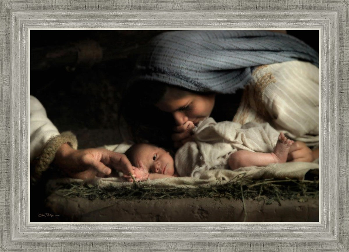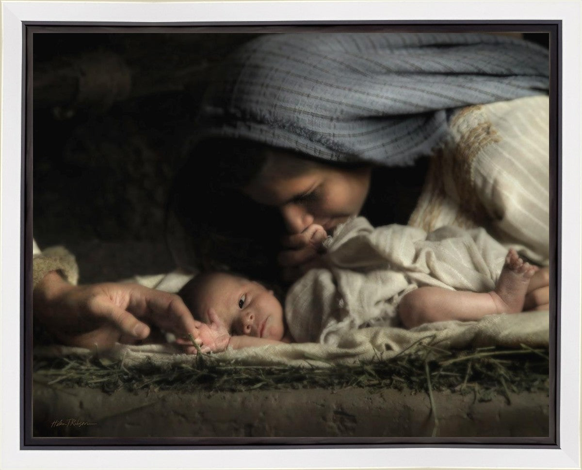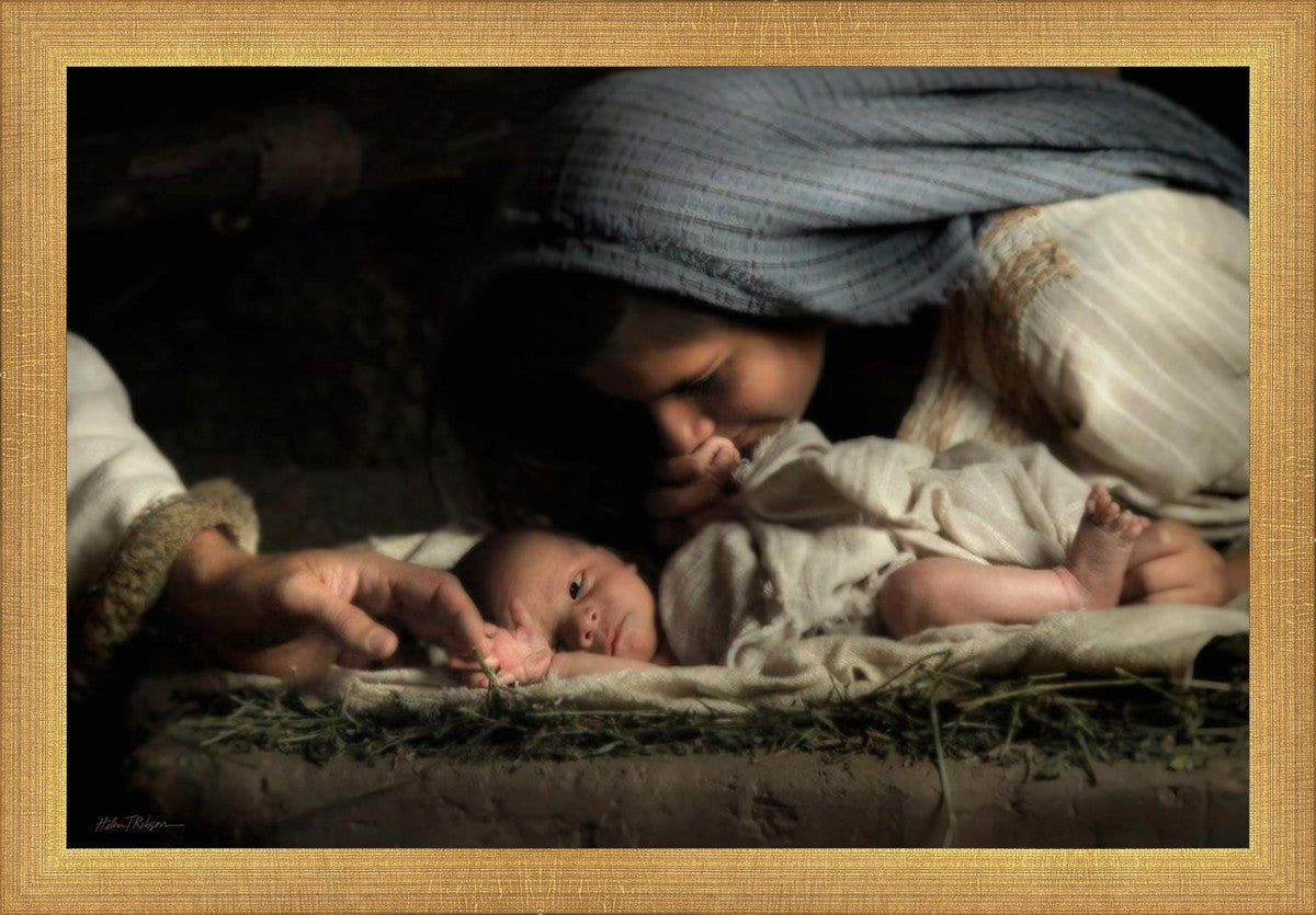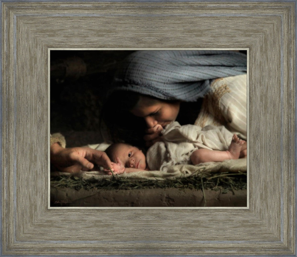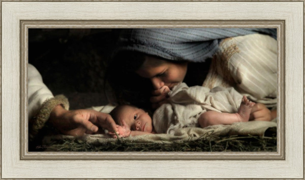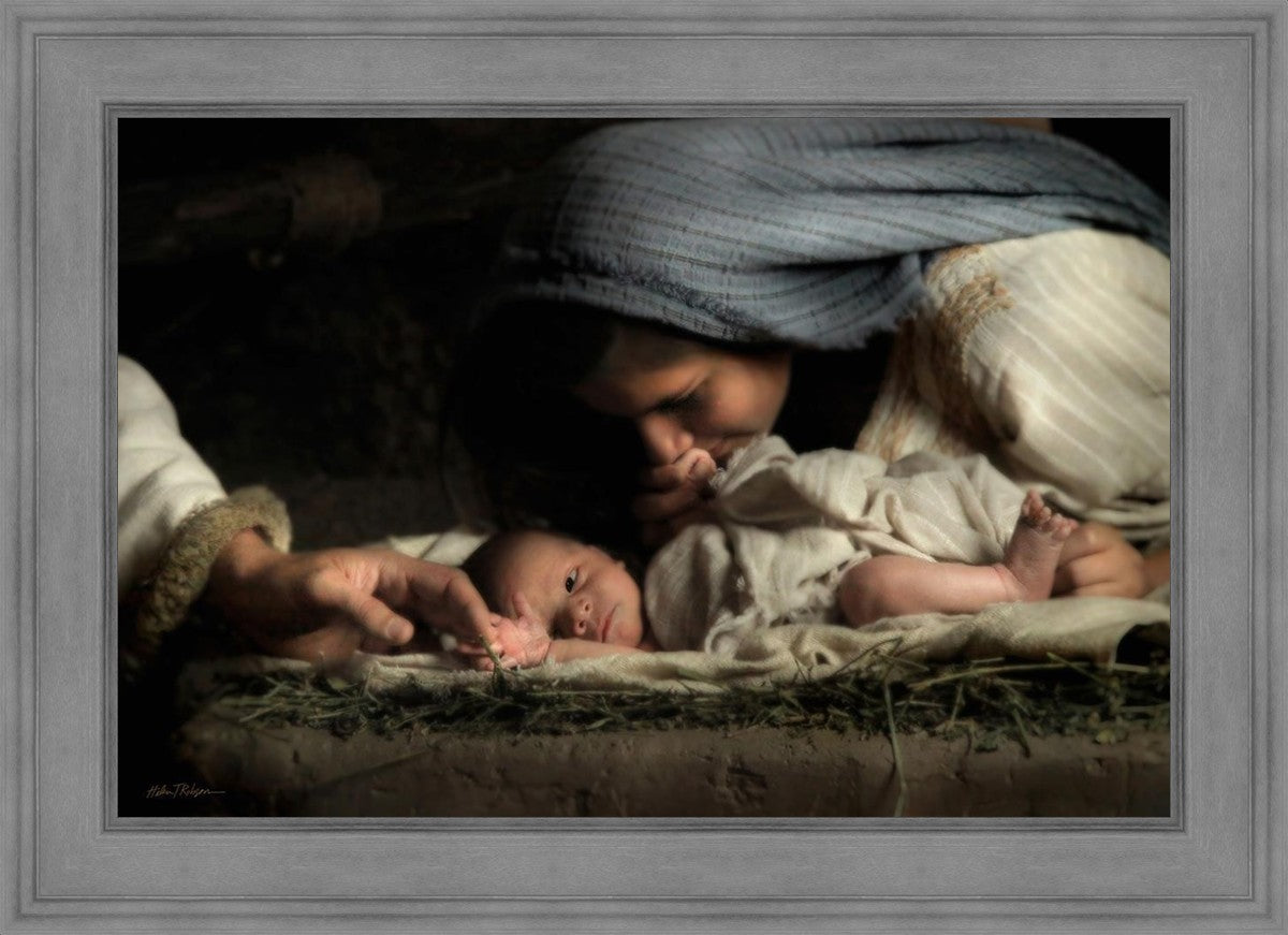 The sense of purpose in the eyes of the newborn Christ as he reaches out to Joseph's fingers is amazing.