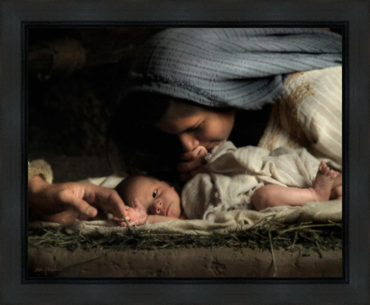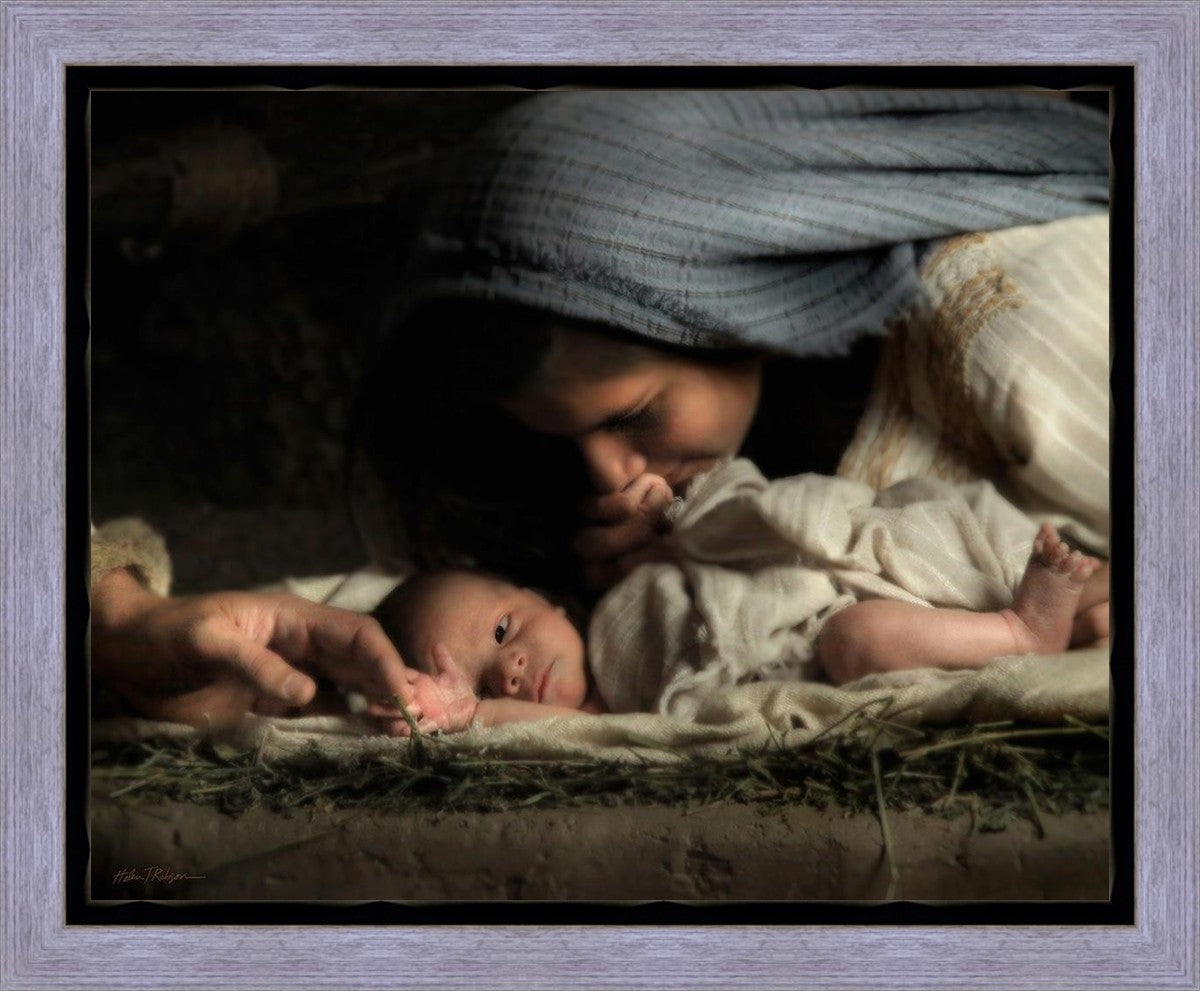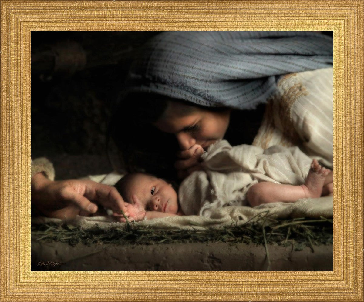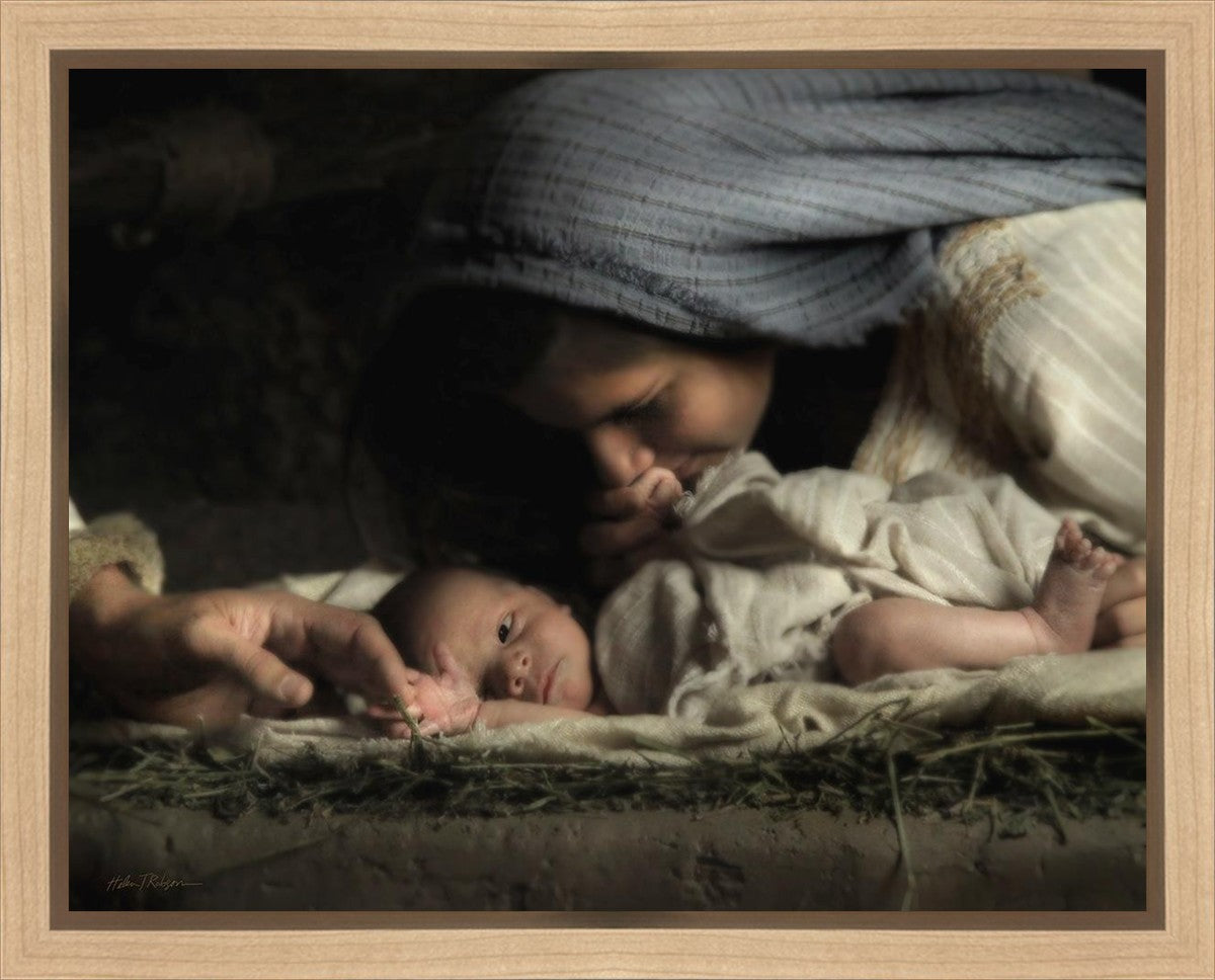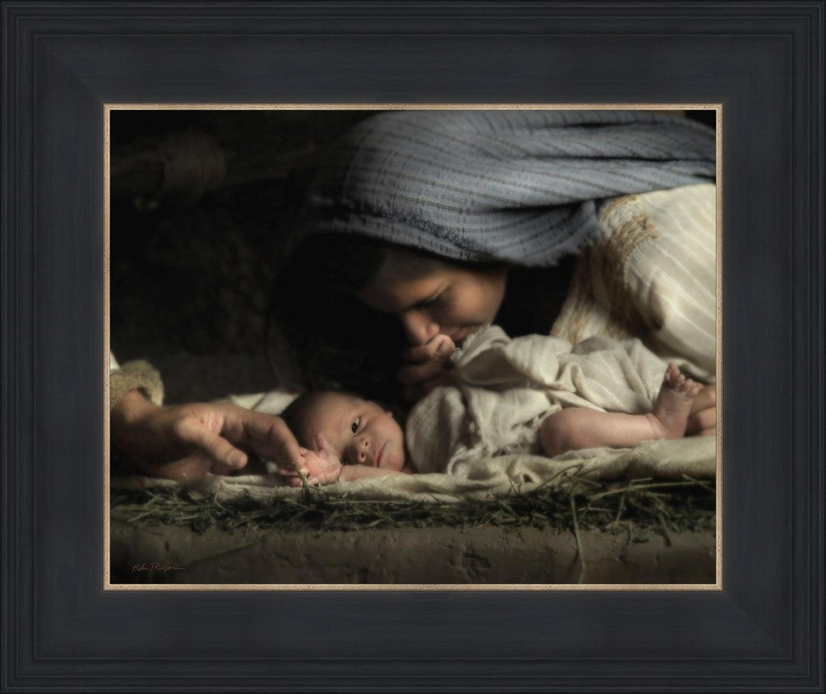 The sense of purpose in the eyes of the newborn Christ as he reaches out to Joseph's fingers is amazing.