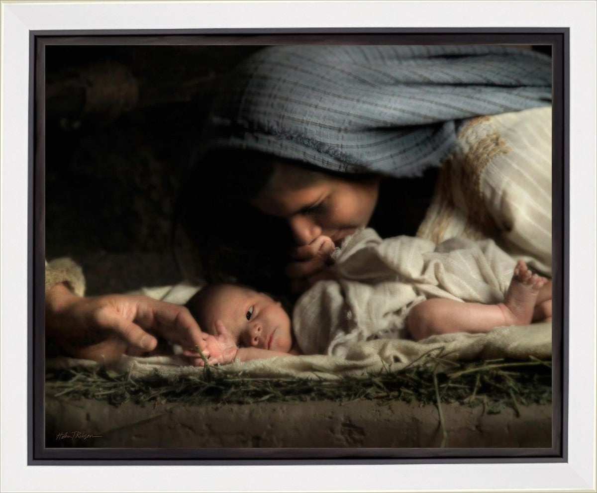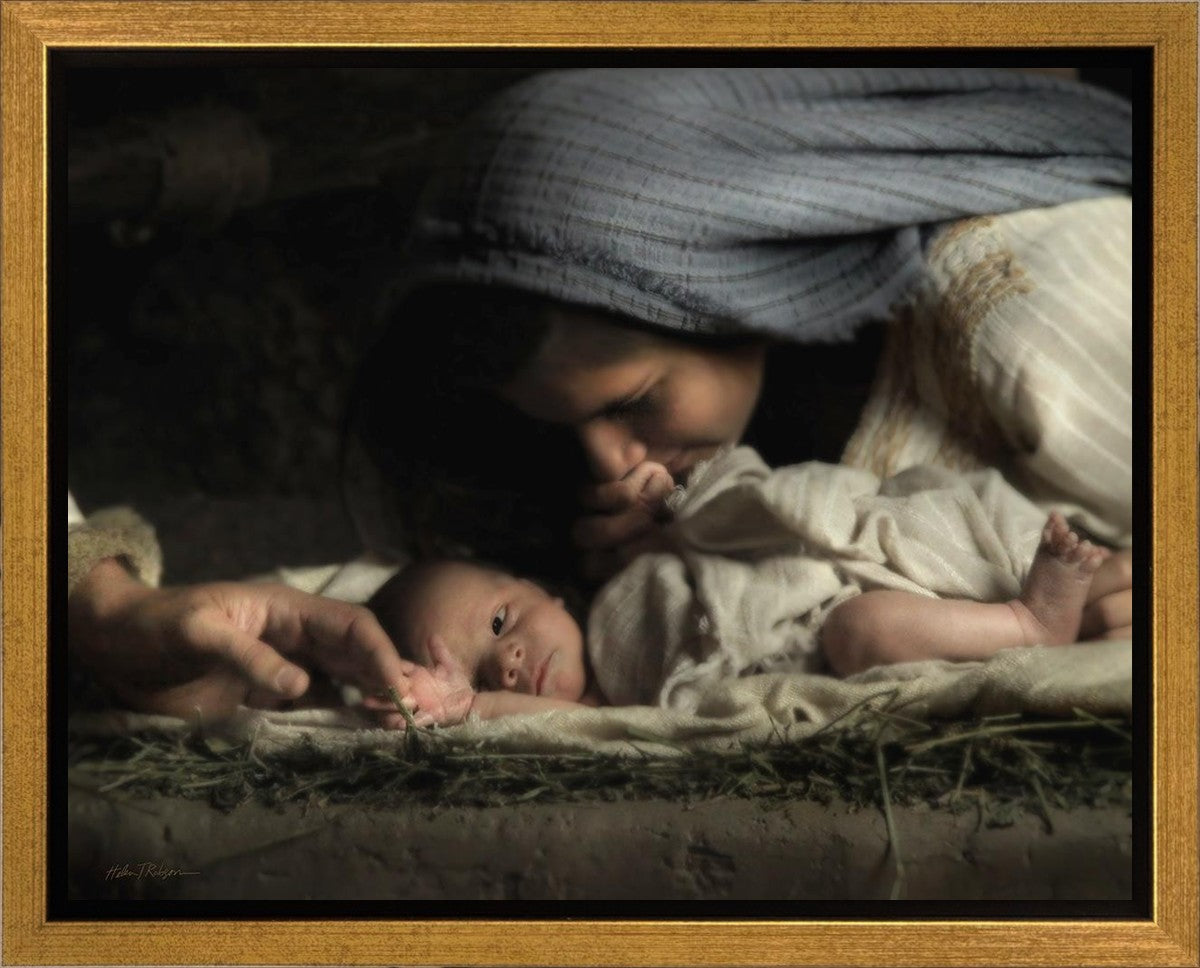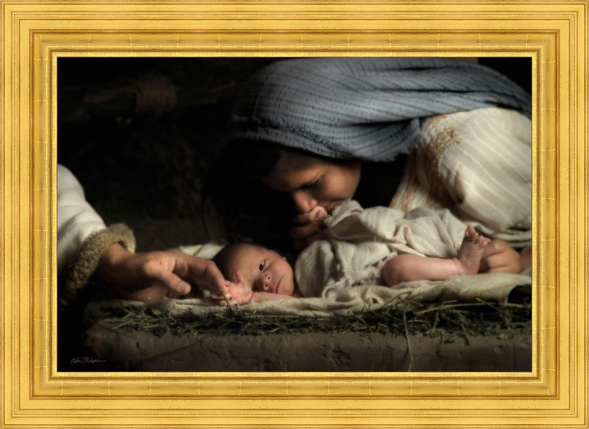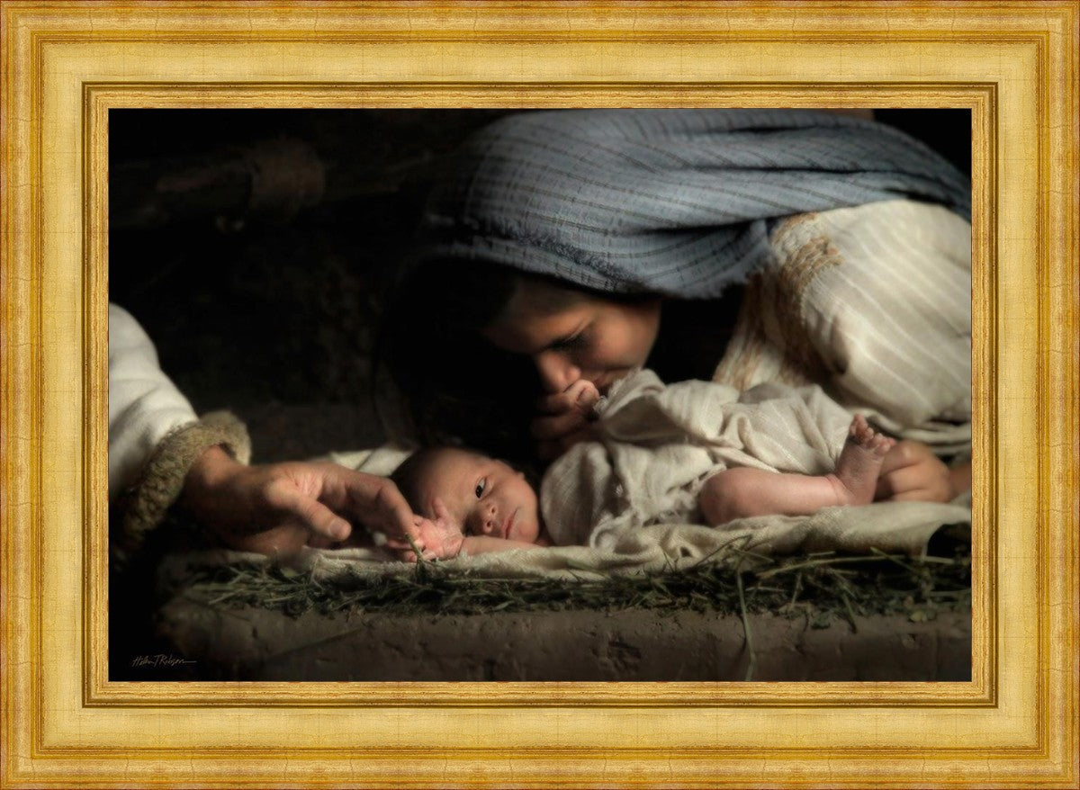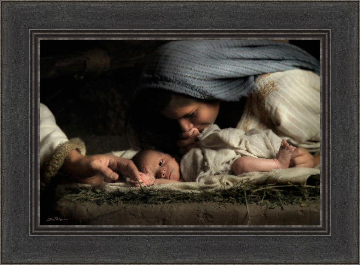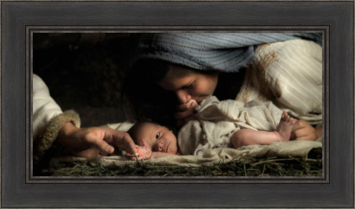 The sense of purpose in the eyes of the newborn Christ as he reaches out to Joseph's fingers is amazing.
