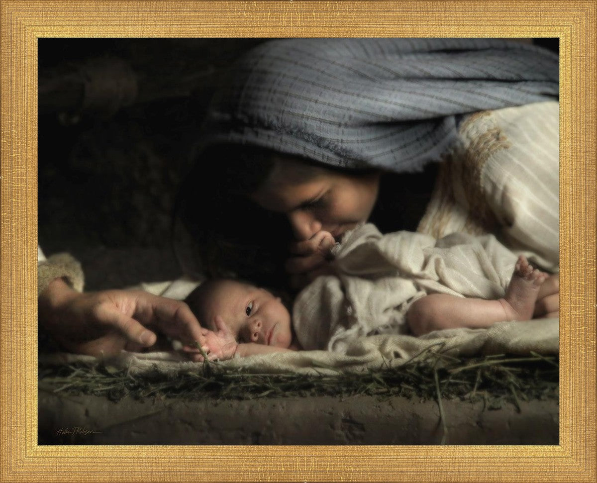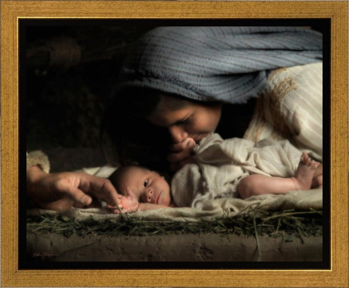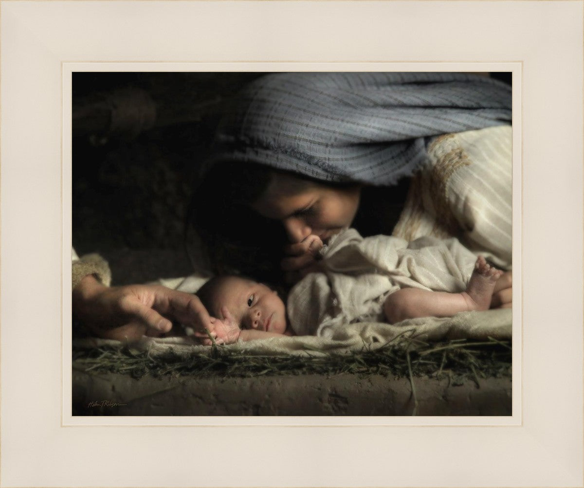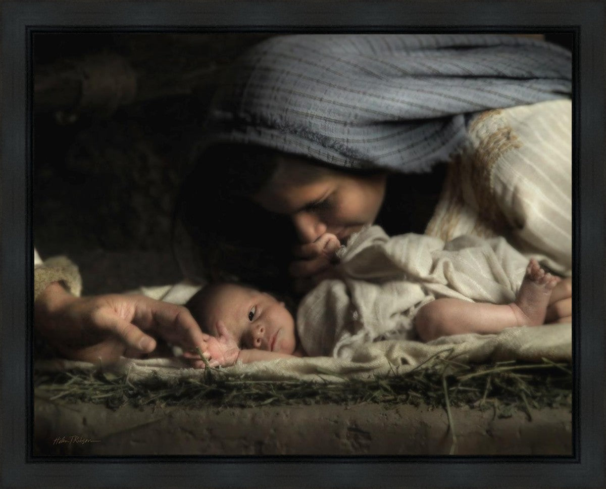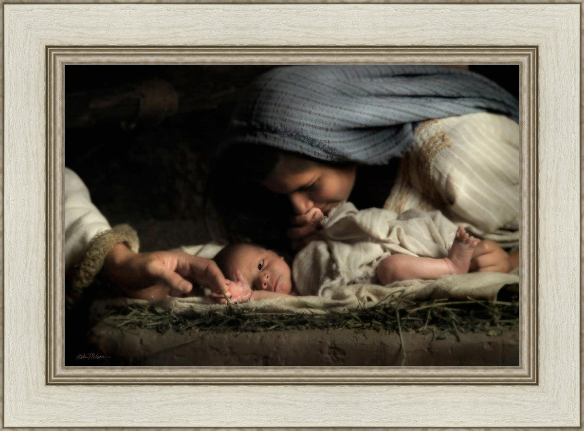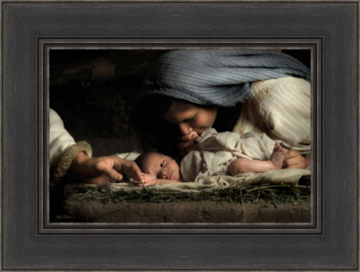 The sense of purpose in the eyes of the newborn Christ as he reaches out to Joseph's fingers is amazing.