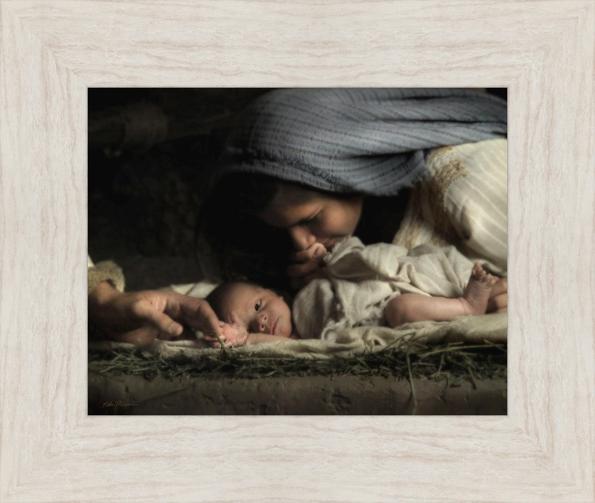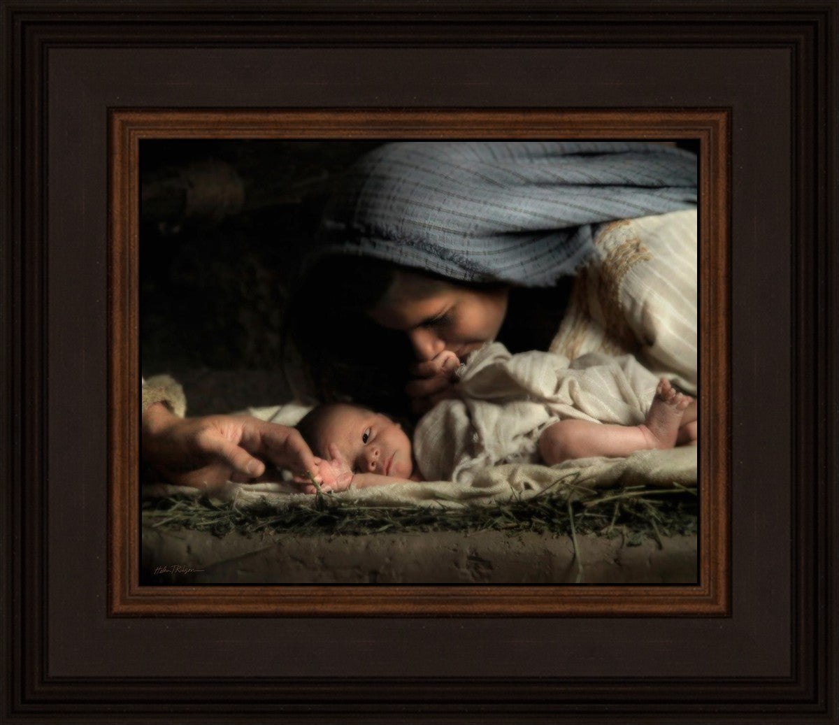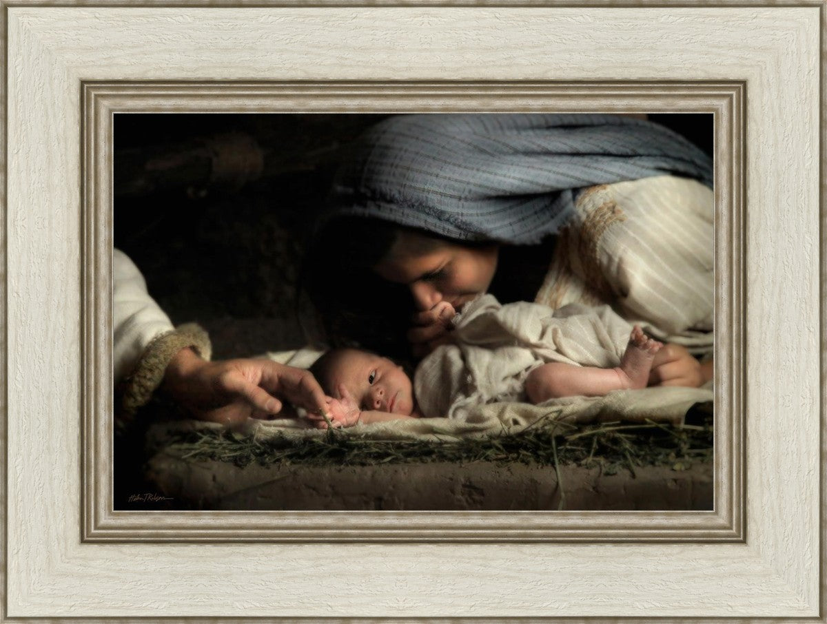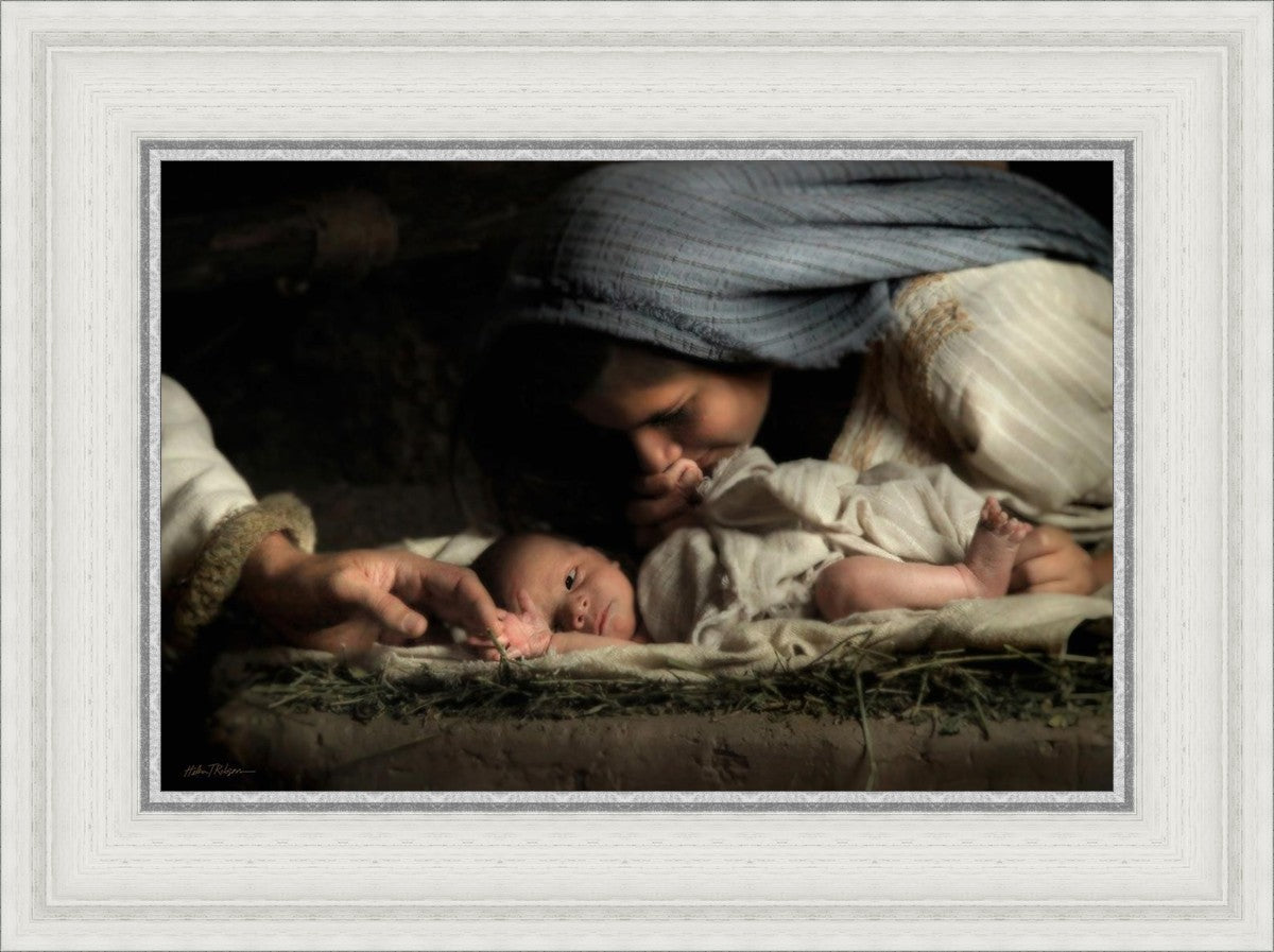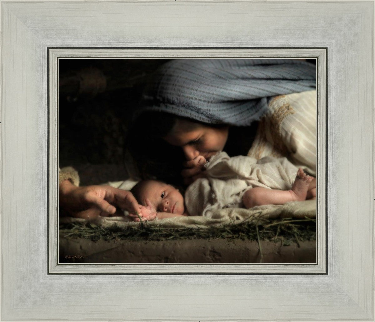 The sense of purpose in the eyes of the newborn Christ as he reaches out to Joseph's fingers is amazing.
