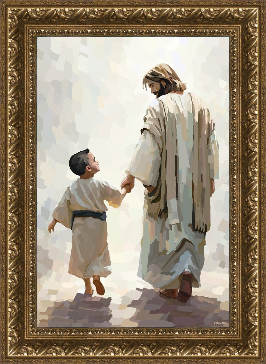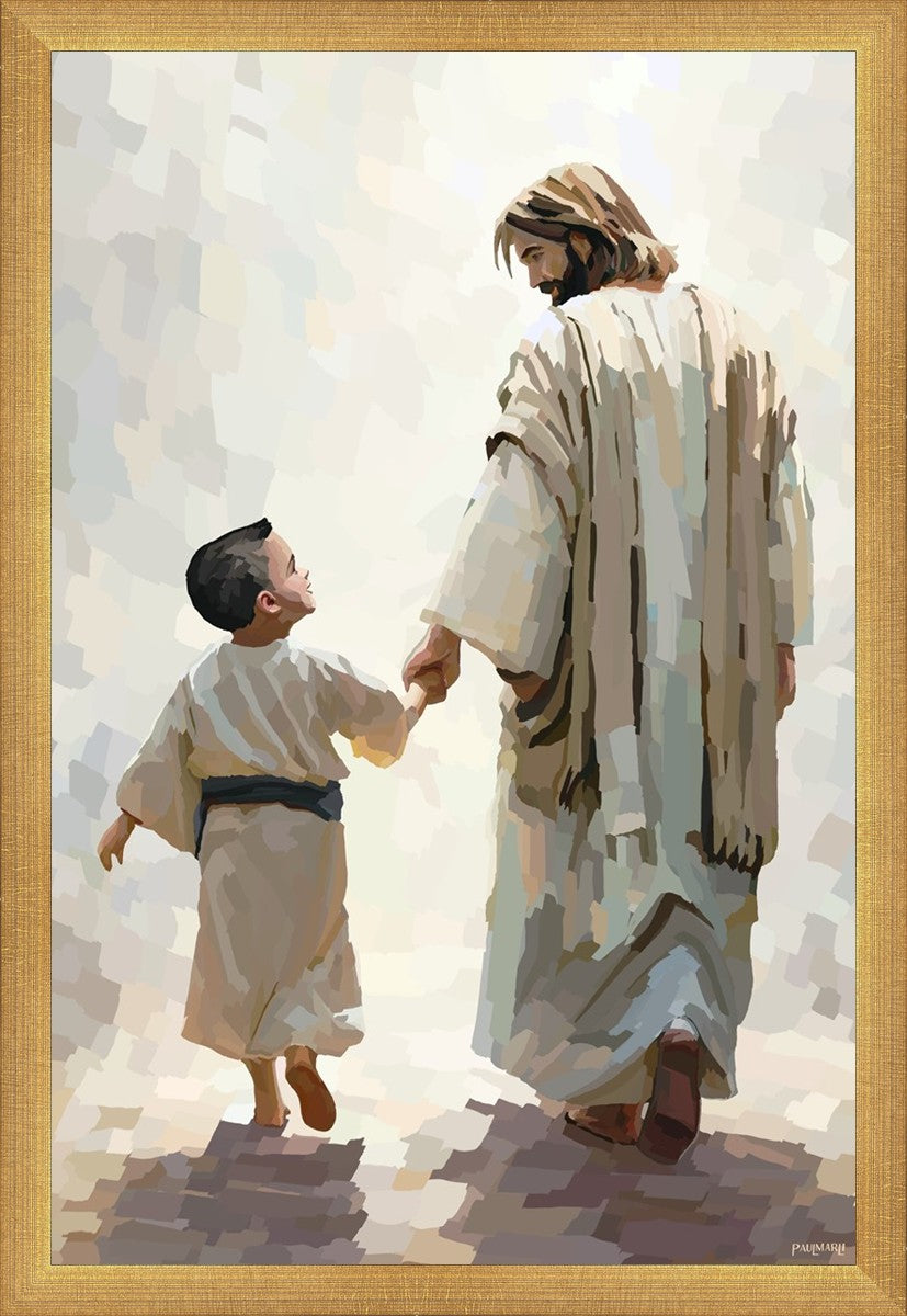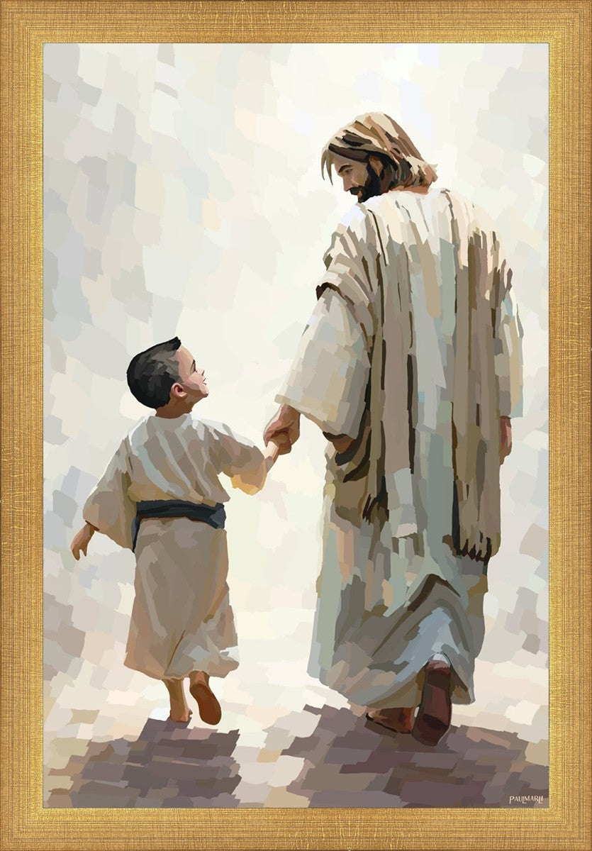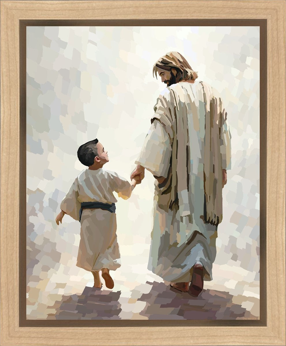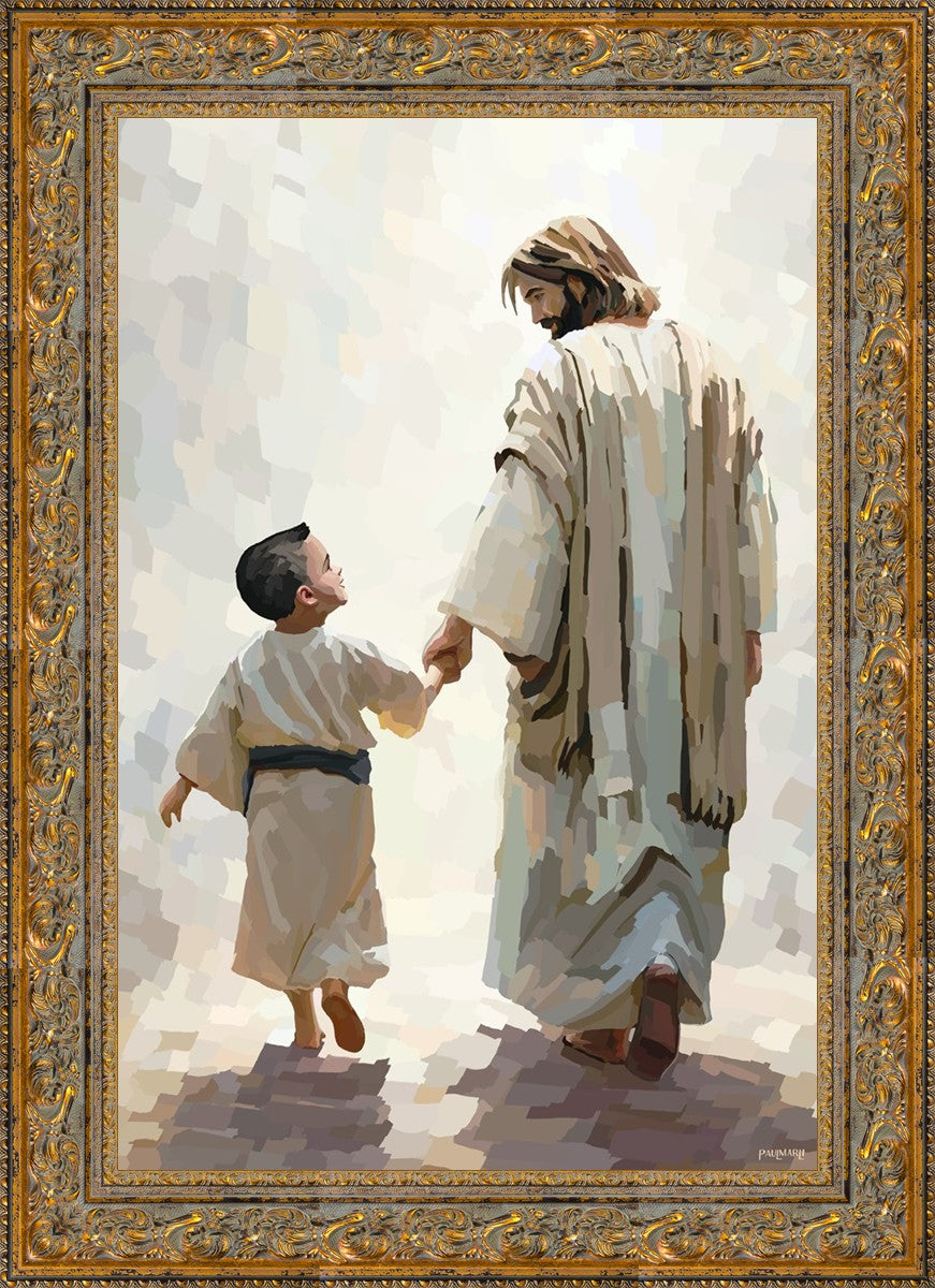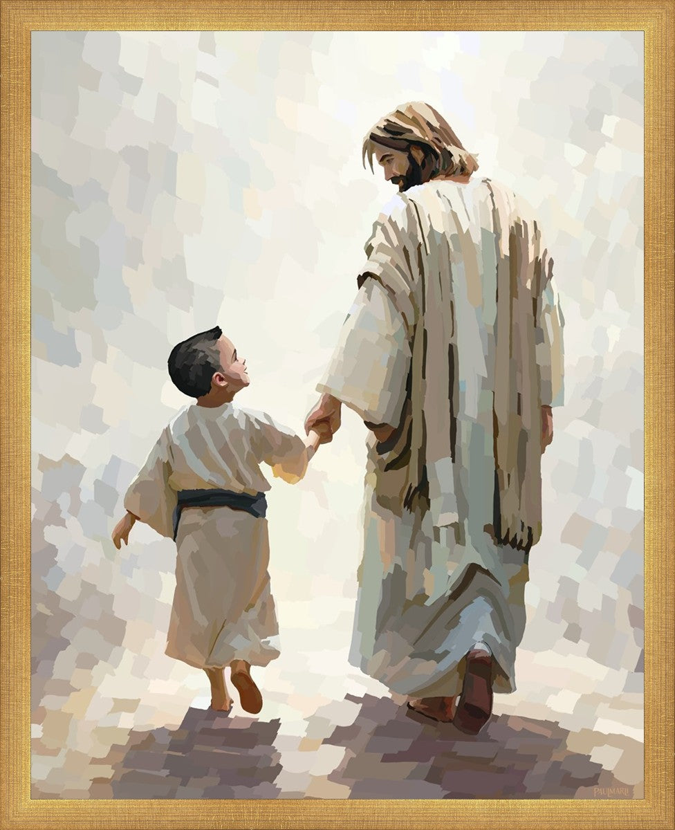This painting was inspired by a family whose young boy recently had a tragic passing. I had an idea of an image of what a painting can look like with Christ and a young boy, but then I had a dear friend of mine mention an experience they had - a dream of an image to paint - which ended up leading to this view of the image with Christ and the boy.