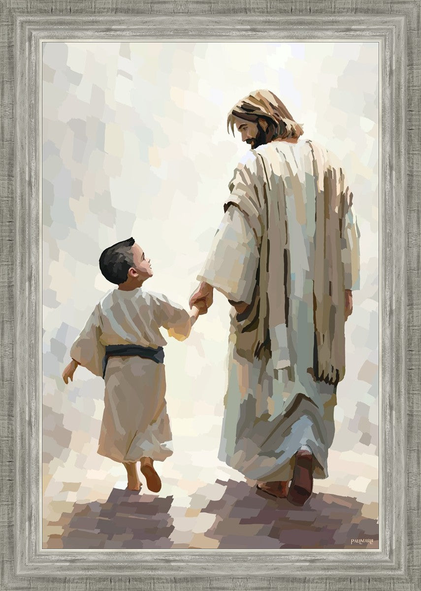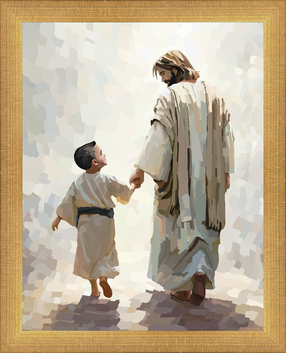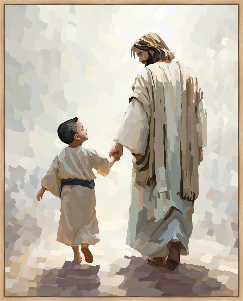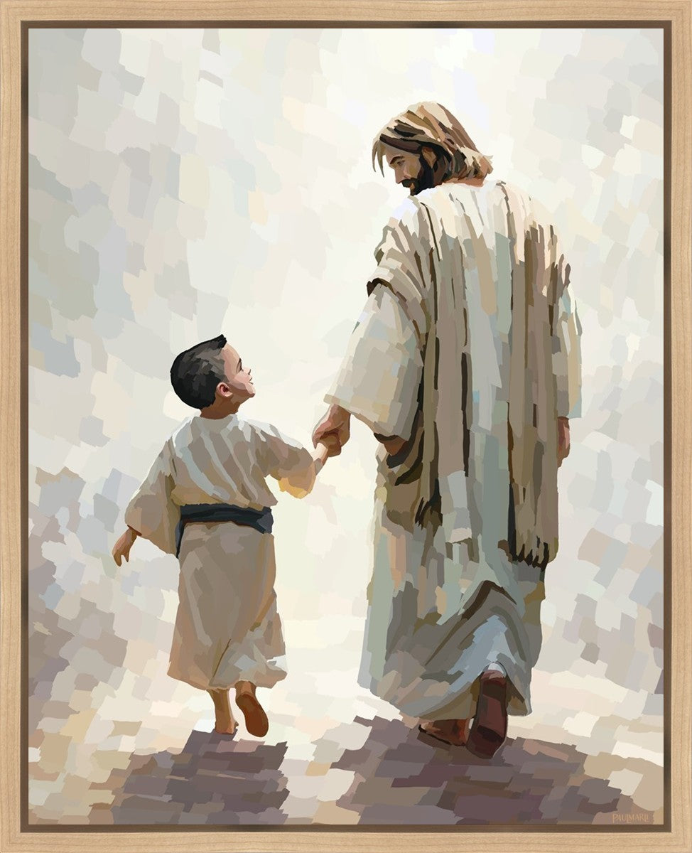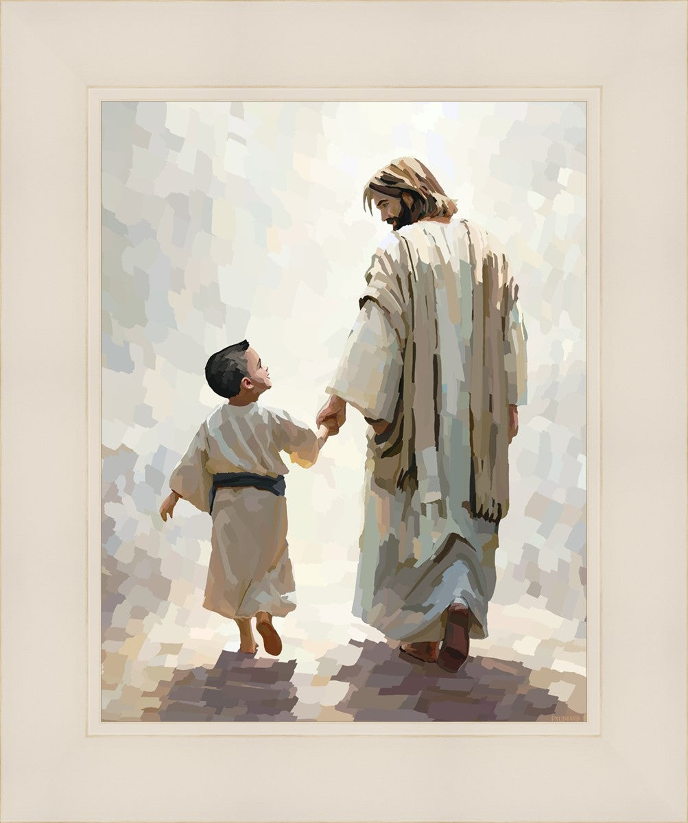This painting was inspired by a family whose young boy recently had a tragic passing. I had an idea of an image of what a painting can look like with Christ and a young boy, but then I had a dear friend of mine mention an experience they had - a dream of an image to paint - which ended up leading to this view of the image with Christ and the boy.