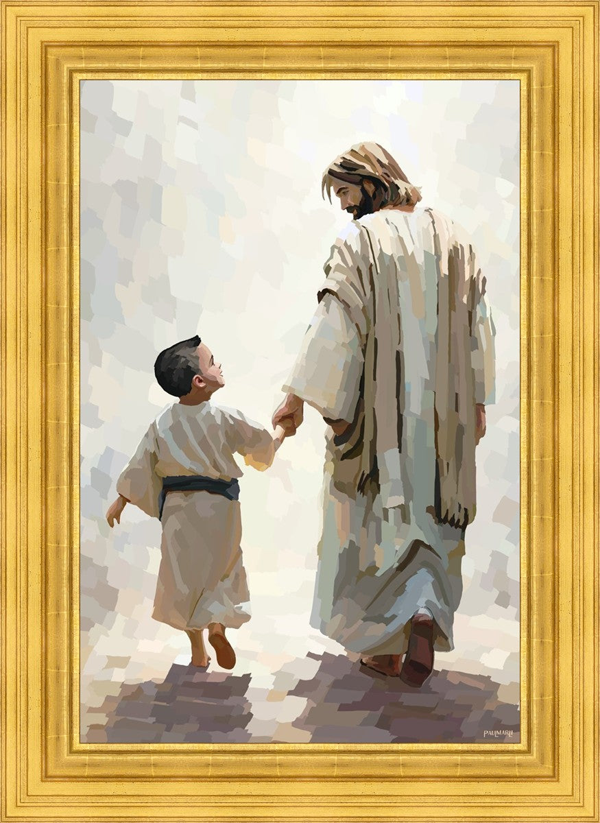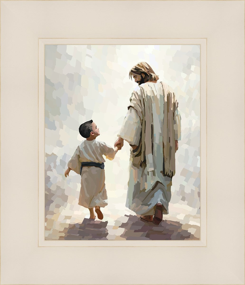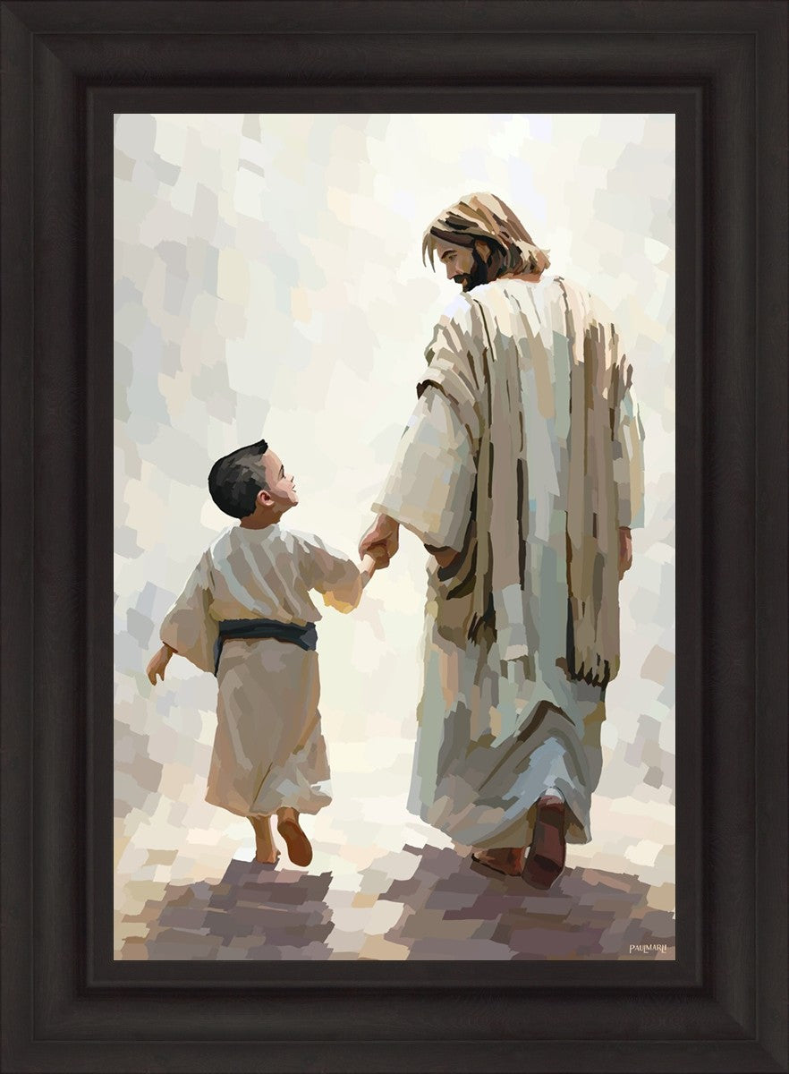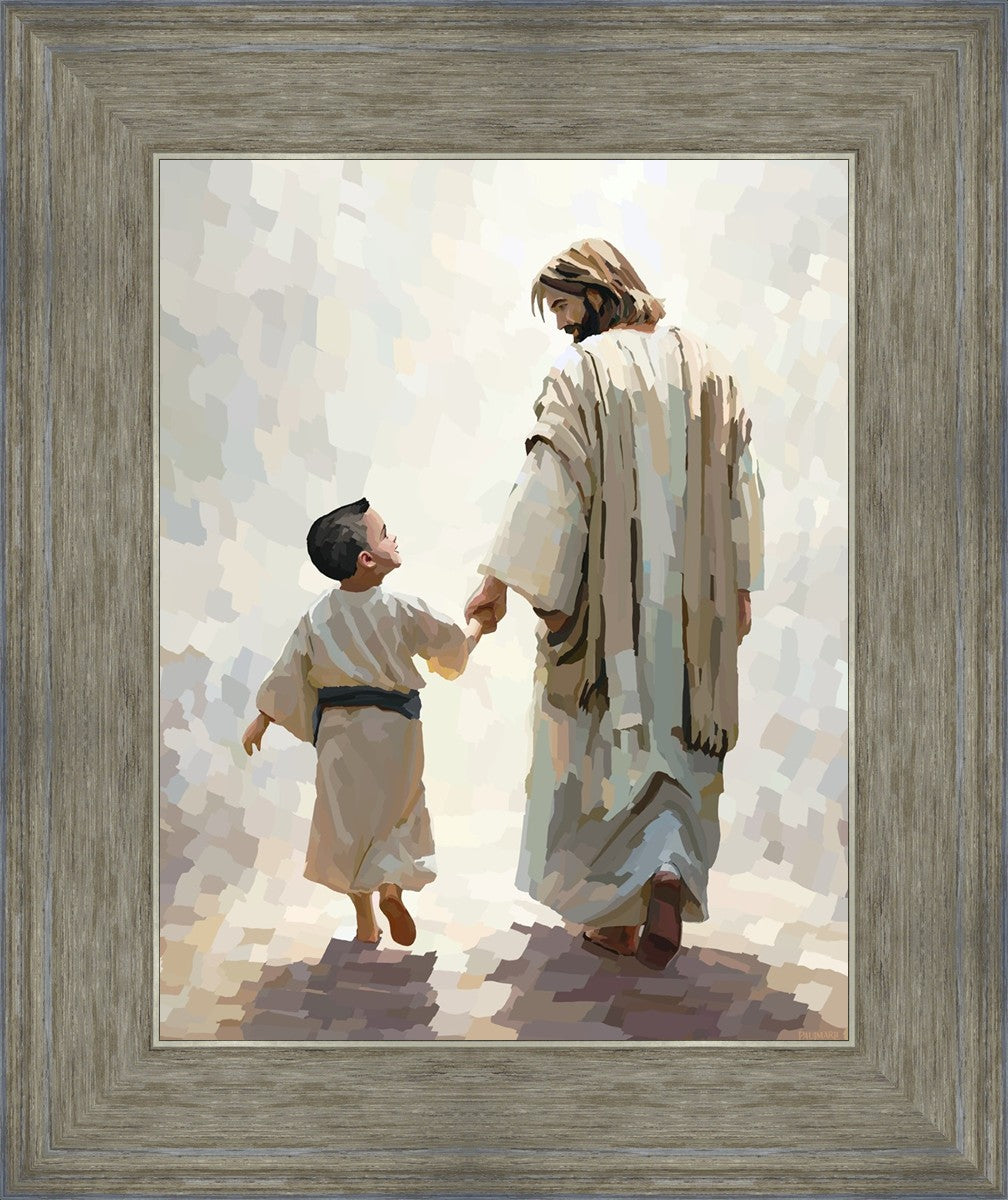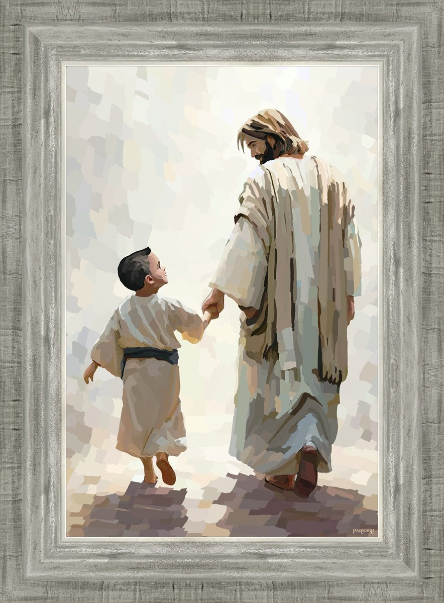 This painting was inspired by a family whose young boy recently had a tragic passing. I had an idea of an image of what a painting can look like with Christ and a young boy, but then I had a dear friend of mine mention an experience they had - a dream of an image to paint - which ended up leading to this view of the image with Christ and the boy.