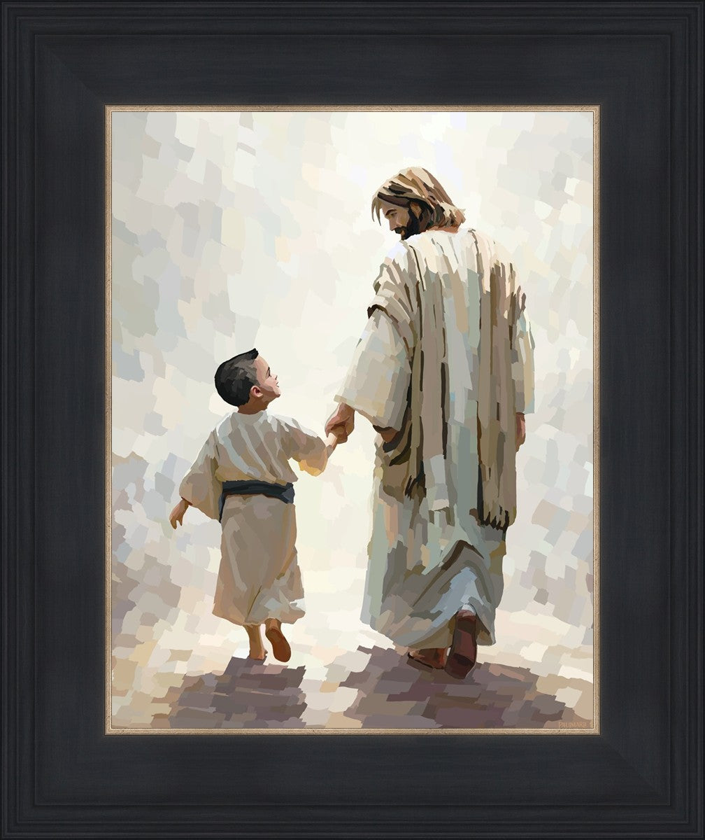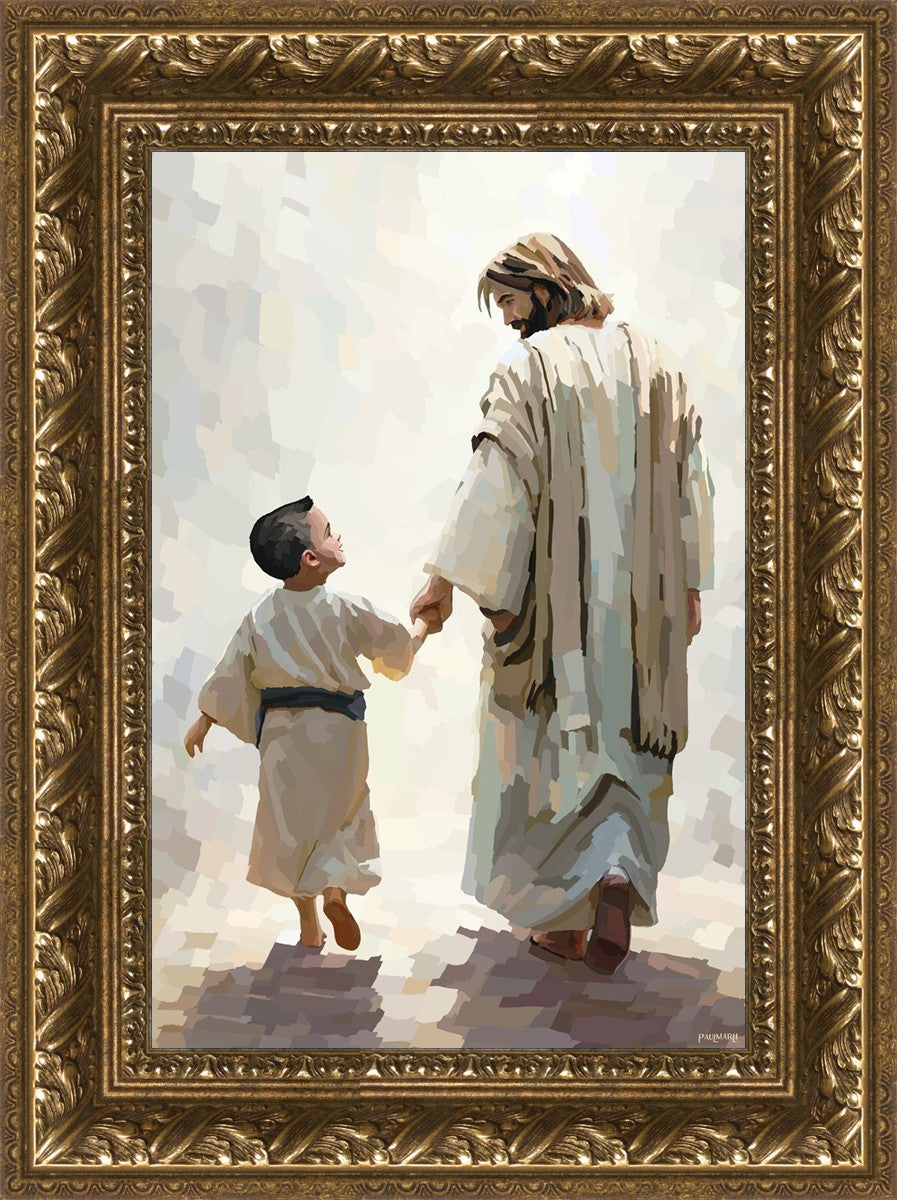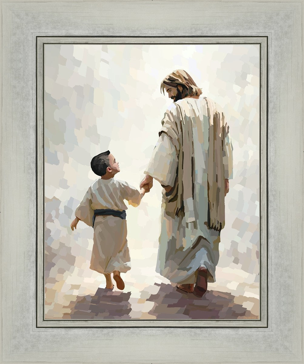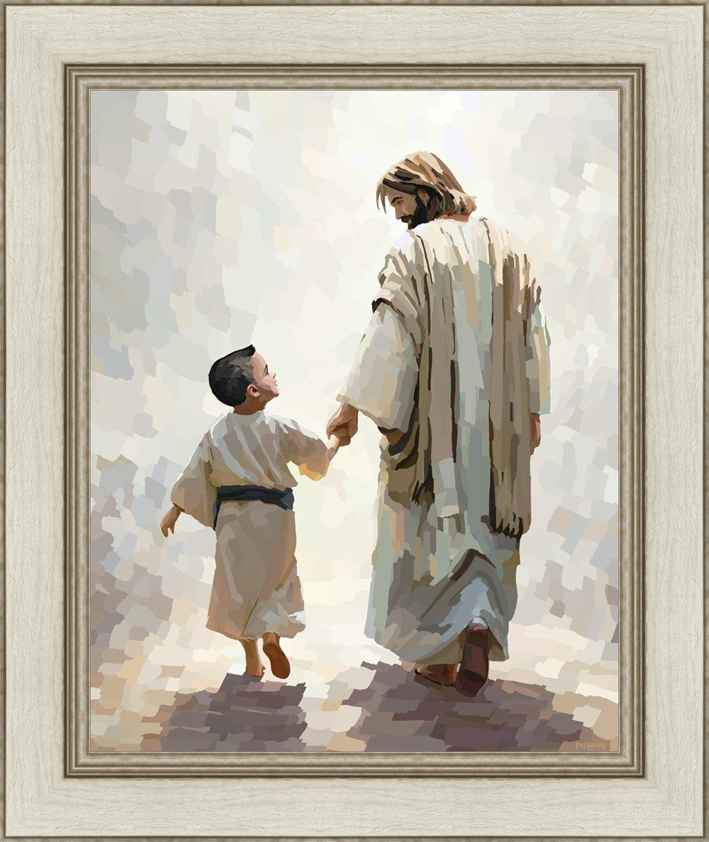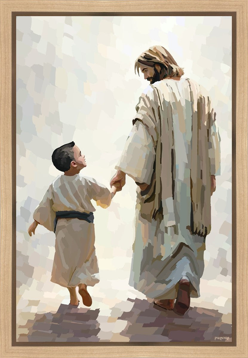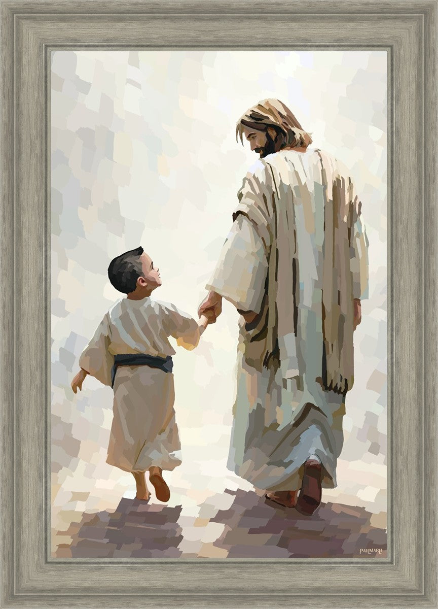 This painting was inspired by a family whose young boy recently had a tragic passing. I had an idea of an image of what a painting can look like with Christ and a young boy, but then I had a dear friend of mine mention an experience they had - a dream of an image to paint - which ended up leading to this view of the image with Christ and the boy.