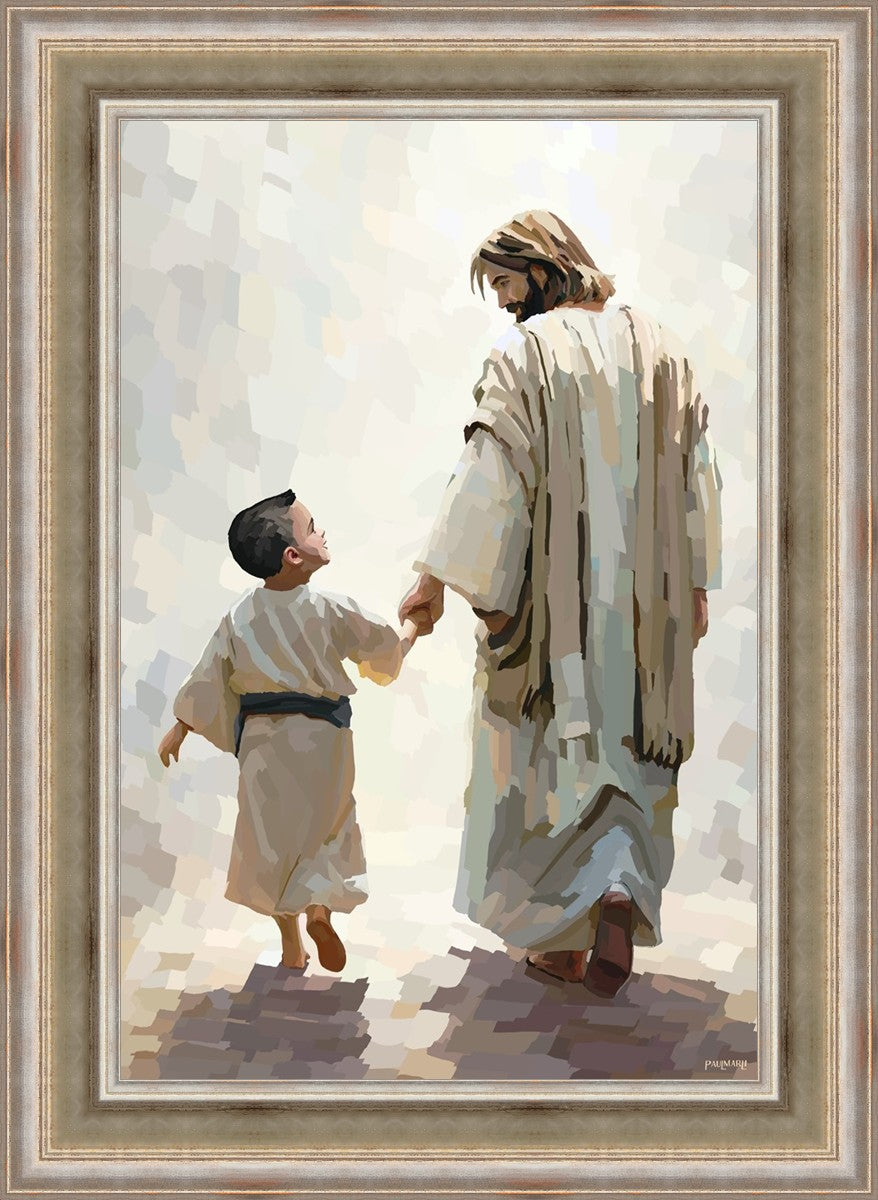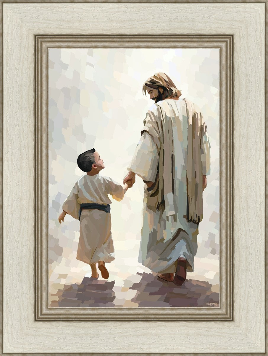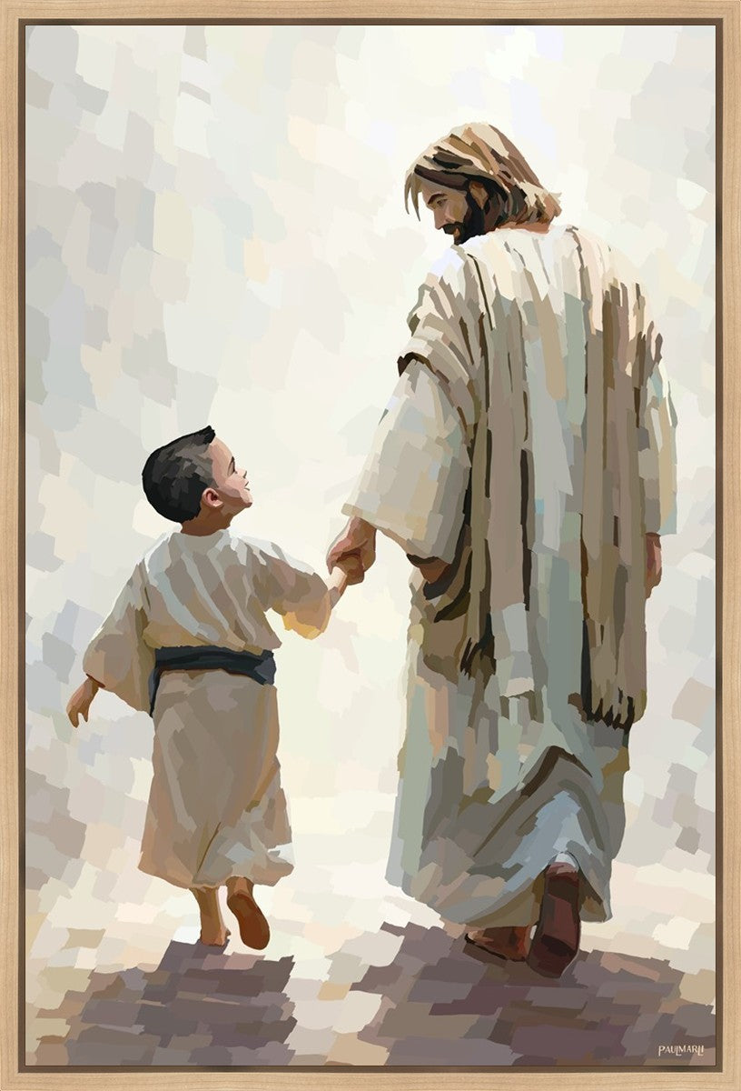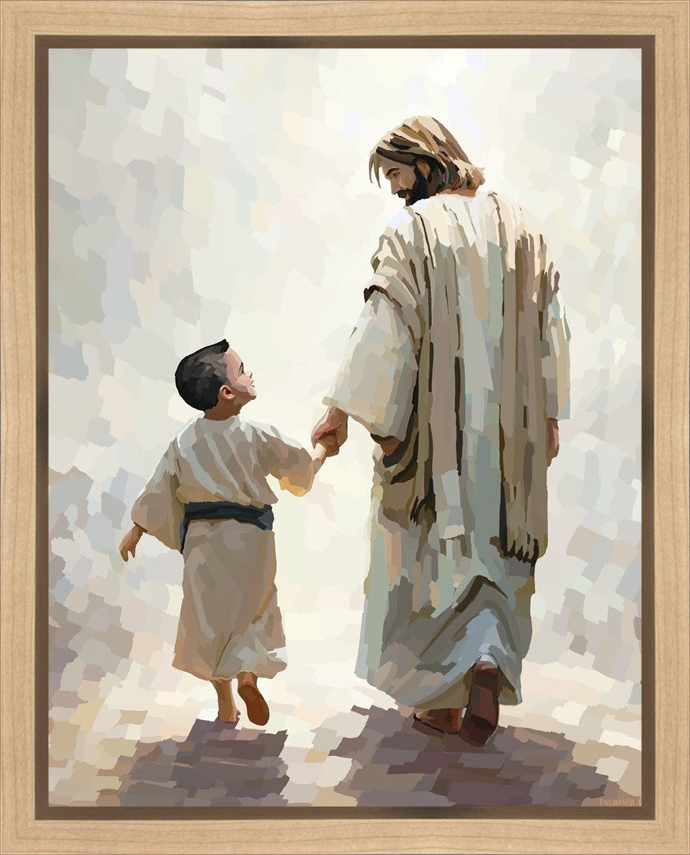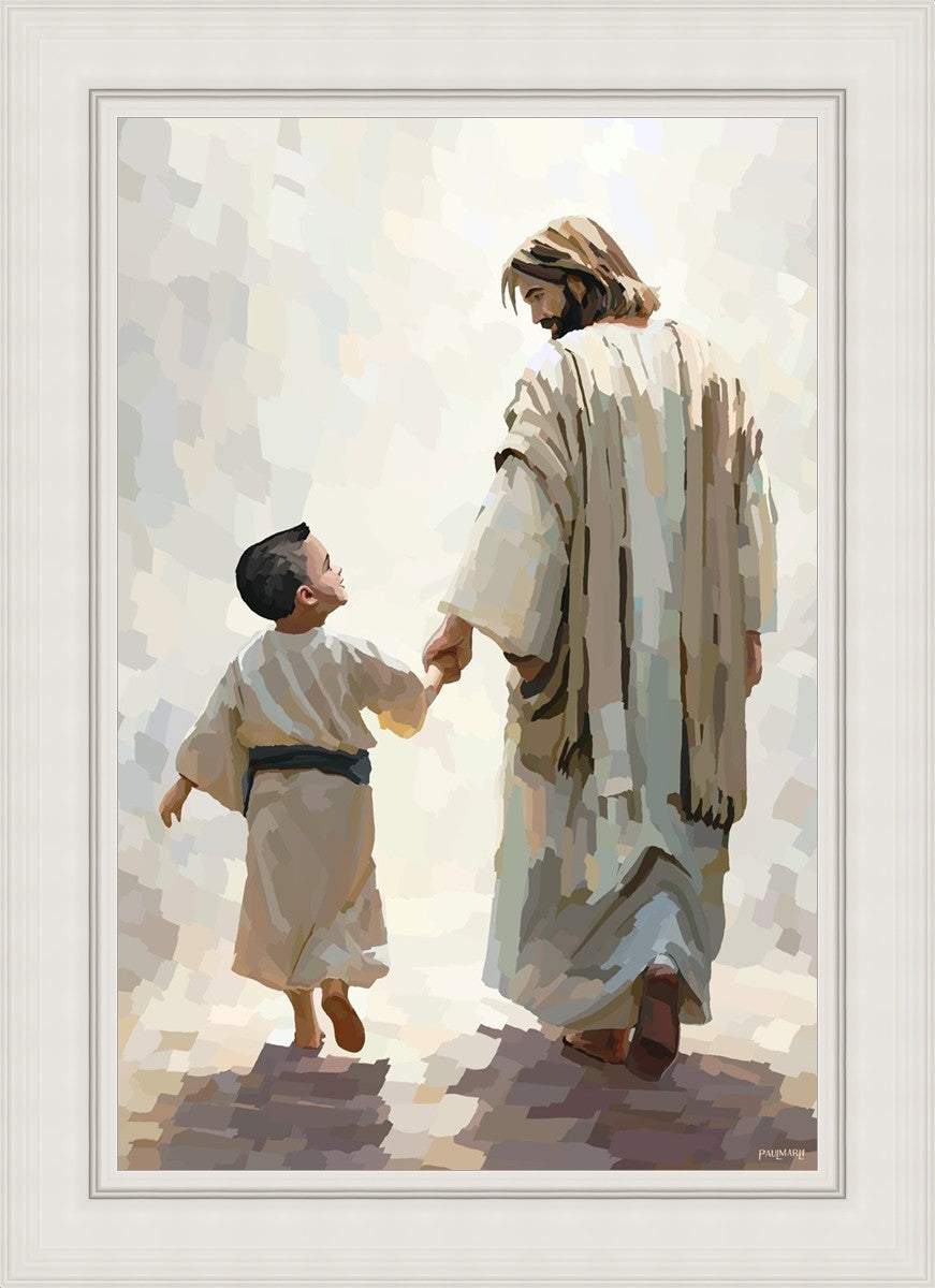 This painting was inspired by a family whose young boy recently had a tragic passing. I had an idea of an image of what a painting can look like with Christ and a young boy, but then I had a dear friend of mine mention an experience they had - a dream of an image to paint - which ended up leading to this view of the image with Christ and the boy.