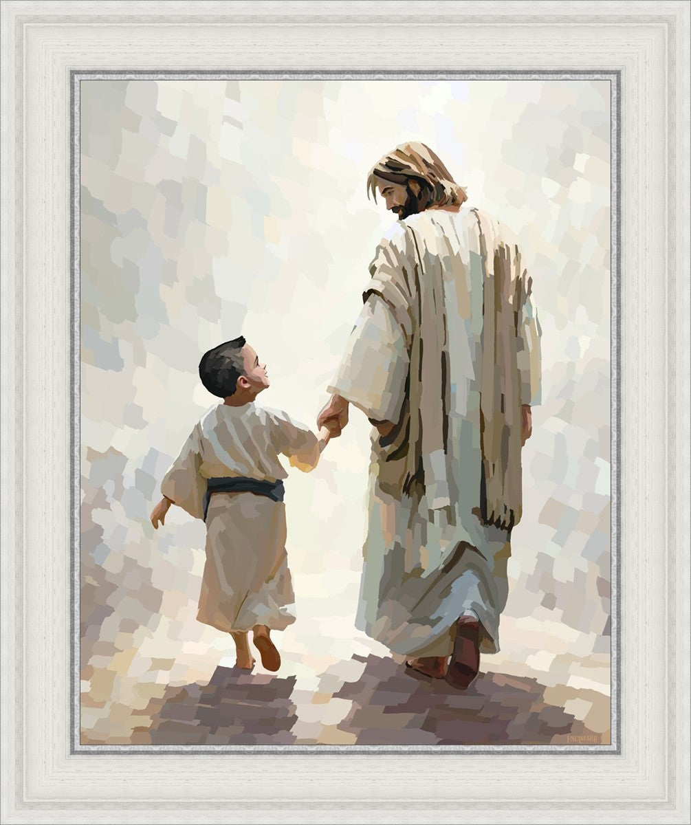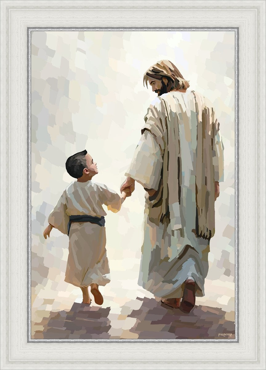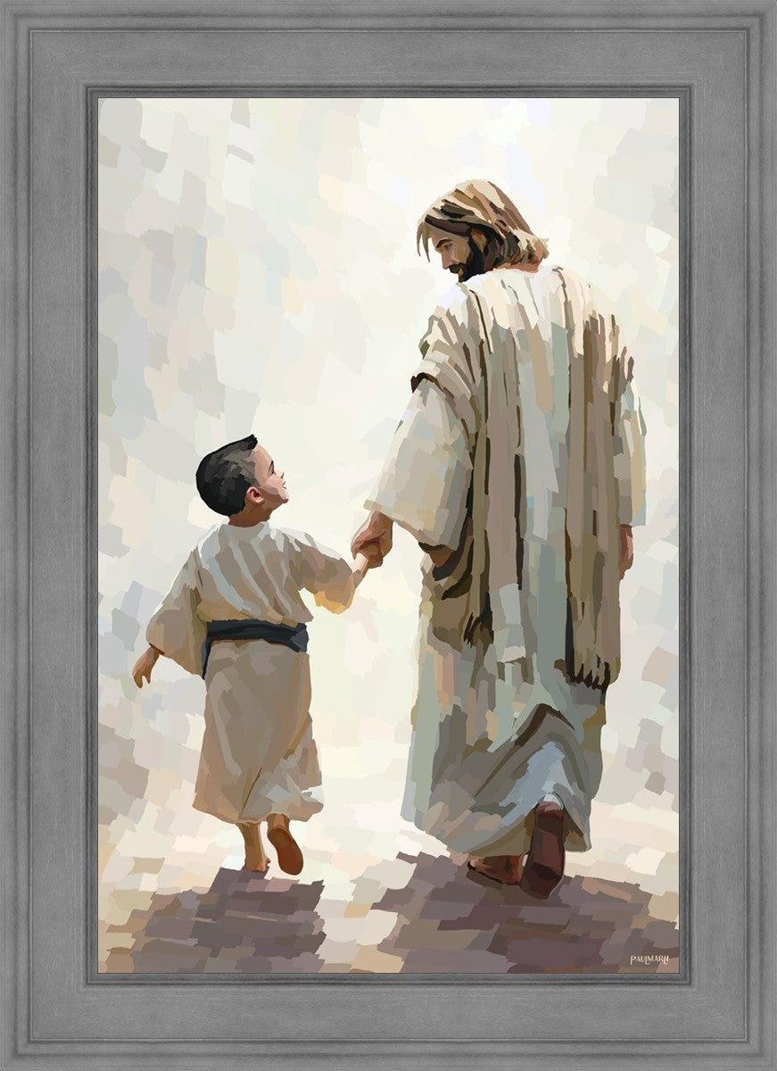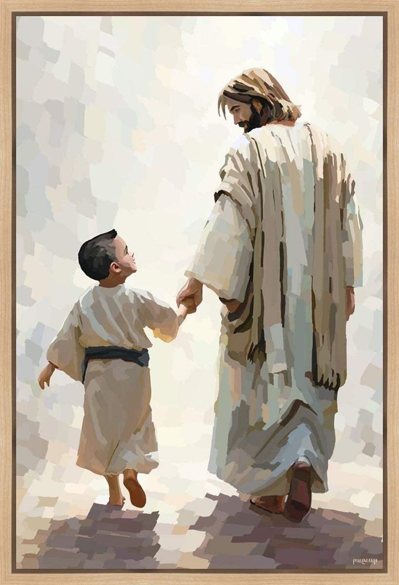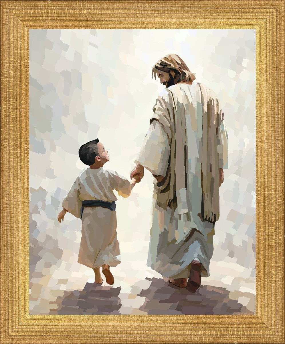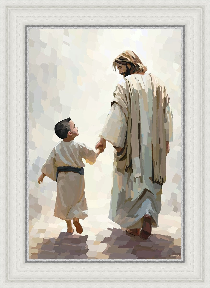 This painting was inspired by a family whose young boy recently had a tragic passing. I had an idea of an image of what a painting can look like with Christ and a young boy, but then I had a dear friend of mine mention an experience they had - a dream of an image to paint - which ended up leading to this view of the image with Christ and the boy.