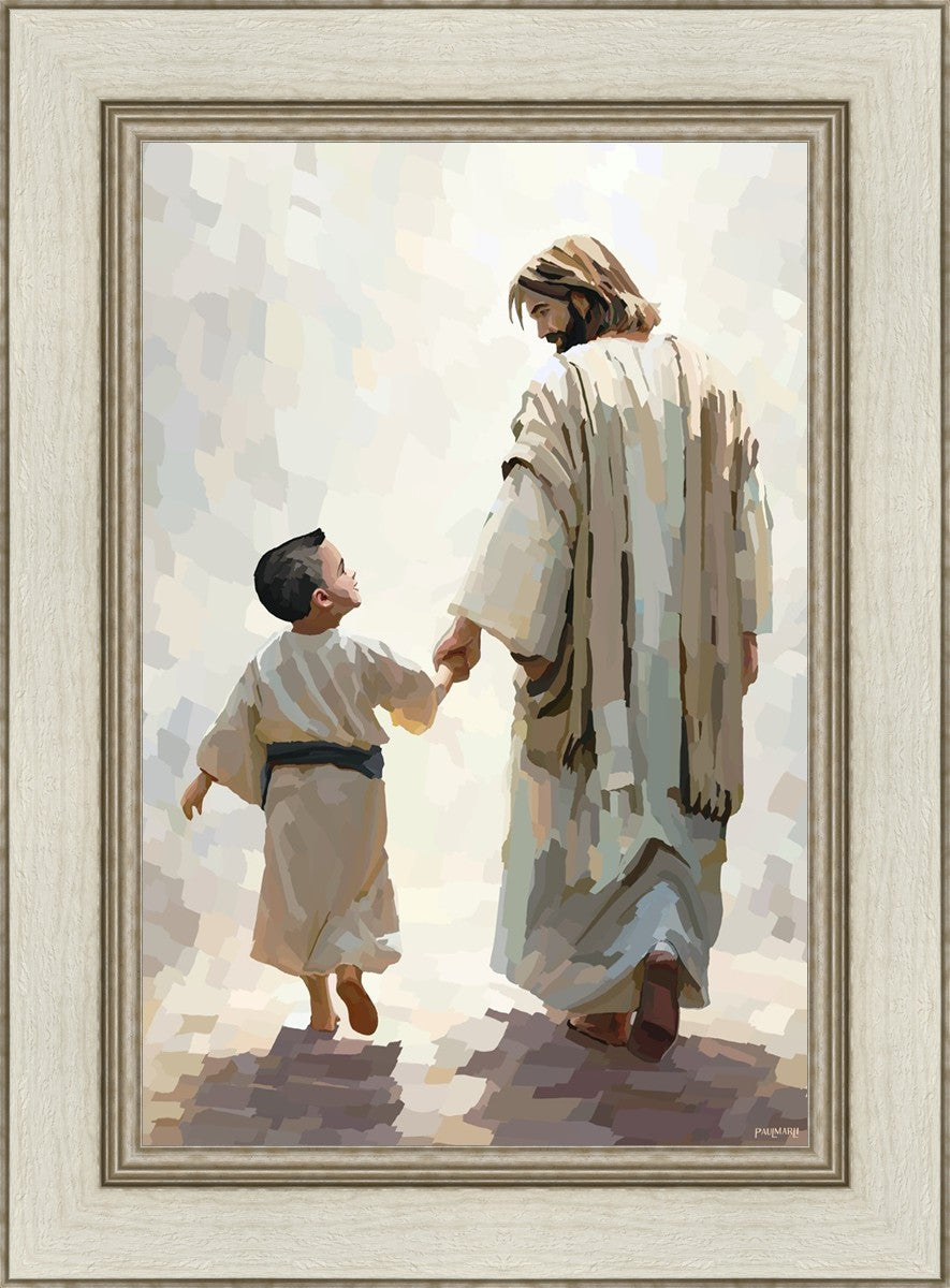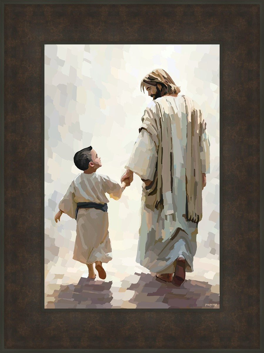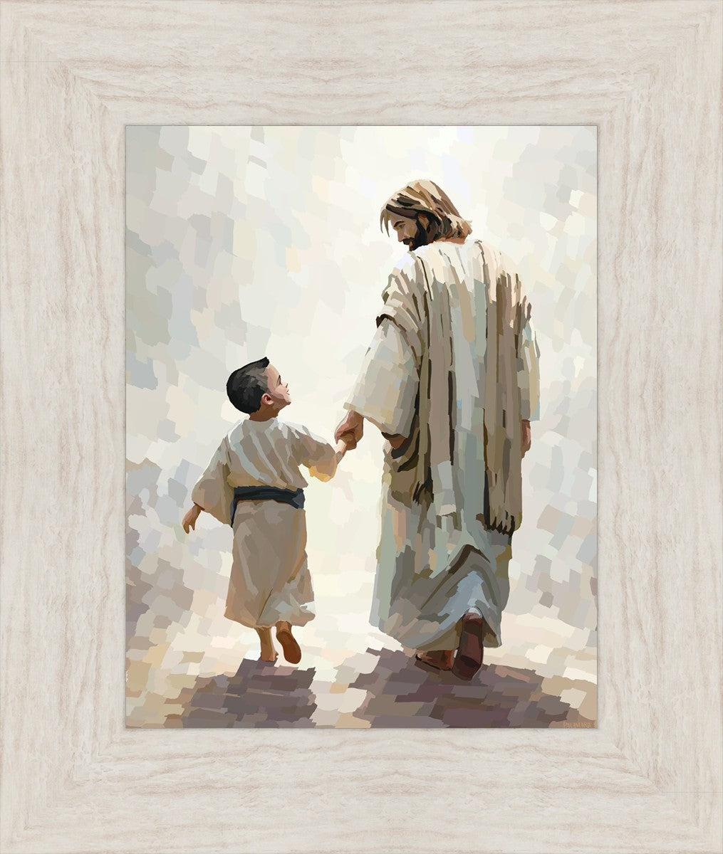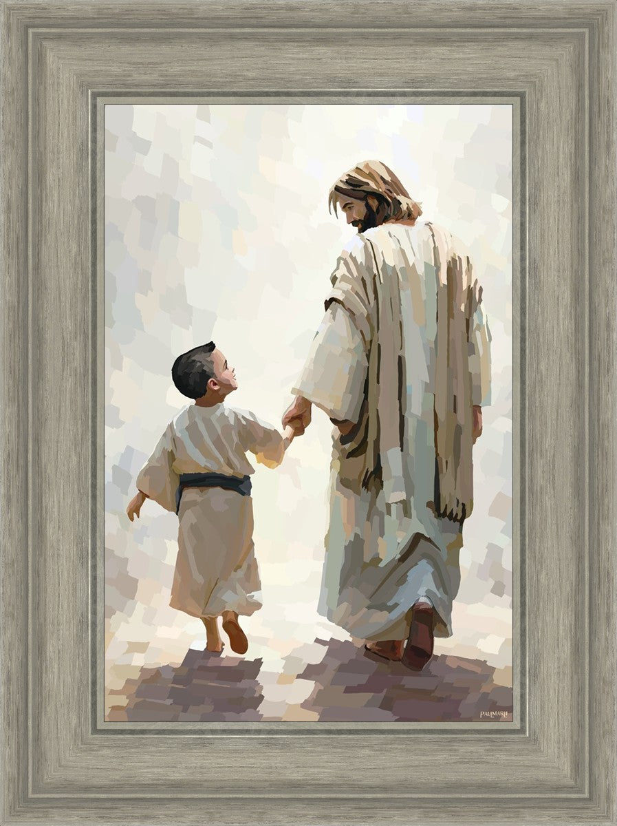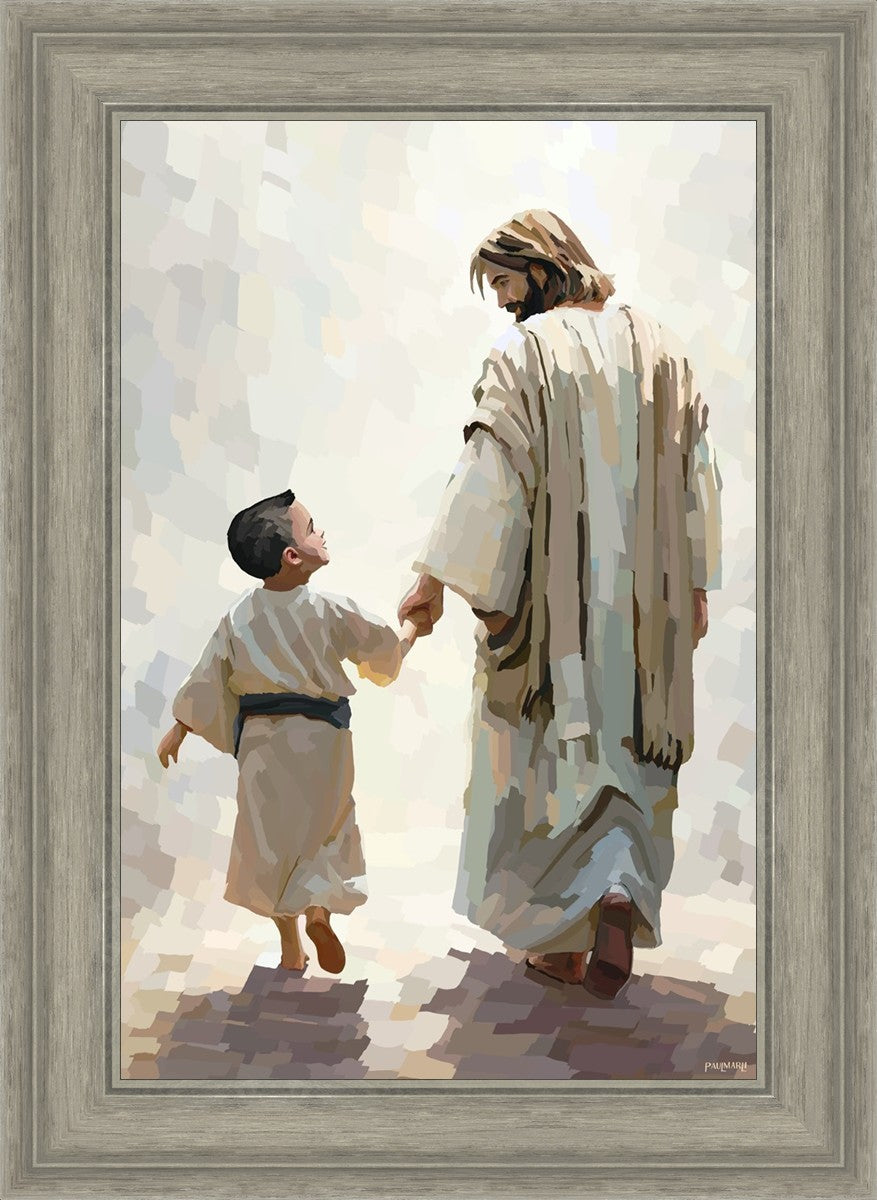 This painting was inspired by a family whose young boy recently had a tragic passing. I had an idea of an image of what a painting can look like with Christ and a young boy, but then I had a dear friend of mine mention an experience they had - a dream of an image to paint - which ended up leading to this view of the image with Christ and the boy.