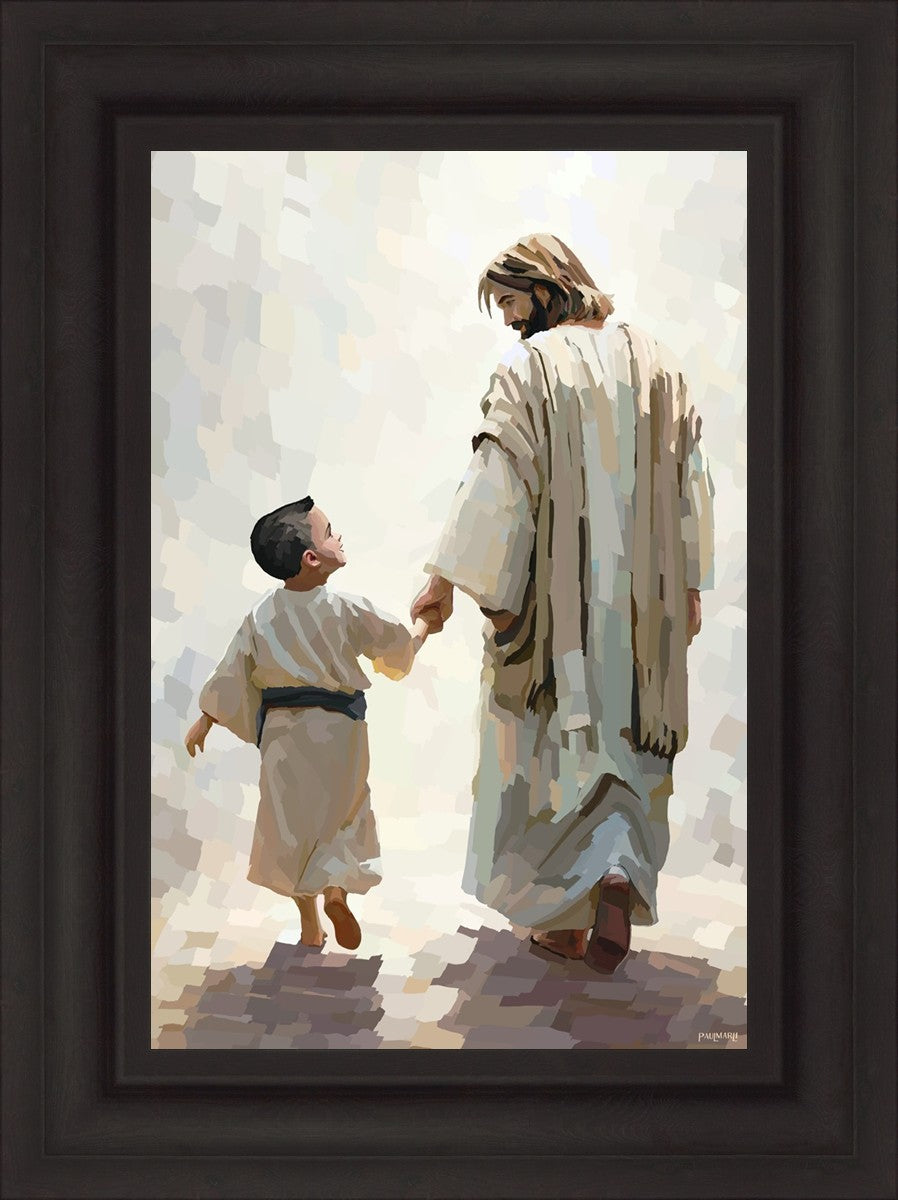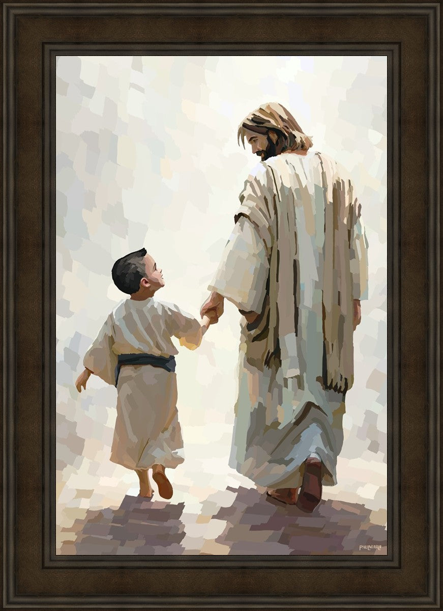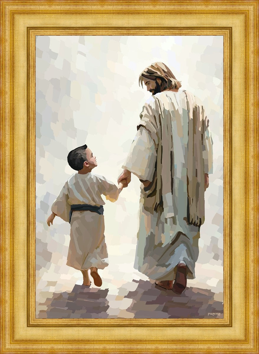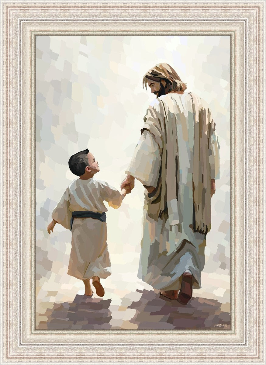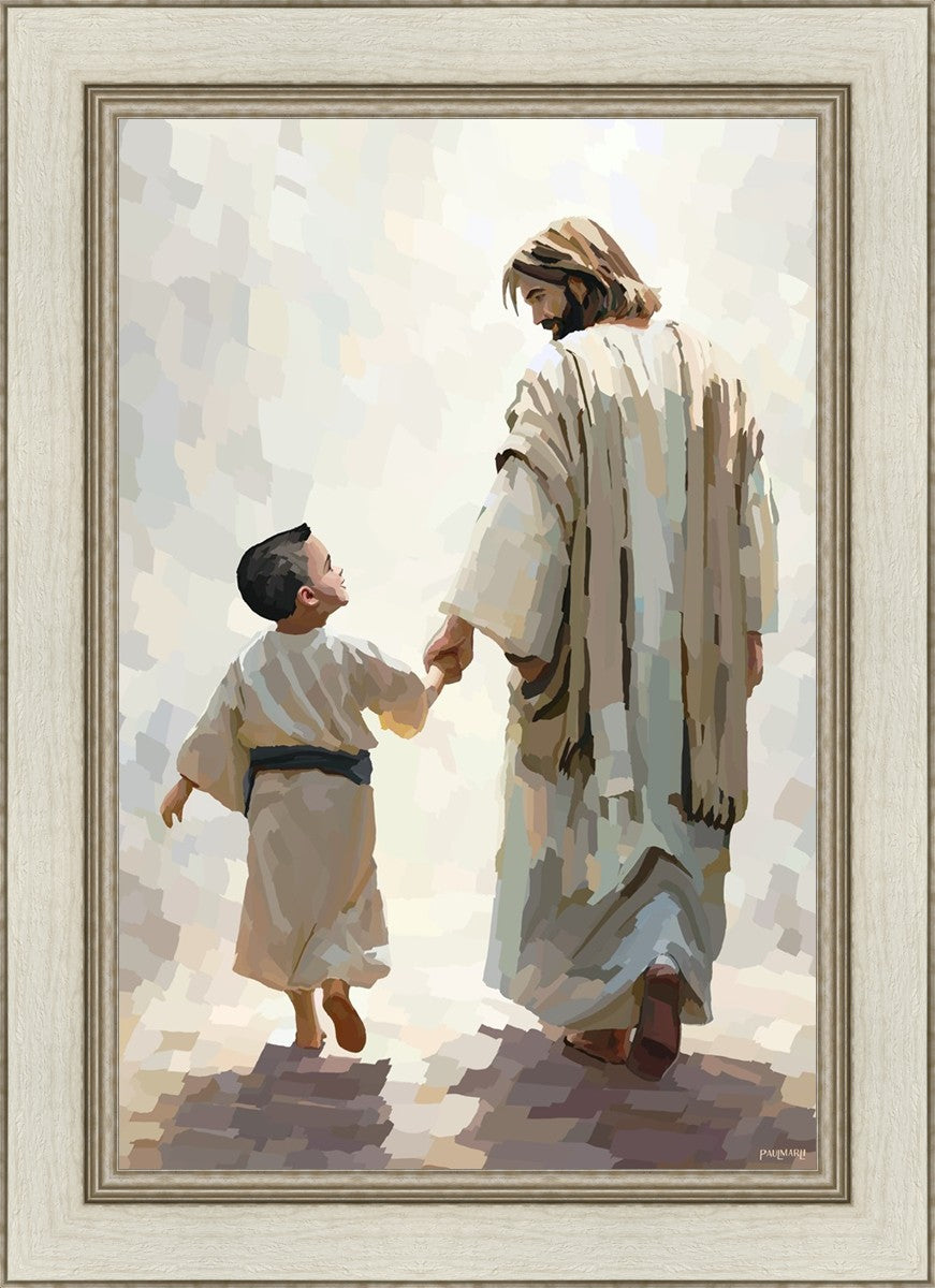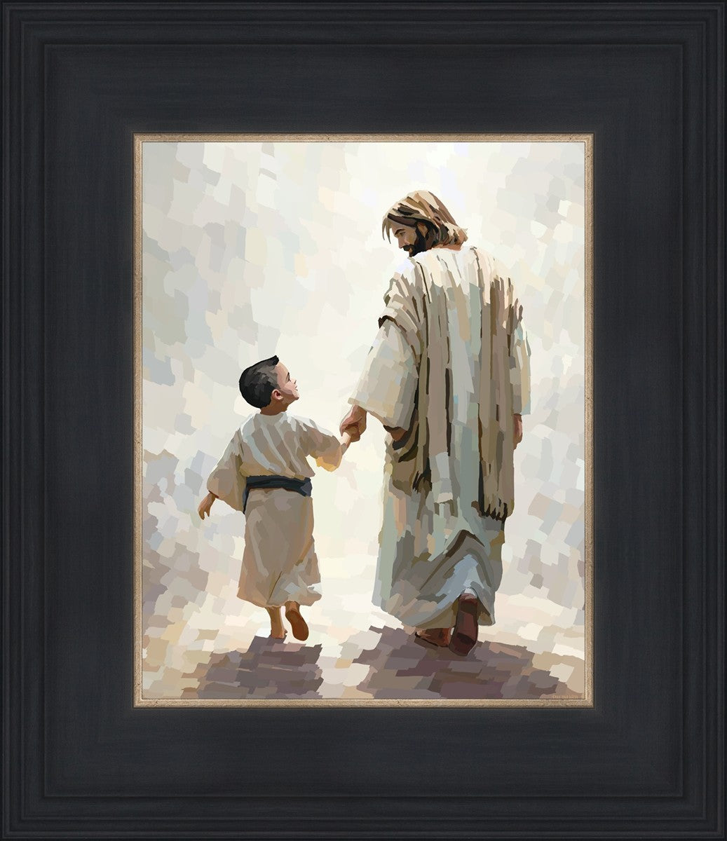 This painting was inspired by a family whose young boy recently had a tragic passing. I had an idea of an image of what a painting can look like with Christ and a young boy, but then I had a dear friend of mine mention an experience they had - a dream of an image to paint - which ended up leading to this view of the image with Christ and the boy.