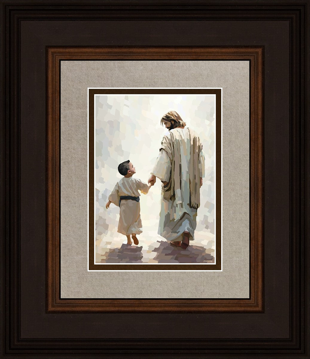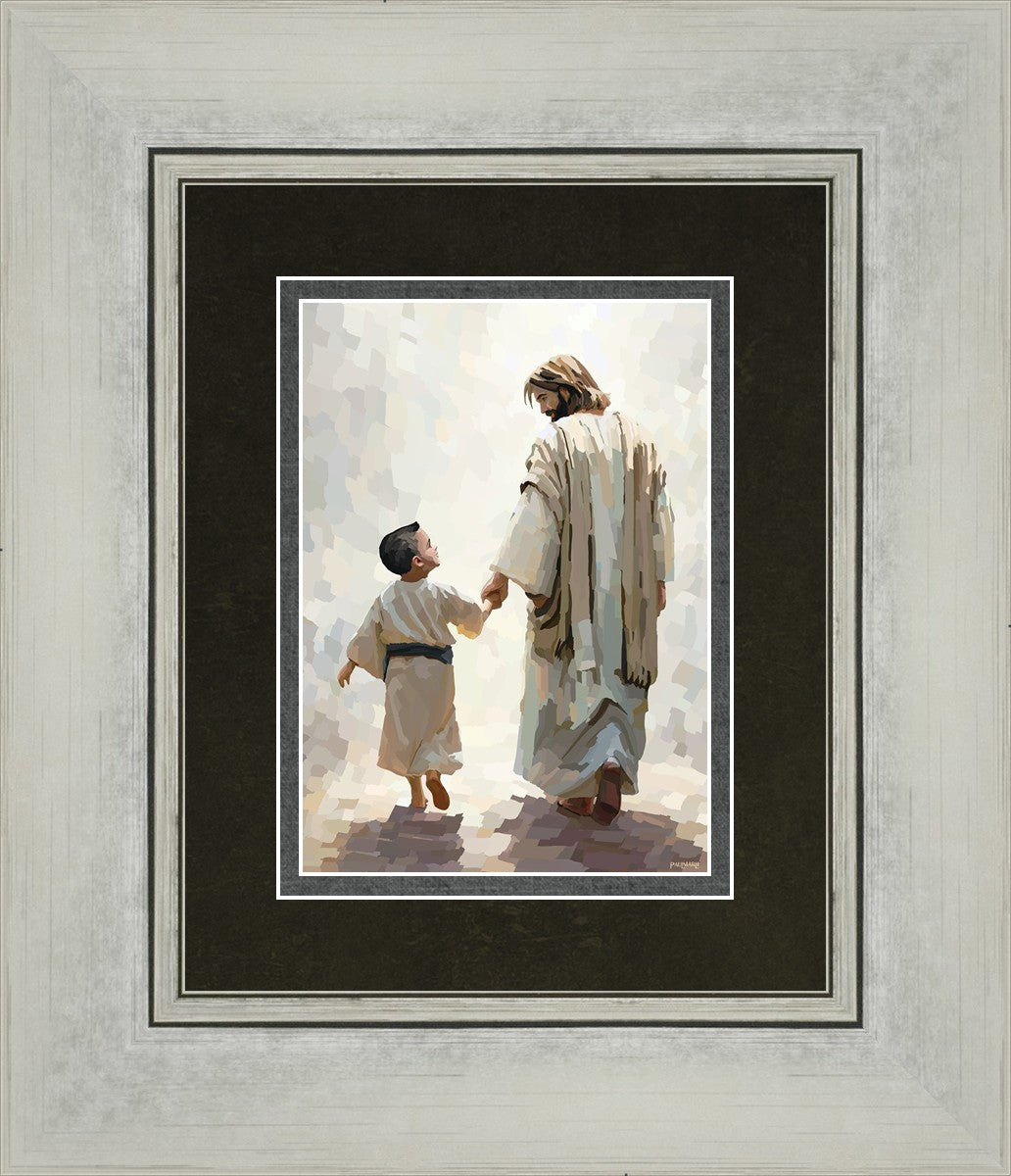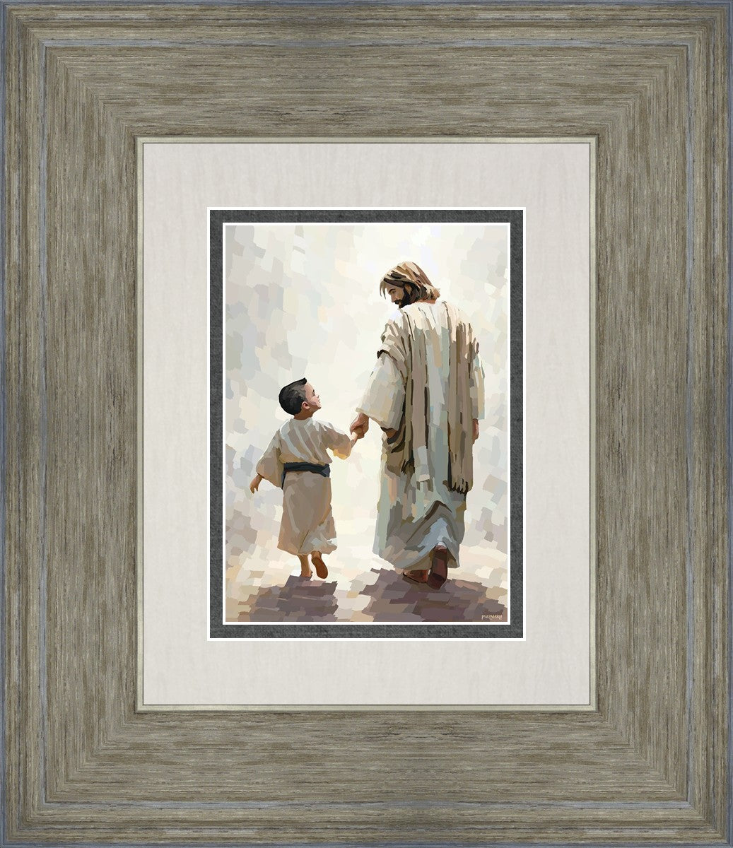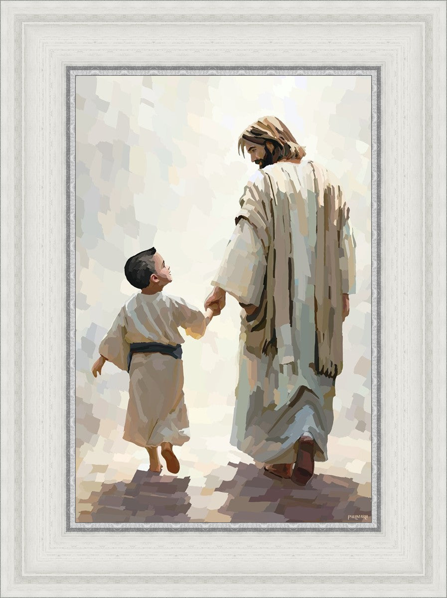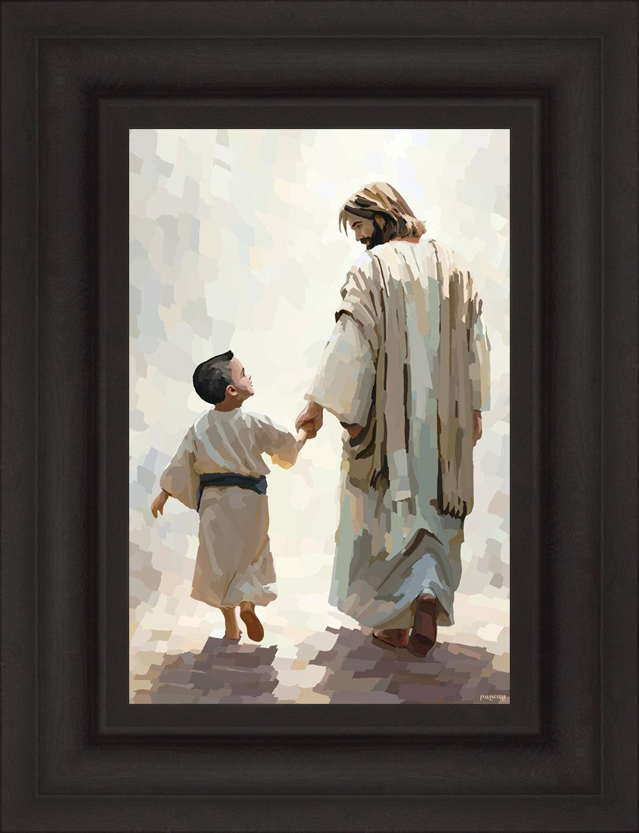 This painting was inspired by a family whose young boy recently had a tragic passing. I had an idea of an image of what a painting can look like with Christ and a young boy, but then I had a dear friend of mine mention an experience they had - a dream of an image to paint - which ended up leading to this view of the image with Christ and the boy.