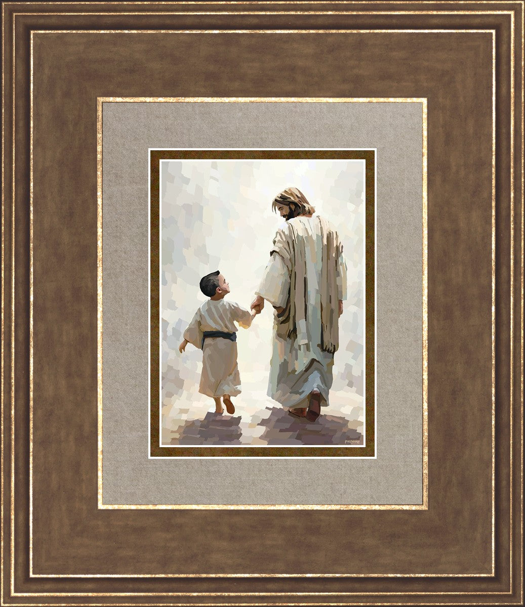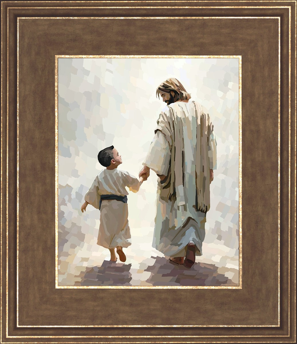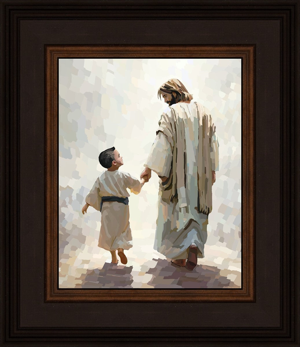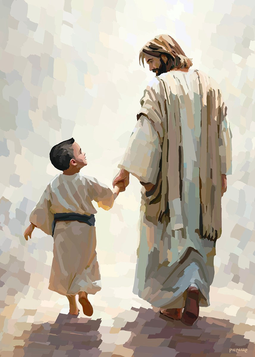 This is a picture of Christ walking with the boy escorting him personally home.