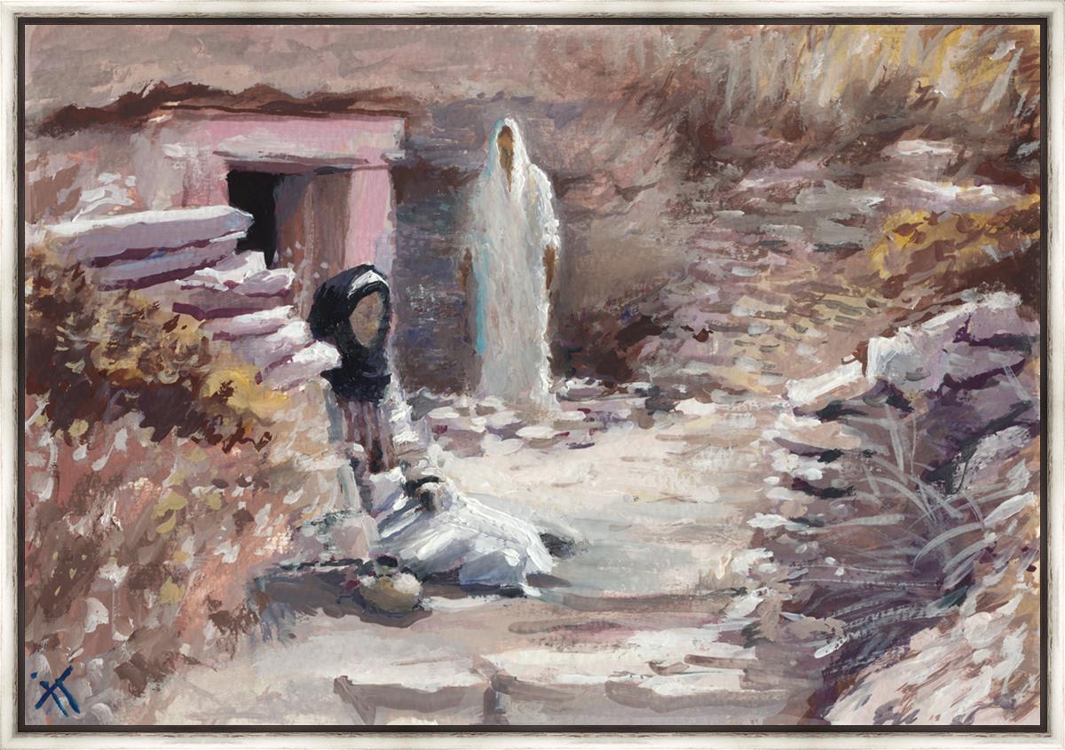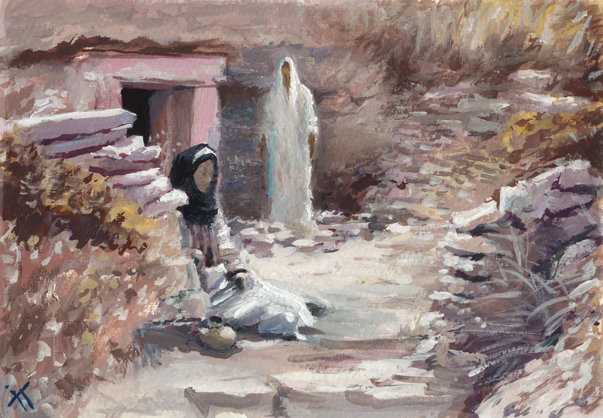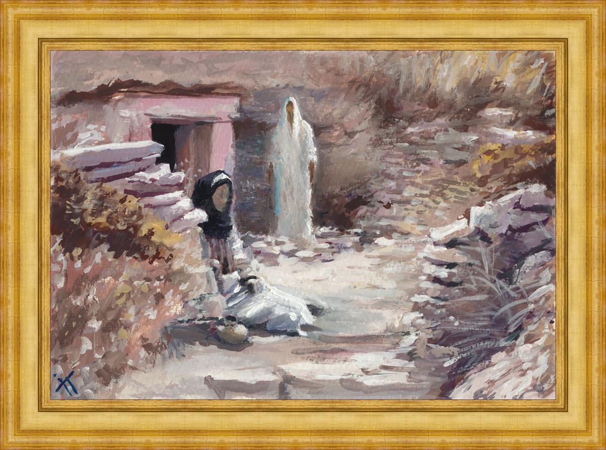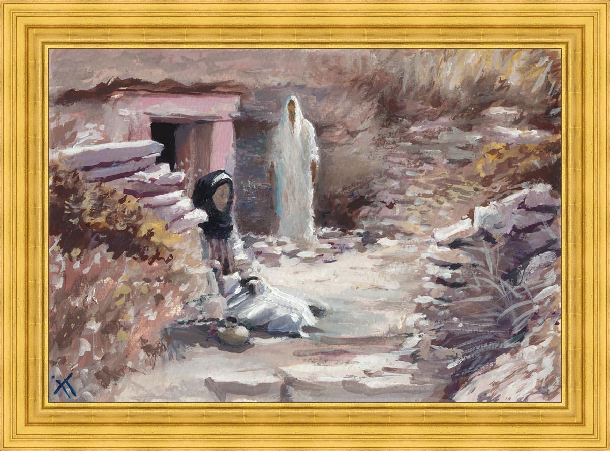 This painting was a consolation gift to a sister in our Stake whose husband died. Sooner or later each of us will experience death of loved ones and will ask oneself the question "Will I still see you again?" The image of the resurrected Christ appearing to Mary is an attempt to give hope and comfort in the midst of grief and loss. This painting depicts the touching moment between grief and hopelessness and everlasting joy. It serves as a reminder that even in the darkest moments of life, there is hope and light, and that our loved ones who have passed away are not truly gone, but live on in the heavenly spheres.