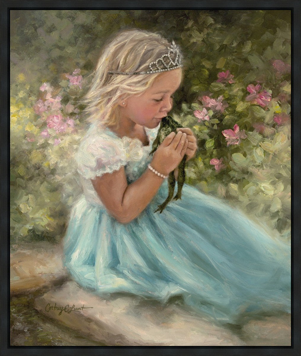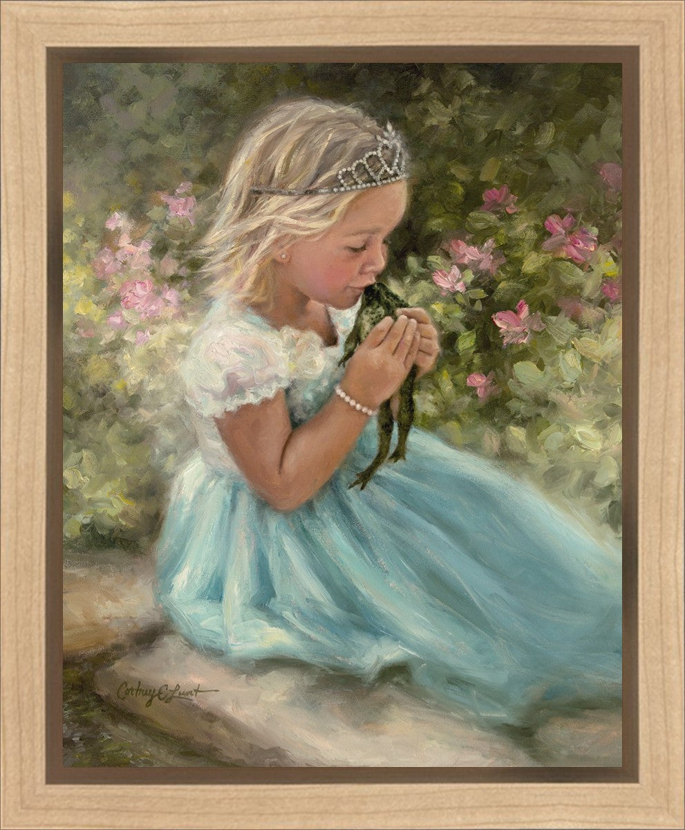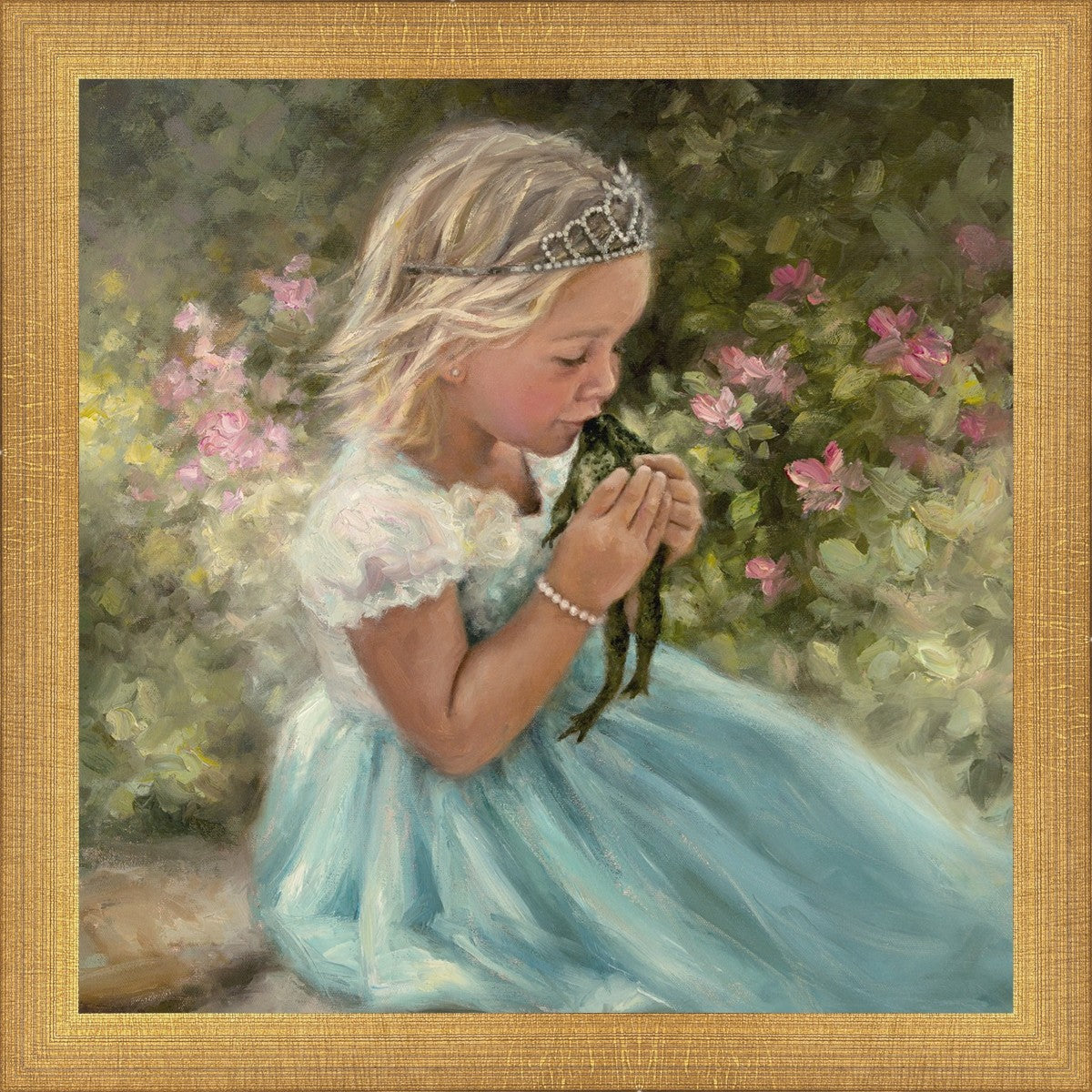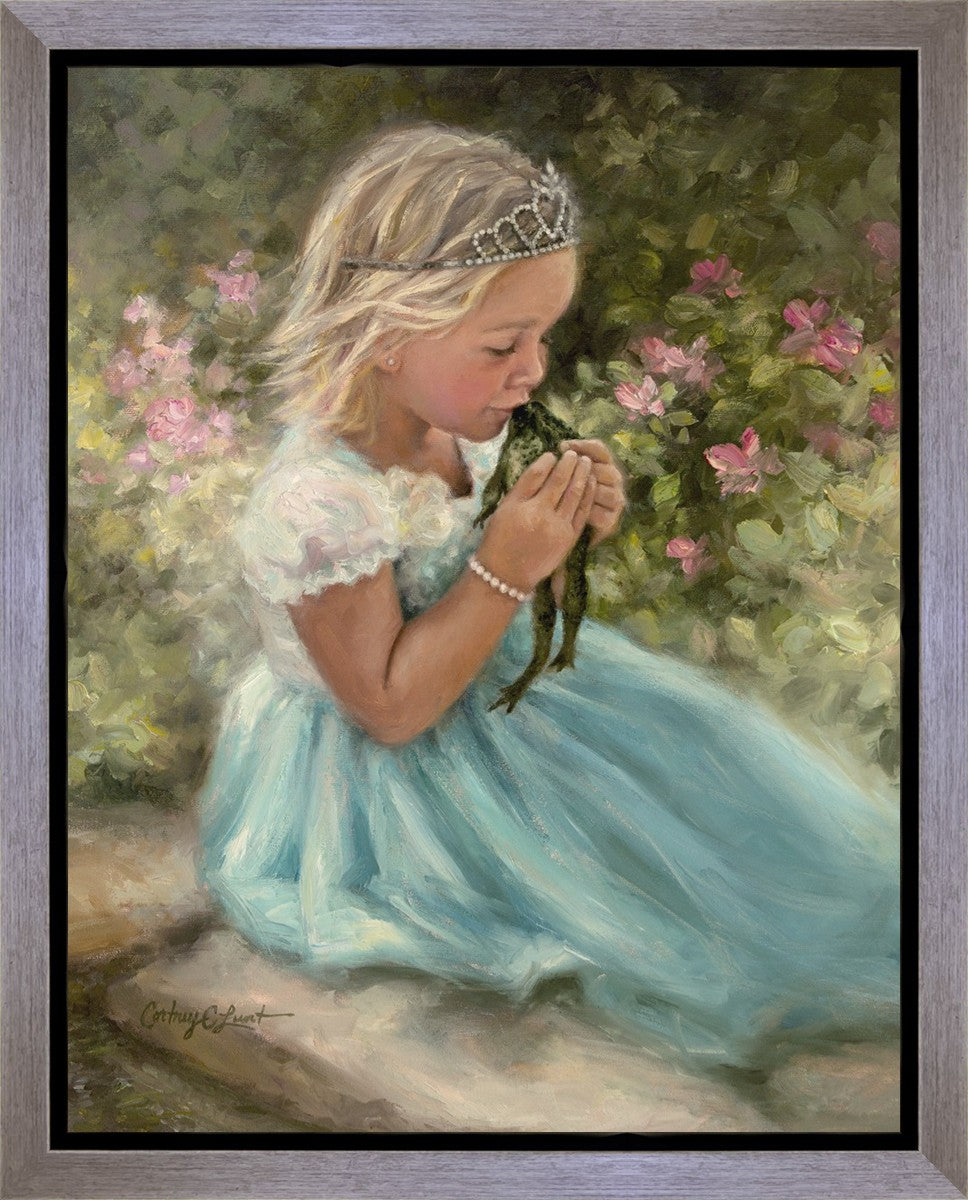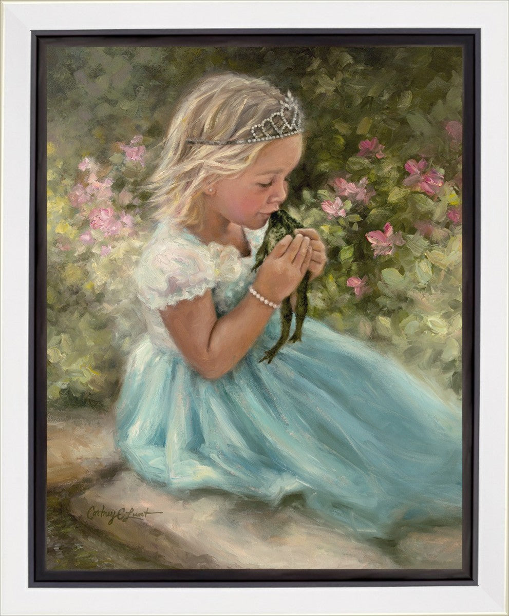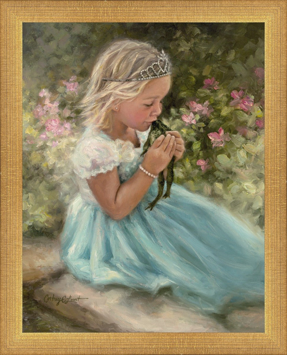 Little girls believe they are princesses. This girl, in particular, had no fear of kissing this toad! She was fully confident that her kiss could make something happen, and she knew she was special in her little gown. For some reason, when girls get a bit older, they forget to believe. They sometimes forget who they truly are. I hope that this painting can bring back some of that belief.