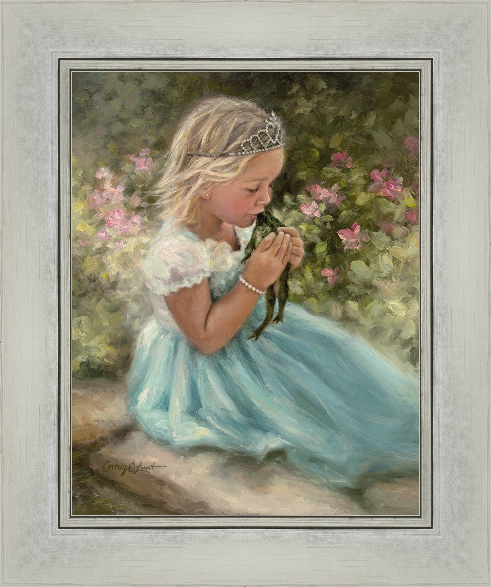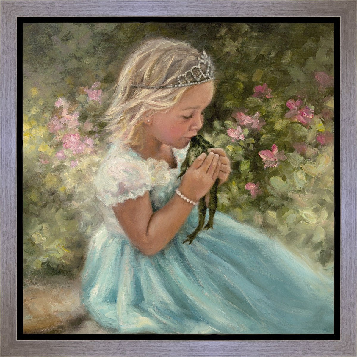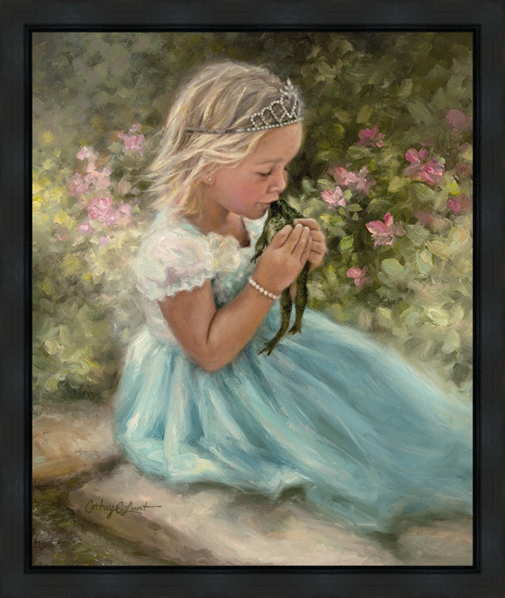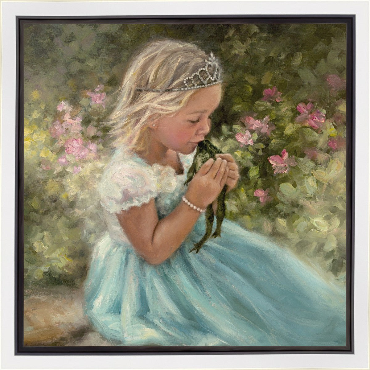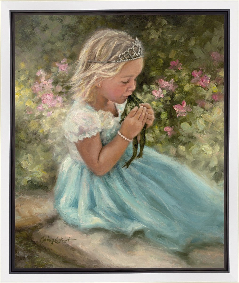 Little girls believe they are princesses. This girl, in particular, had no fear of kissing this toad! She was fully confident that her kiss could make something happen, and she knew she was special in her little gown. For some reason, when girls get a bit older, they forget to believe. They sometimes forget who they truly are. I hope that this painting can bring back some of that belief.