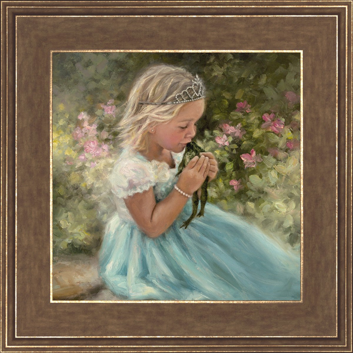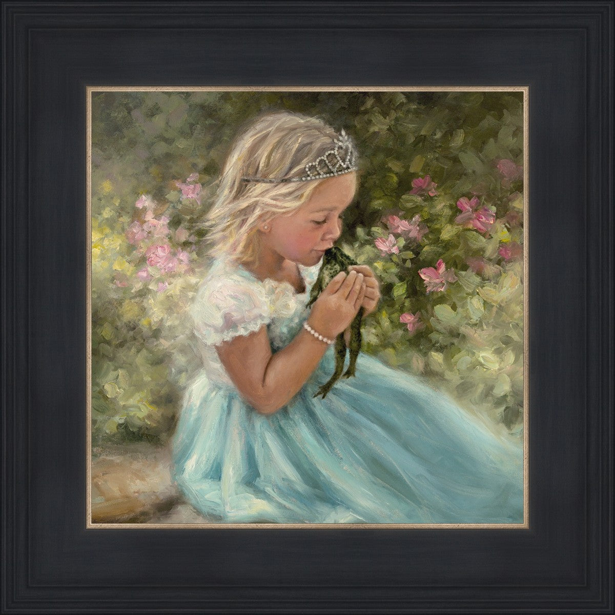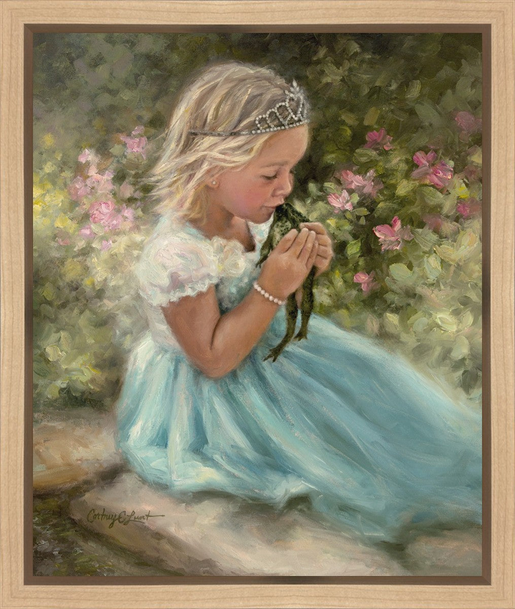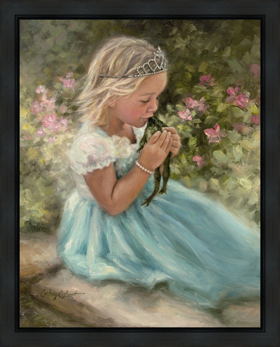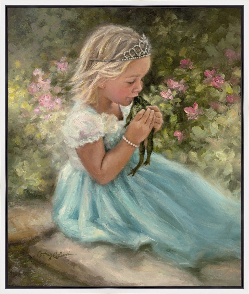 Little girls believe they are princesses. This girl, in particular, had no fear of kissing this toad! She was fully confident that her kiss could make something happen, and she knew she was special in her little gown. For some reason, when girls get a bit older, they forget to believe. They sometimes forget who they truly are. I hope that this painting can bring back some of that belief.