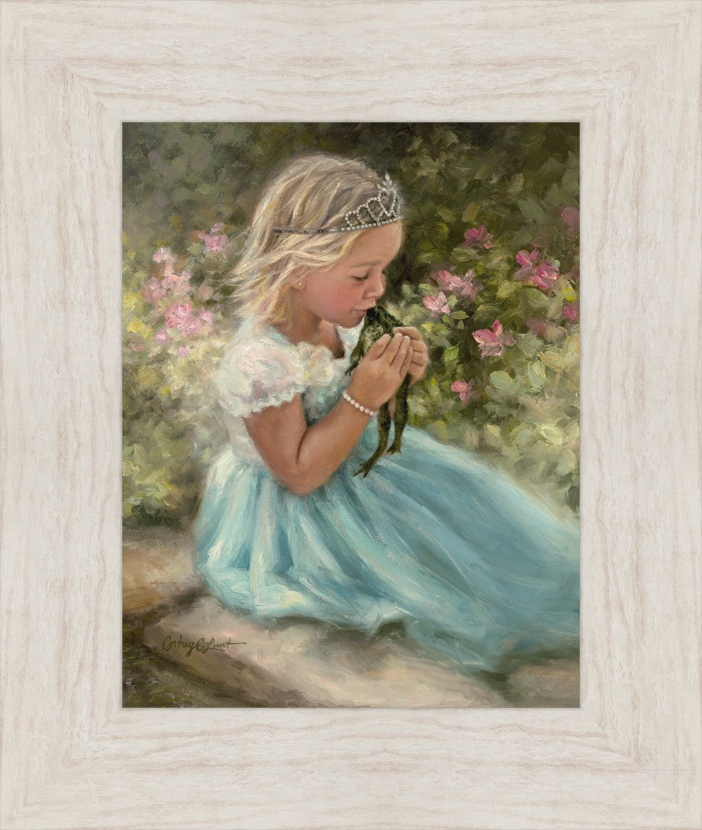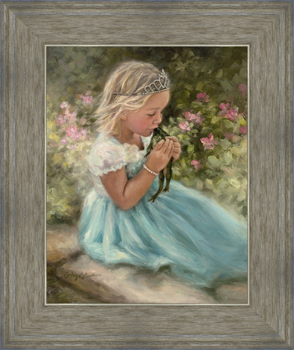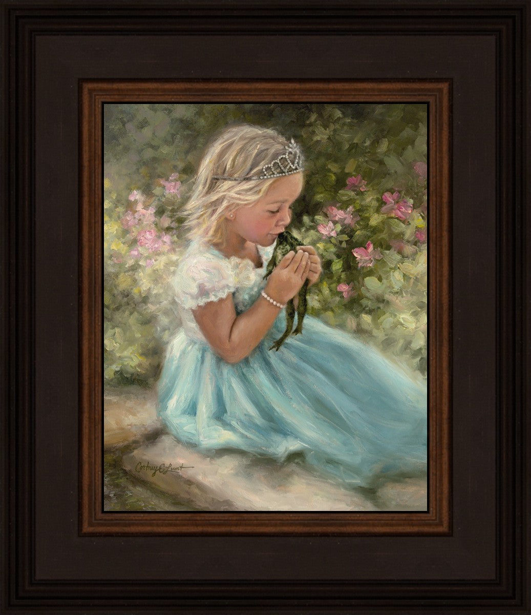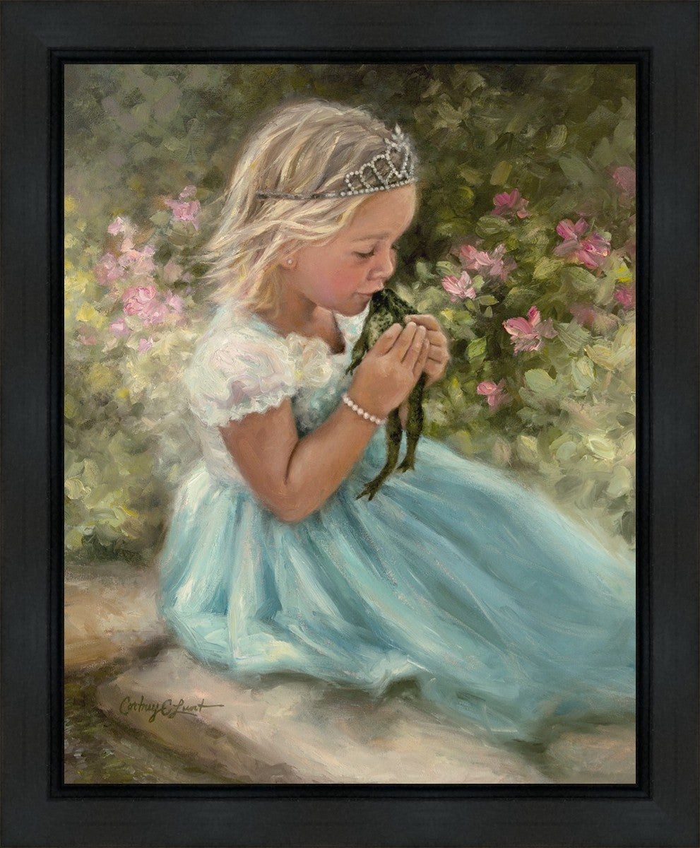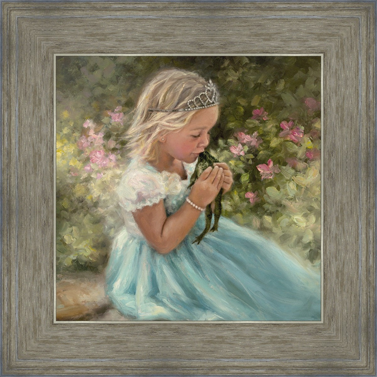 Little girls believe they are princesses. This girl, in particular, had no fear of kissing this toad! She was fully confident that her kiss could make something happen, and she knew she was special in her little gown. For some reason, when girls get a bit older, they forget to believe. They sometimes forget who they truly are. I hope that this painting can bring back some of that belief.
