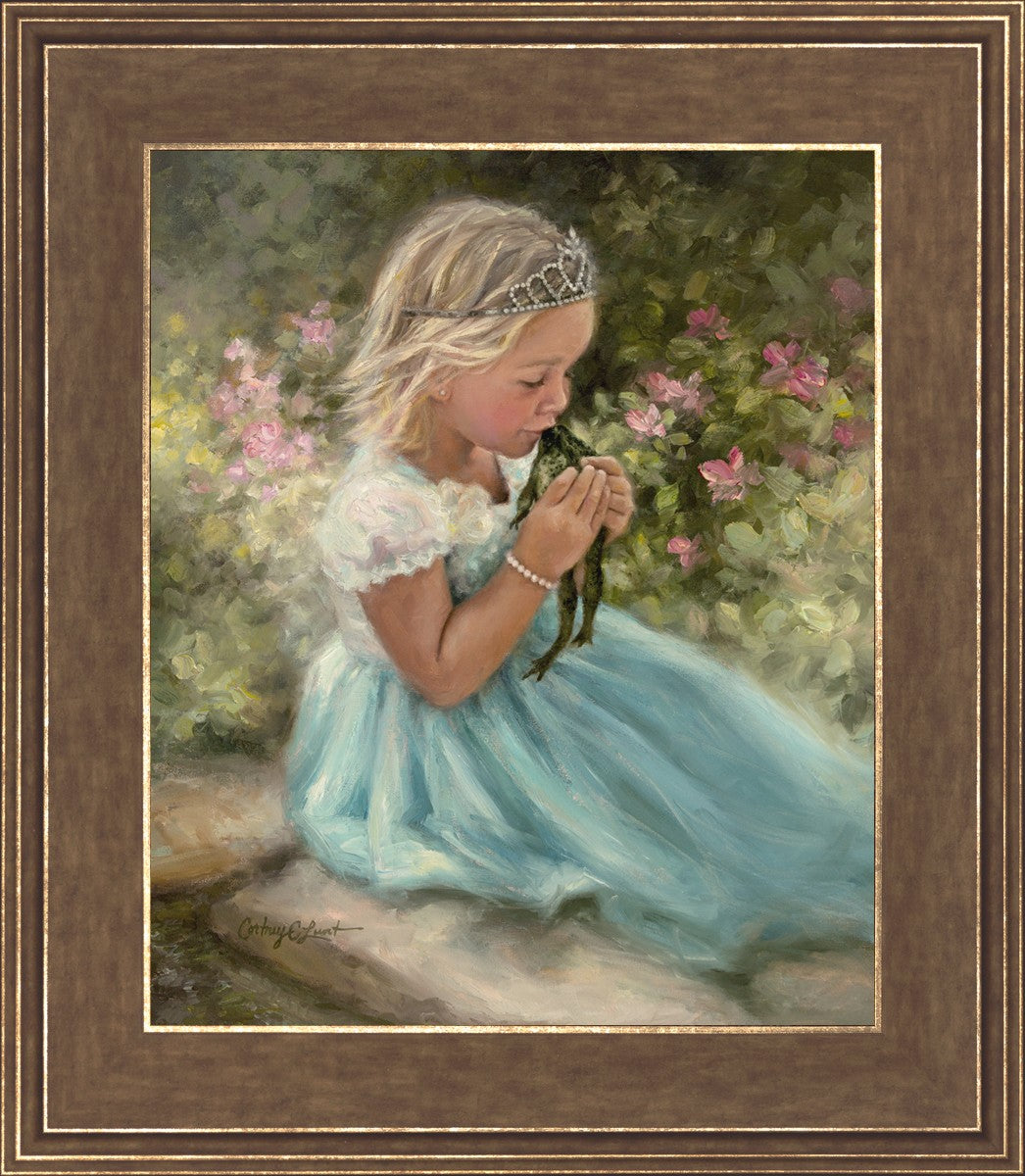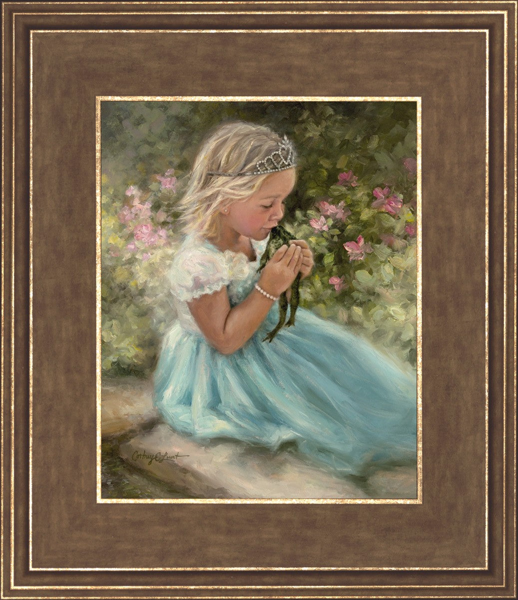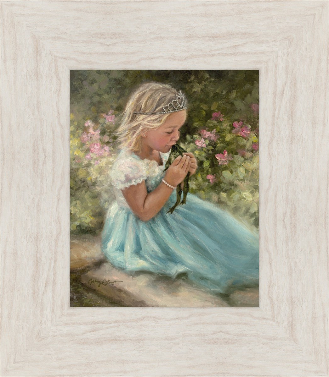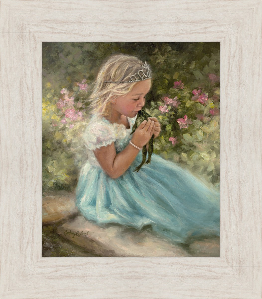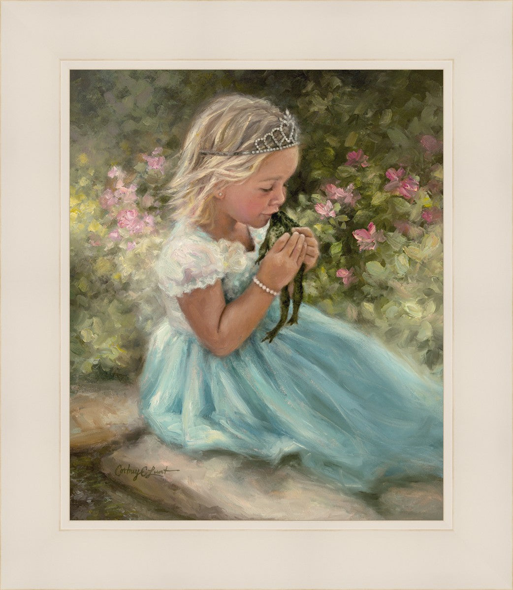 Little girls believe they are princesses. This girl, in particular, had no fear of kissing this toad! She was fully confident that her kiss could make something happen, and she knew she was special in her little gown. For some reason, when girls get a bit older, they forget to believe. They sometimes forget who they truly are. I hope that this painting can bring back some of that belief.