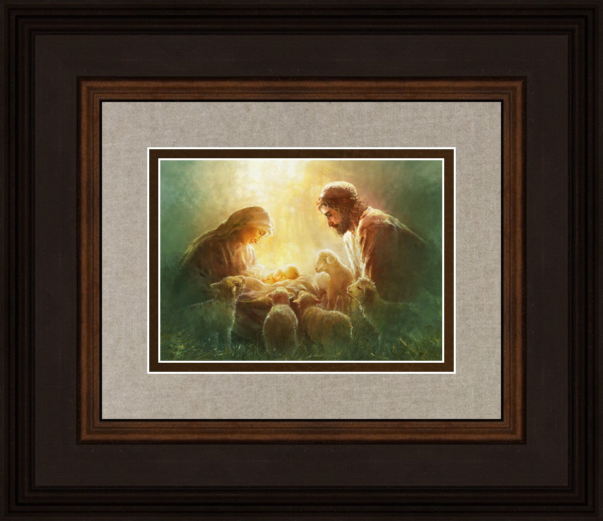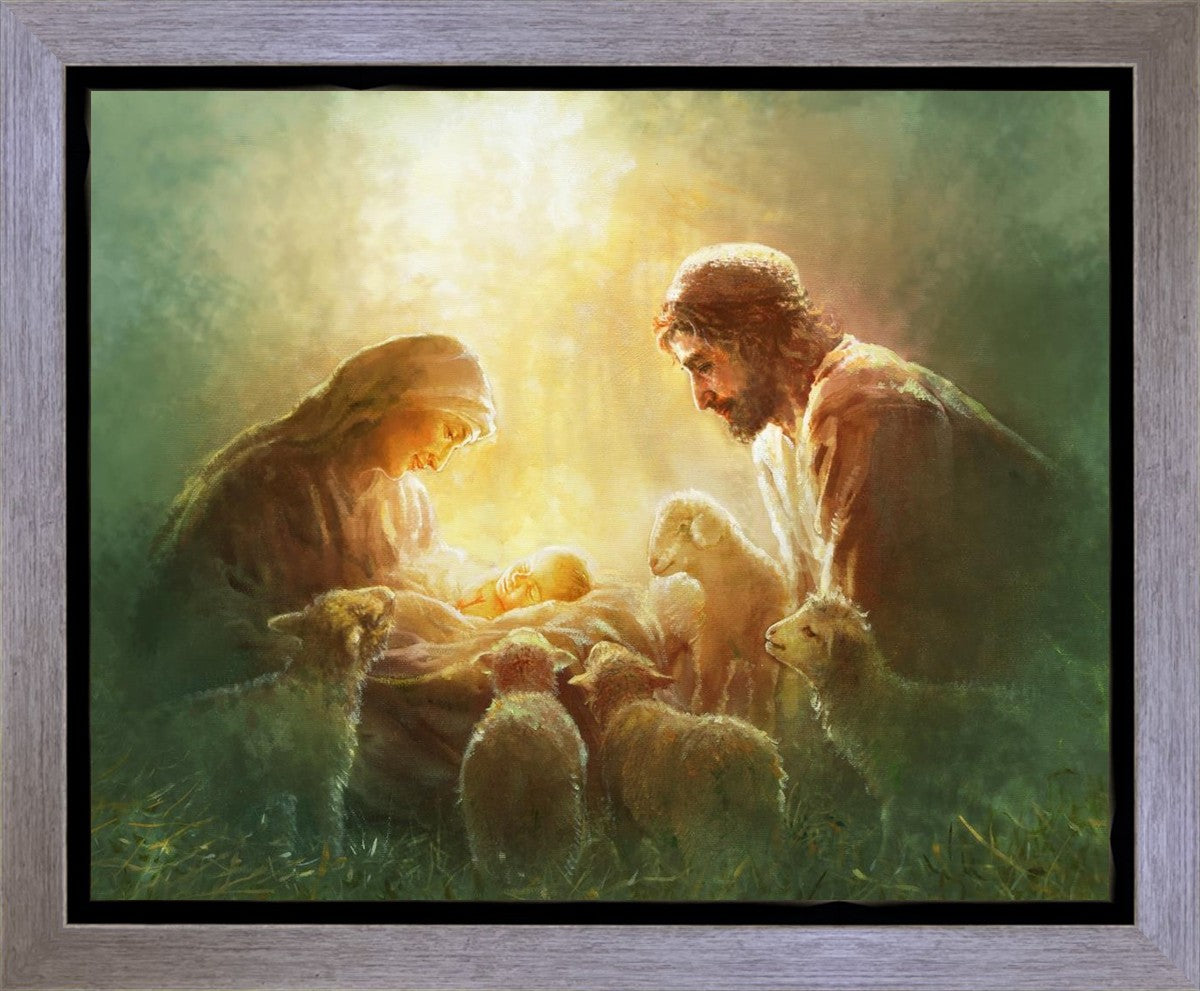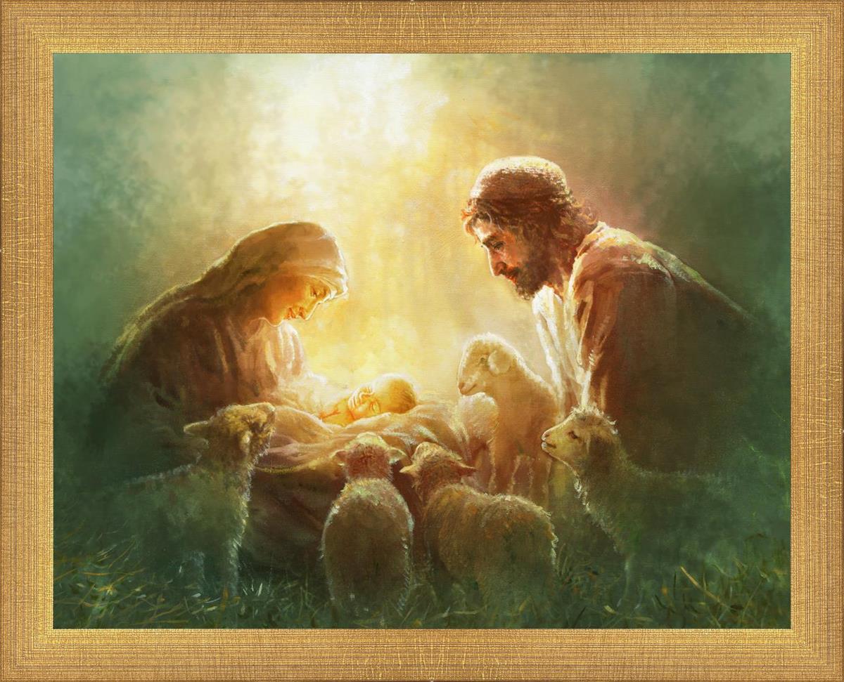 Immanuel by Yongsung Kim captures the serene moment of Mary and Joseph gazing at baby Jesus, evoking feelings of peace and joy.