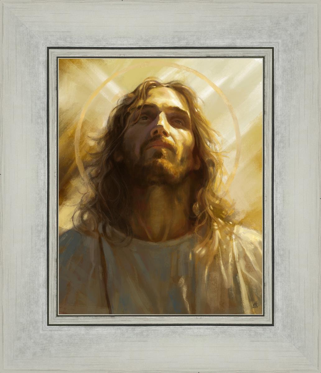 As the Gospel of John states, "I am the light of the world. Whoever follows me will not walk in darkness, but will have the light of life" (John 8:12). This verse echoes the sentiment conveyed in his painting, portraying Jesus as the source of divine light and hope. His upward gaze suggests that he is always connected to the heavenly realm, drawing strength and guidance from a higher power. His divine connection is our light, and reassurance. This image offers a powerful reminder that even in the darkest of times, there is always hope to be found in Jesus Christ.
