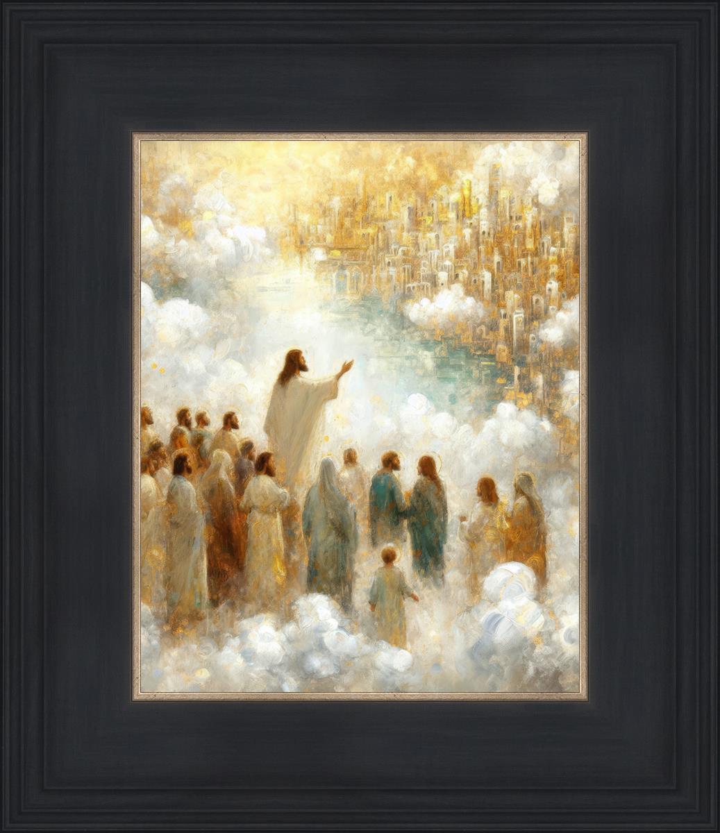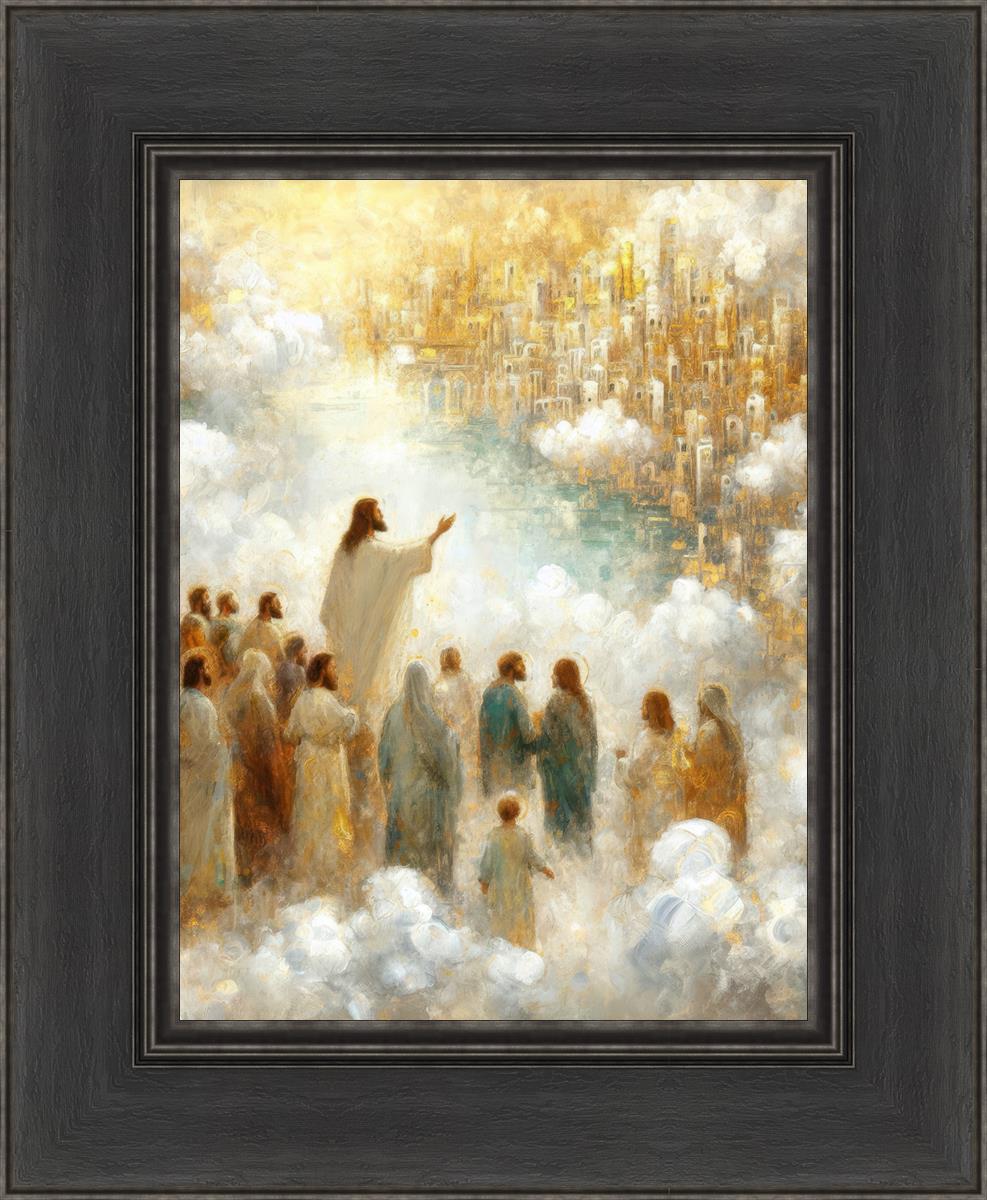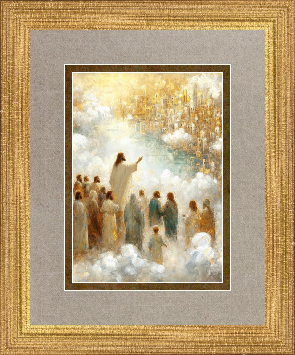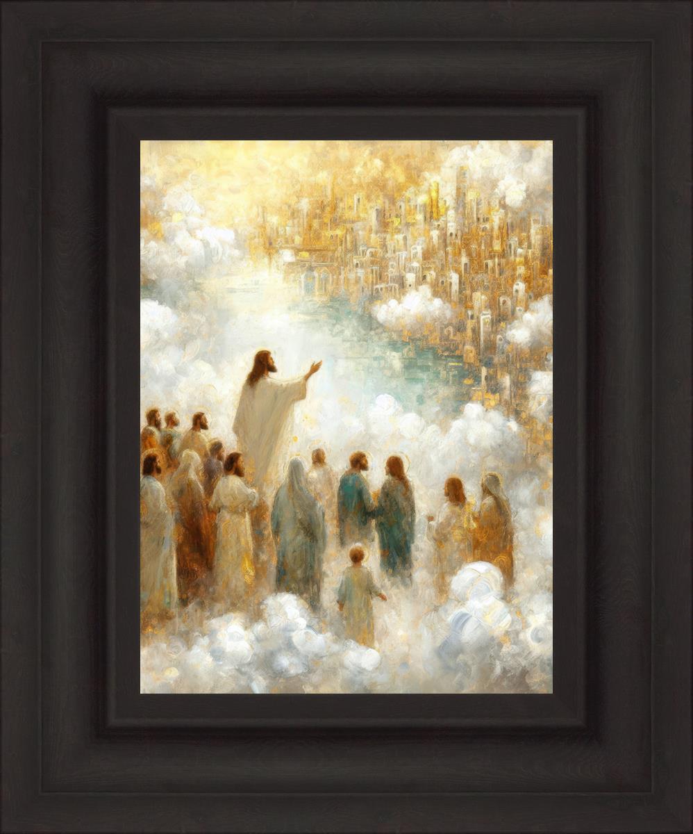In creating “Kingdom Come”, we wanted to capture the deep longing in Jesus' prayer from the book of Matthew, "Your kingdom come, your will be done, on earth as it is in heaven." This scene shows Jesus surrounded by a crowd, all looking toward a radiant city in the distance - a vision of heaven breaking through to our world. For us, this piece reflects a hope for transformation: that our lives and communities could mirror the peace, love, and justice of God’s kingdom.