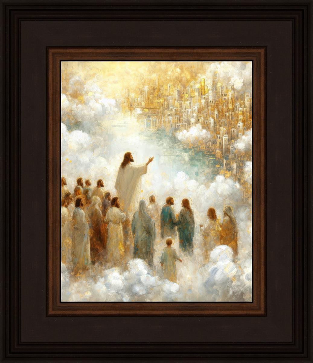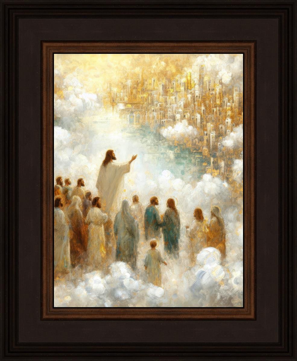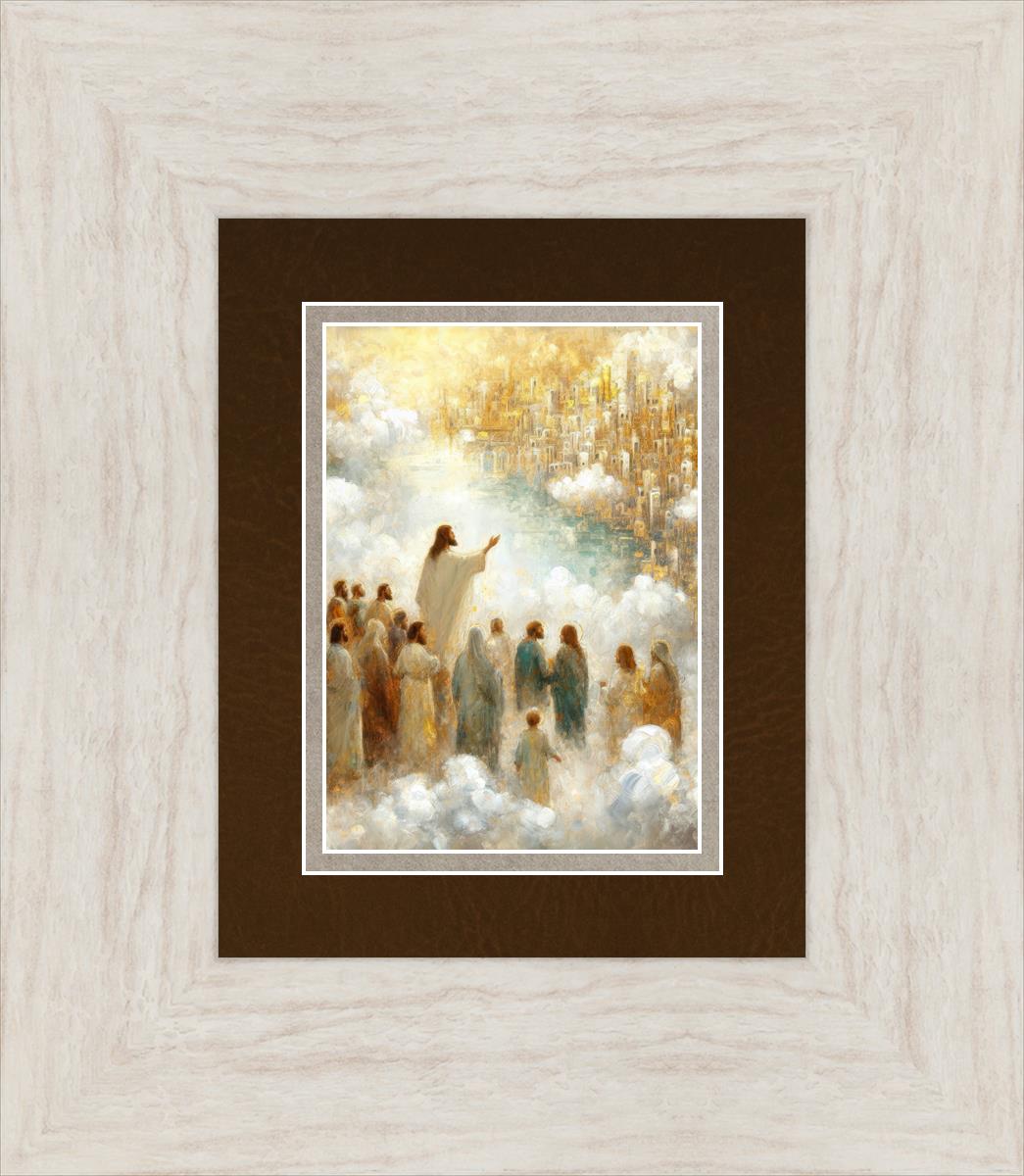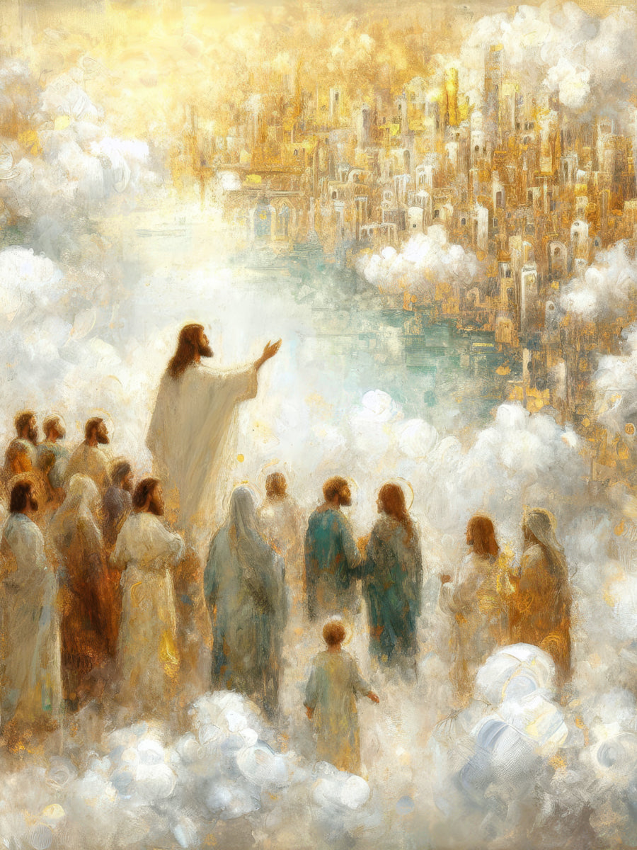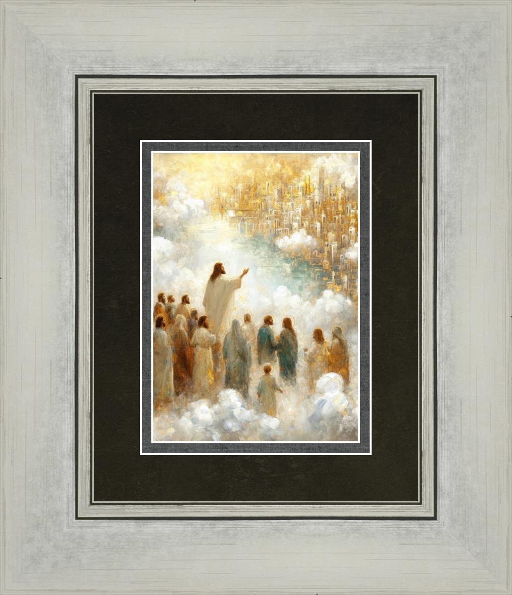 In creating “Kingdom Come”, we wanted to capture the deep longing in Jesus' prayer from the book of Matthew, "Your kingdom come, your will be done, on earth as it is in heaven." This scene shows Jesus surrounded by a crowd, all looking toward a radiant city in the distance - a vision of heaven breaking through to our world. For us, this piece reflects a hope for transformation: that our lives and communities could mirror the peace, love, and justice of God’s kingdom.