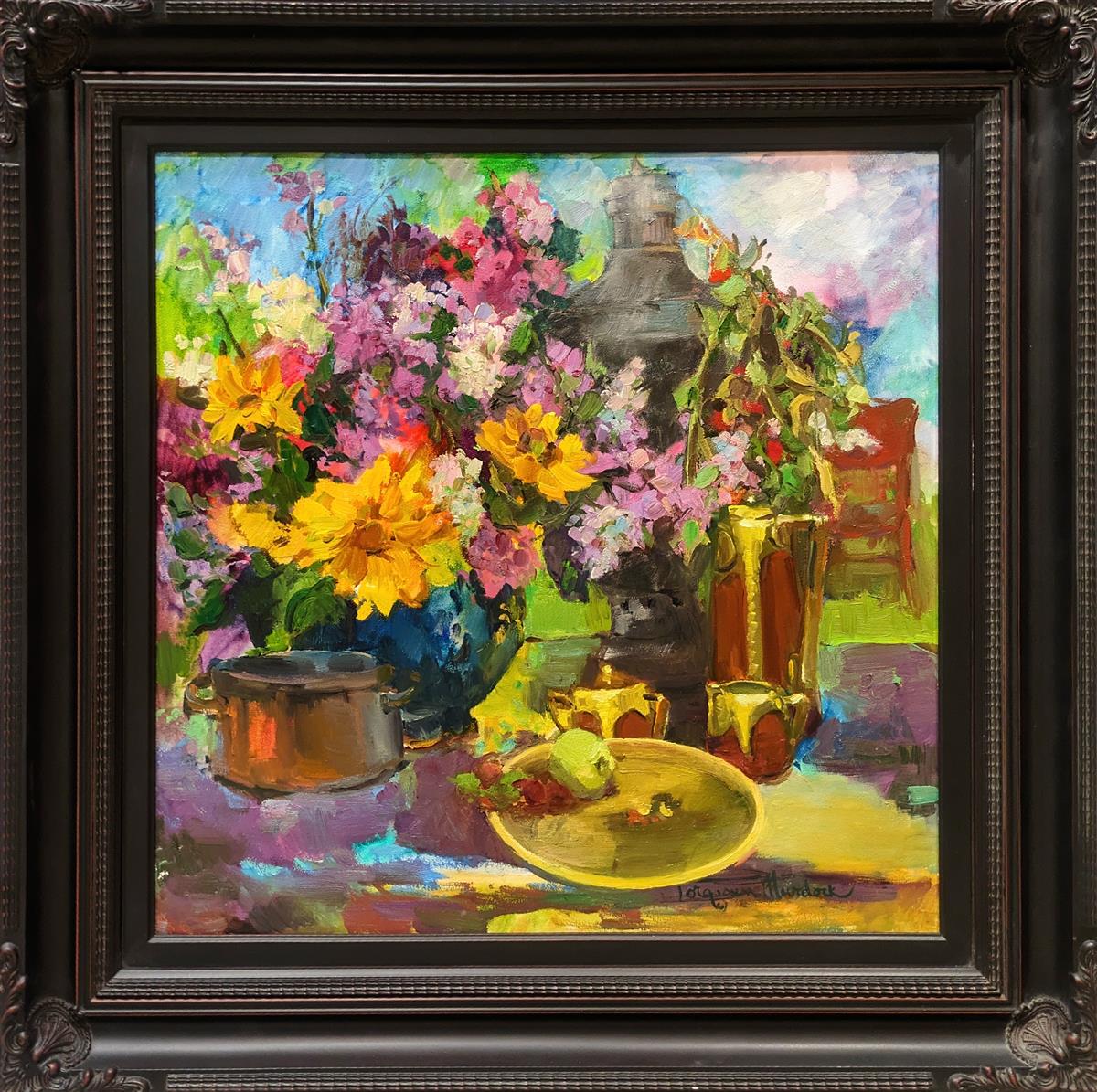 Original Artwork of oil on canvas painted at 30 x 30. Framed at 41 x 41.