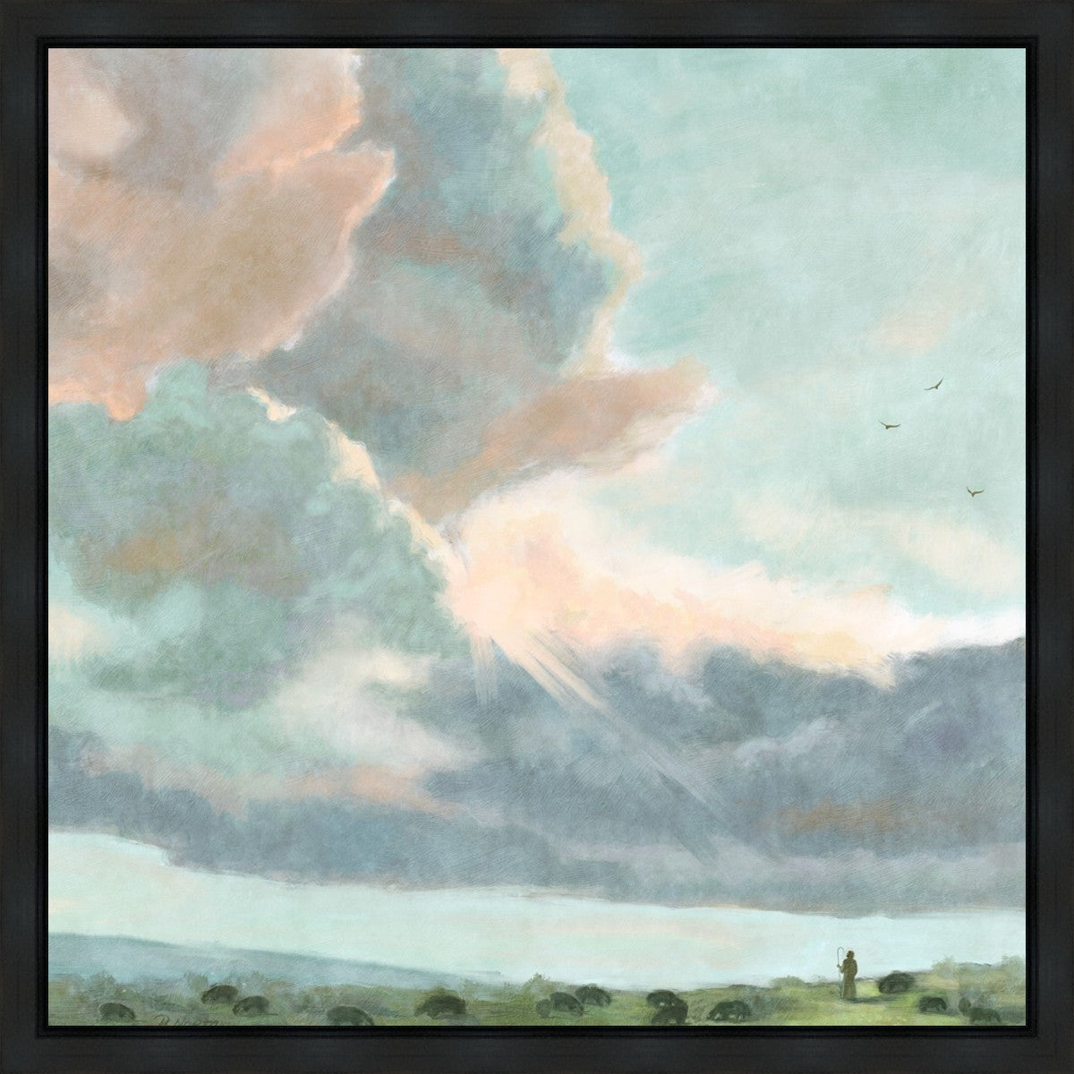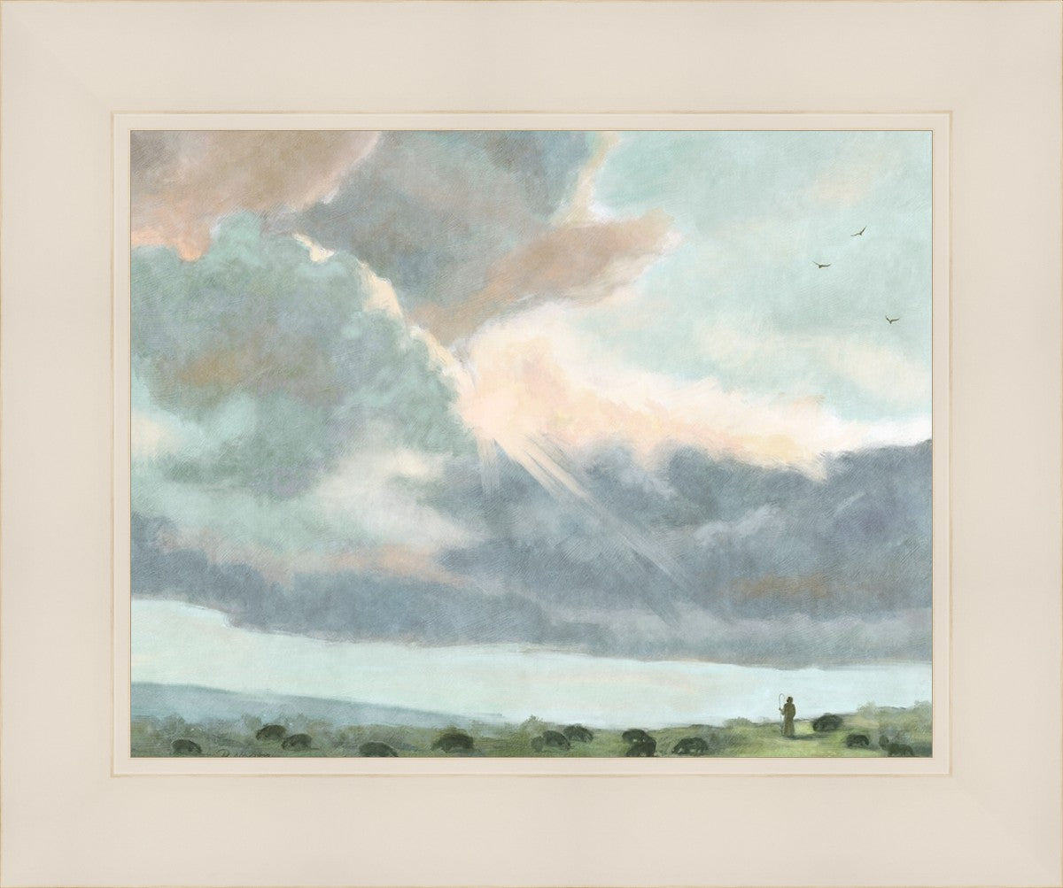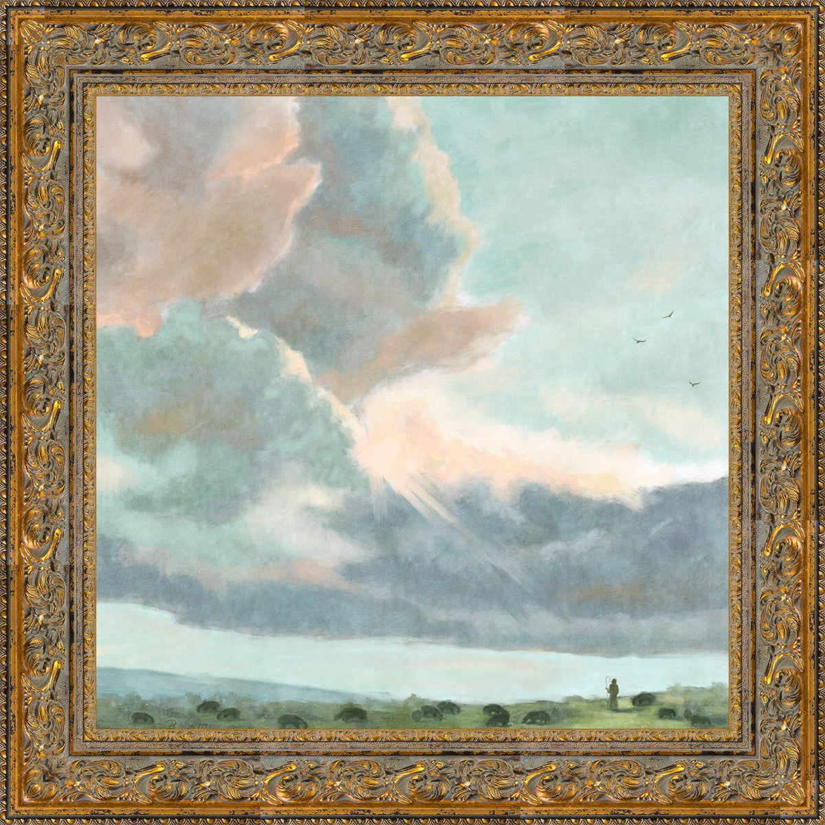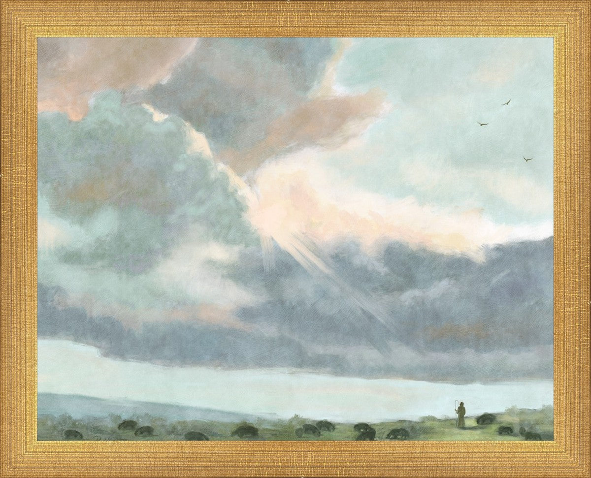 Inspired by Luke 12:32 "Fear not, little flock; for it is your Father's good pleasure to give you the kingdom." Based on Simon Andre Clement's 'Study of Clouds with a Sunset near Rome'