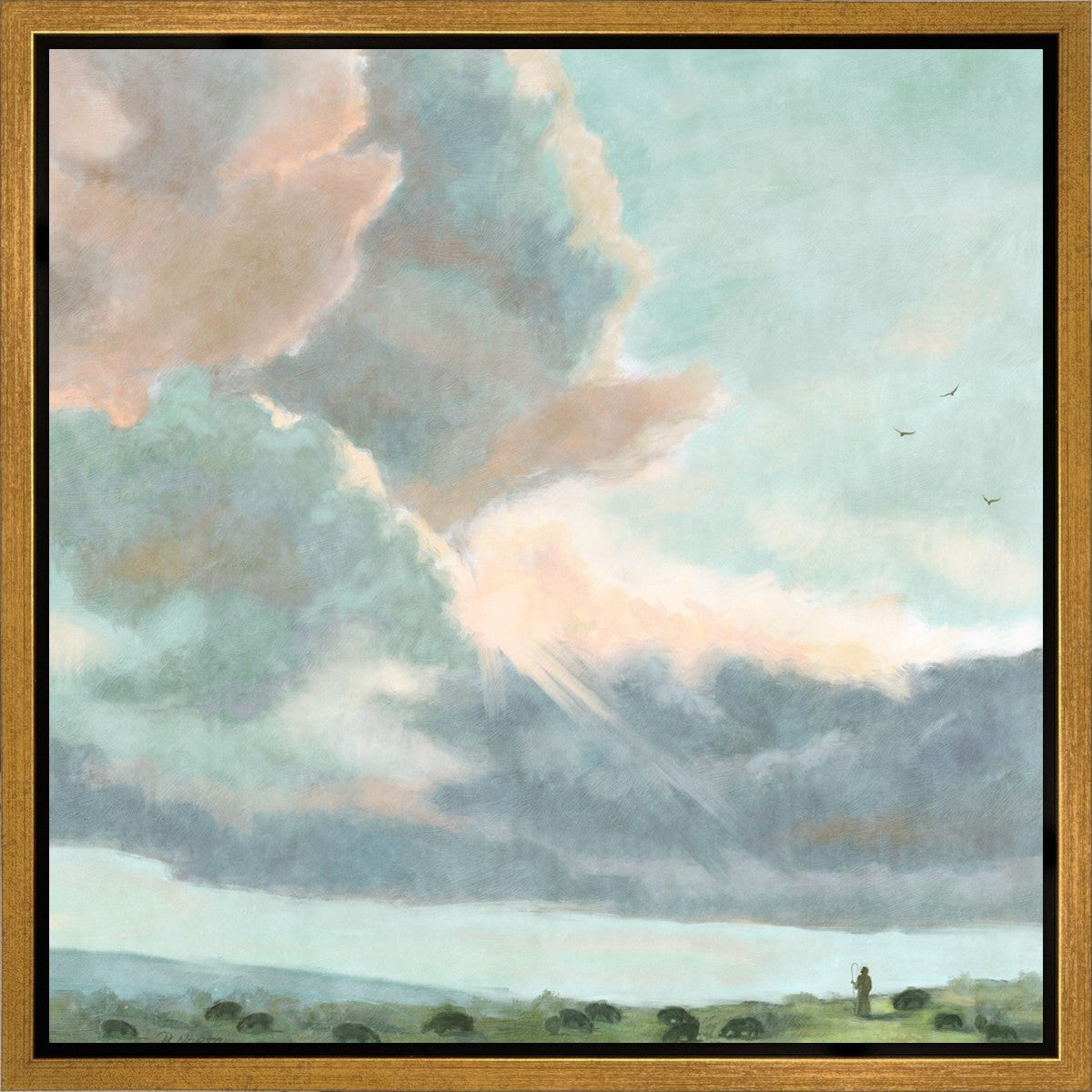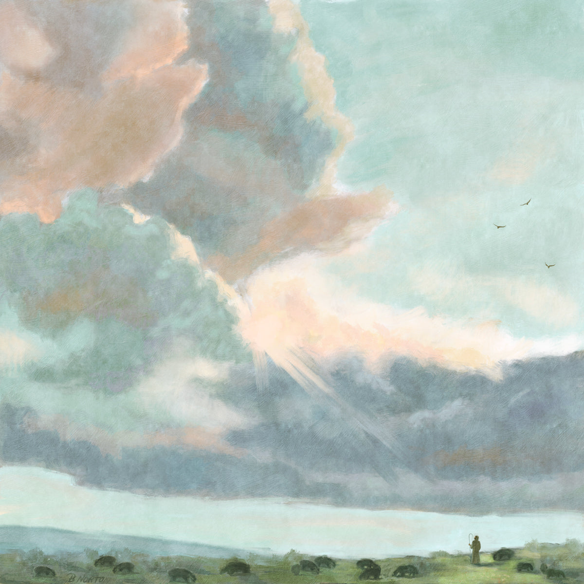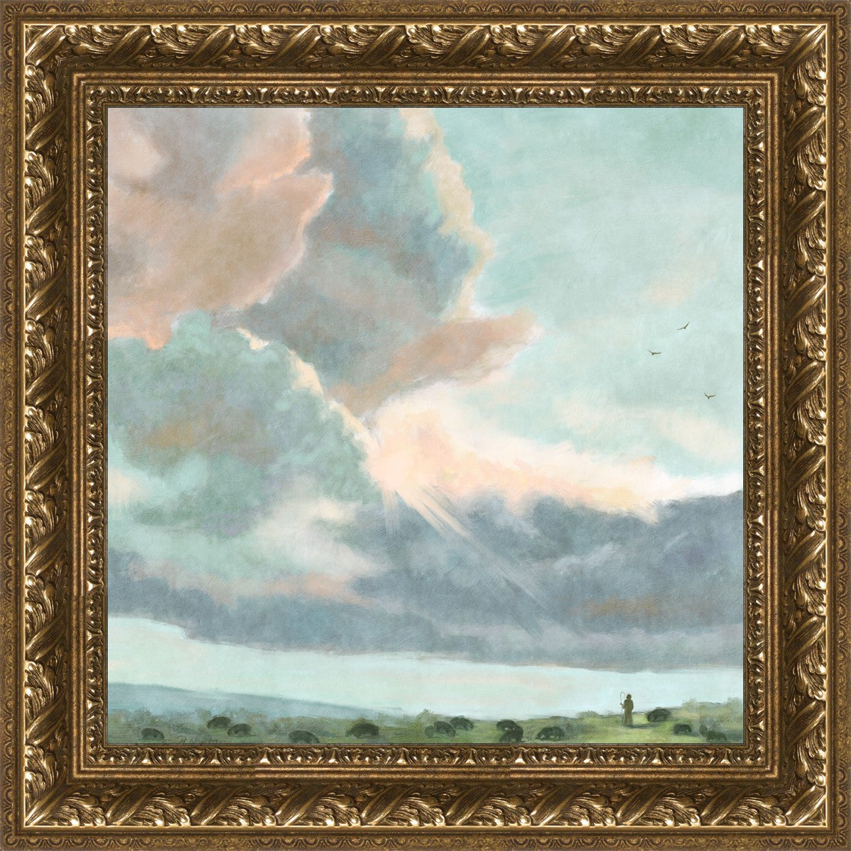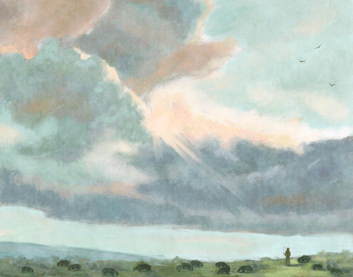 Inspired by Luke 12:32 "Fear not, little flock; for it is your Father's good pleasure to give you the kingdom." Based on Simon Andre Clement's 'Study of Clouds with a Sunset near Rome'