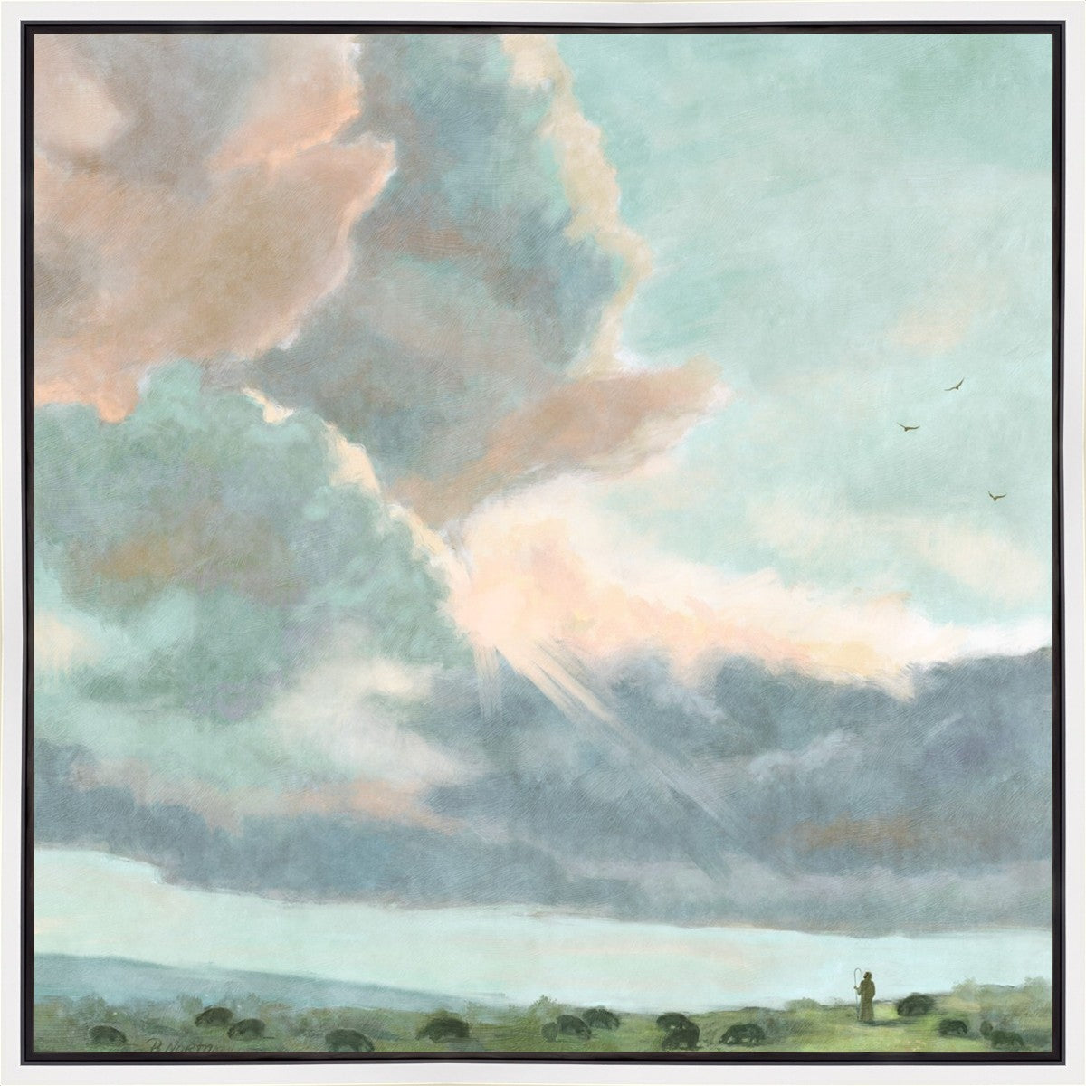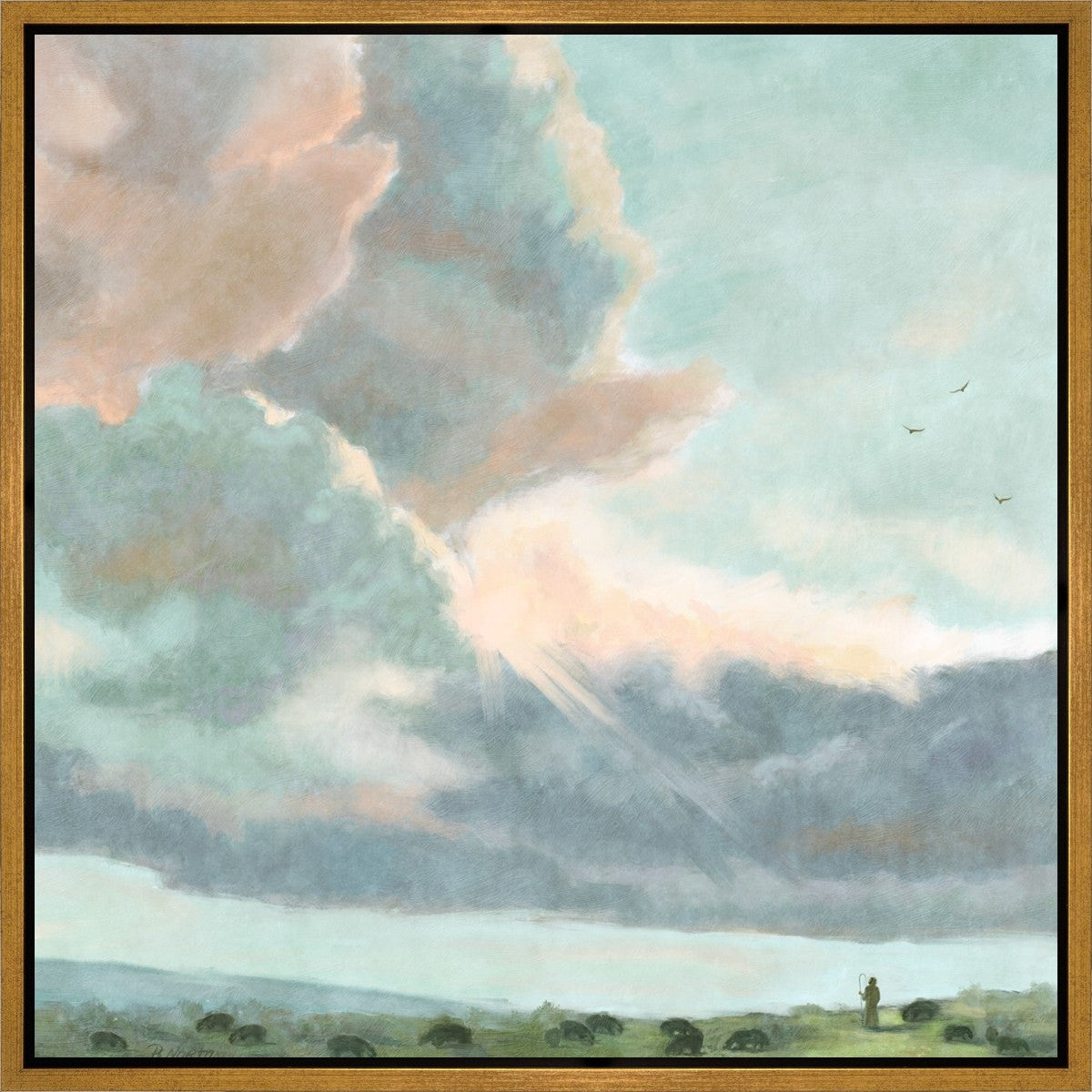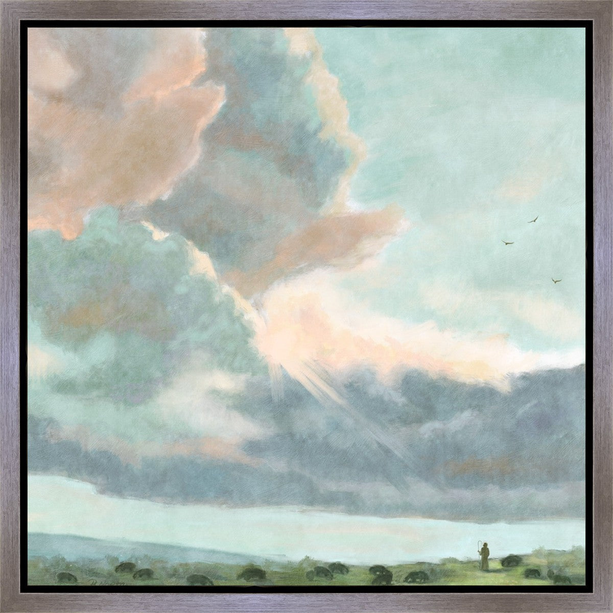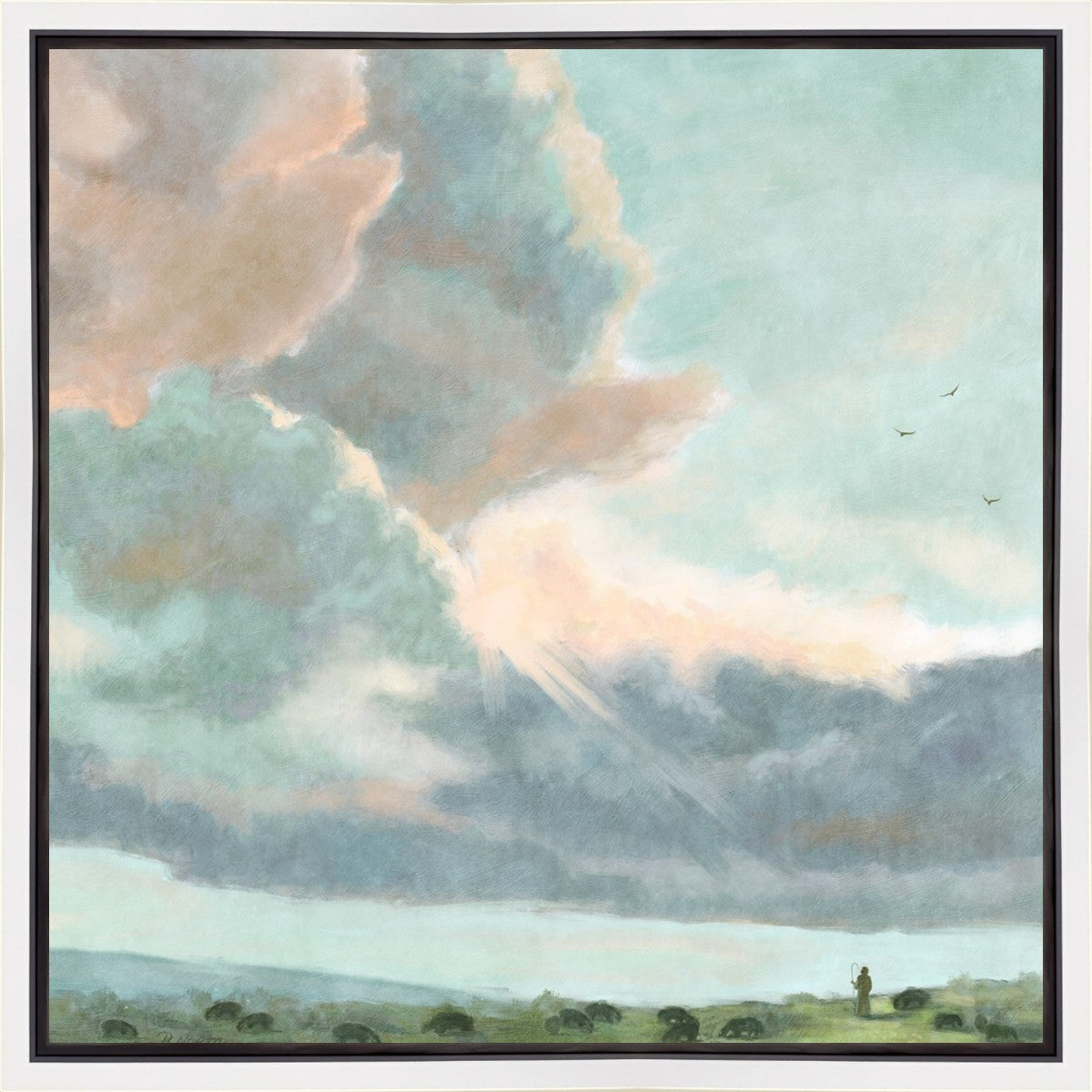 Inspired by Luke 12:32 "Fear not, little flock; for it is your Father's good pleasure to give you the kingdom." Based on Simon Andre Clement's 'Study of Clouds with a Sunset near Rome'