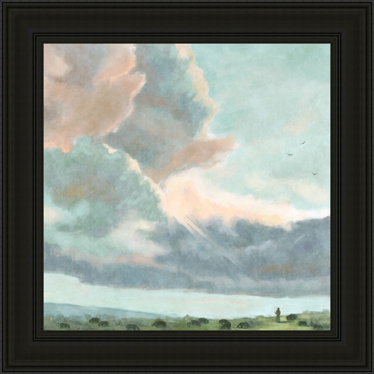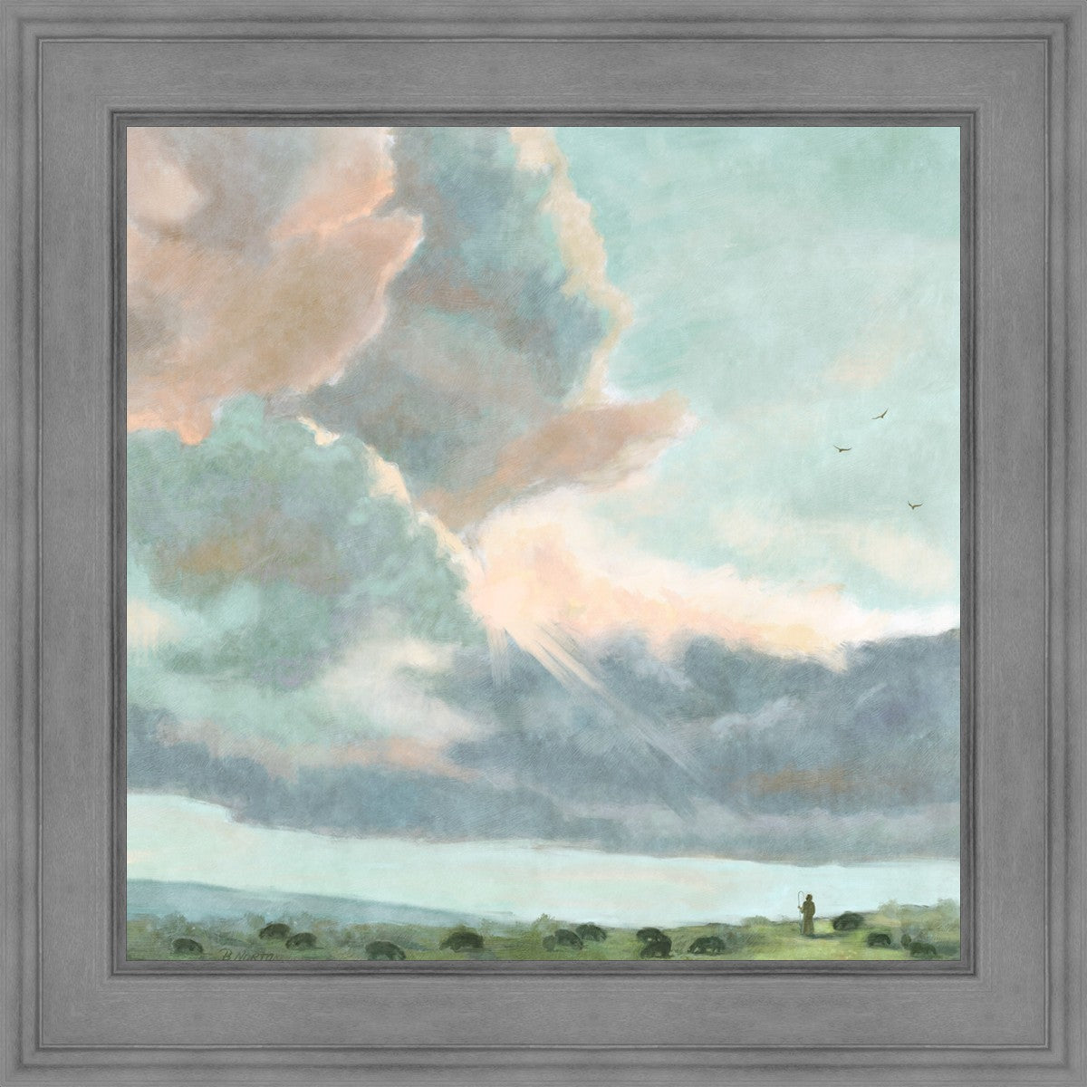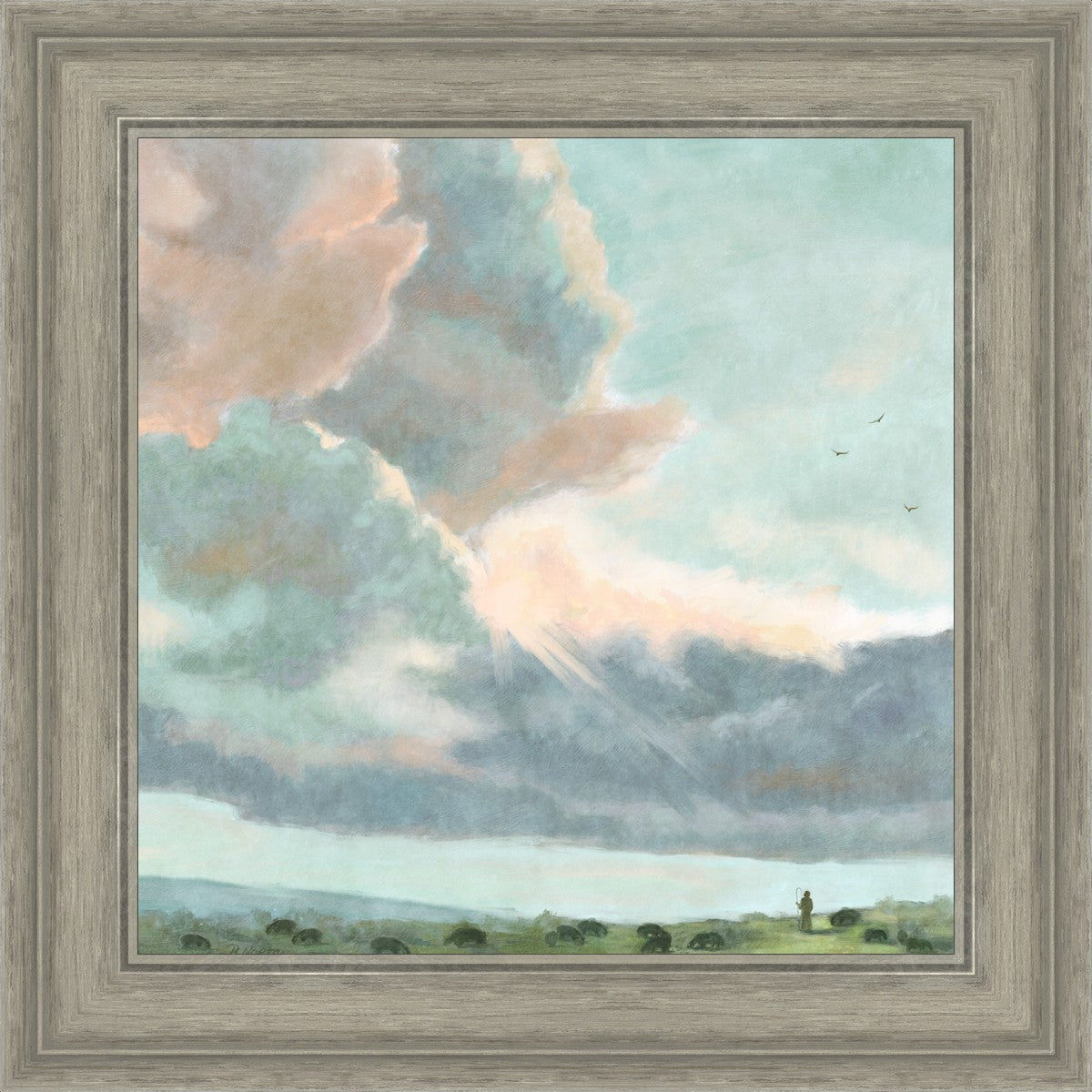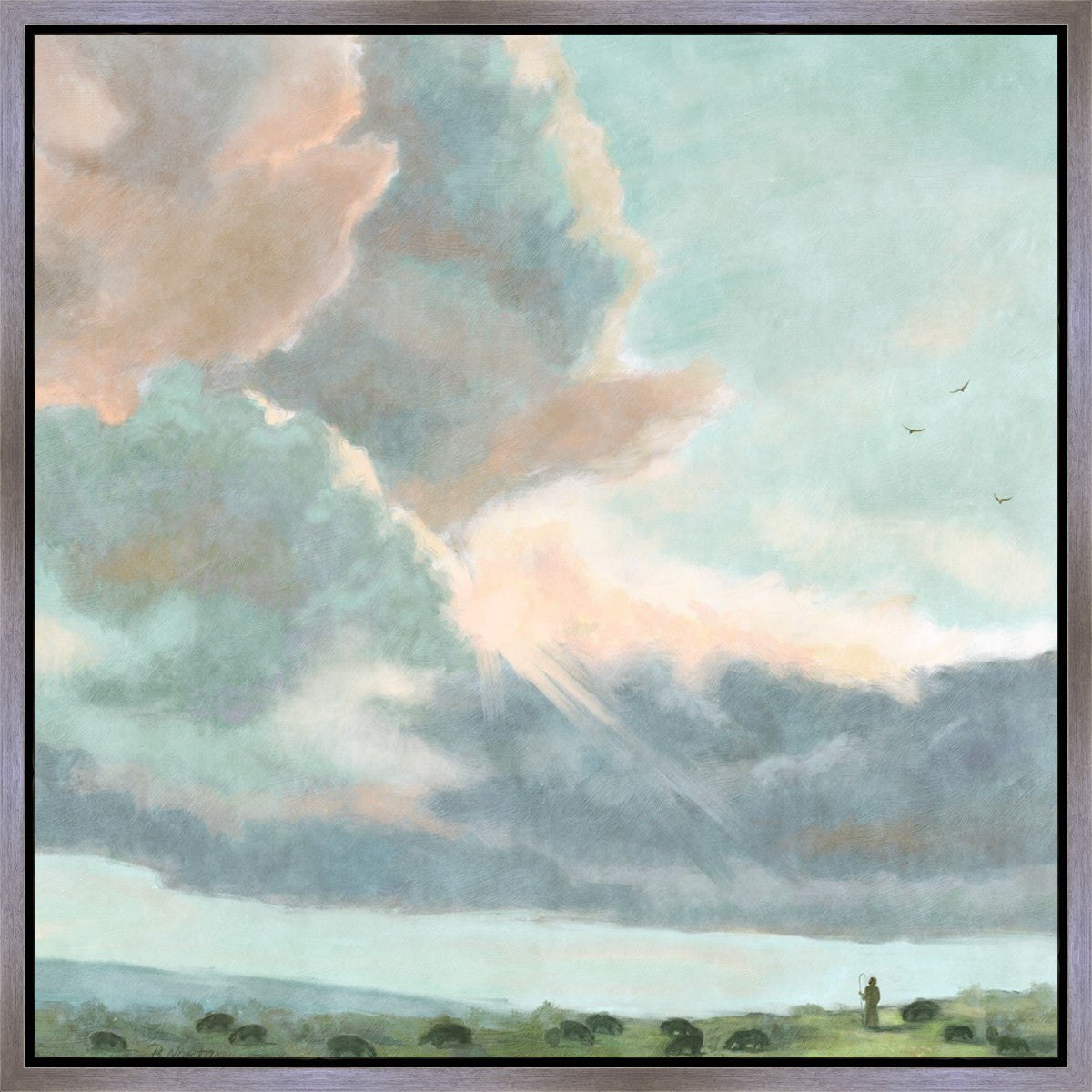 Inspired by Luke 12:32 "Fear not, little flock; for it is your Father's good pleasure to give you the kingdom." Based on Simon Andre Clement's 'Study of Clouds with a Sunset near Rome'