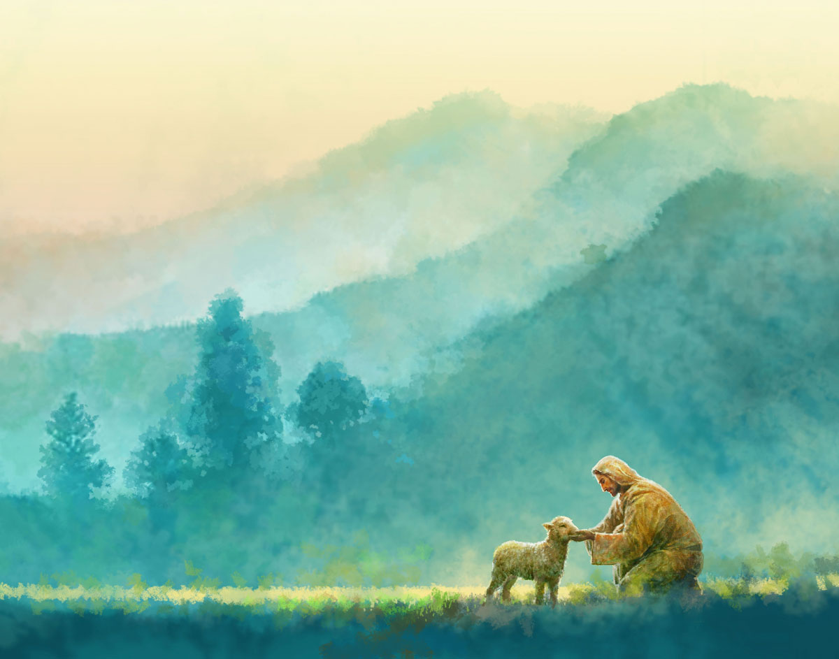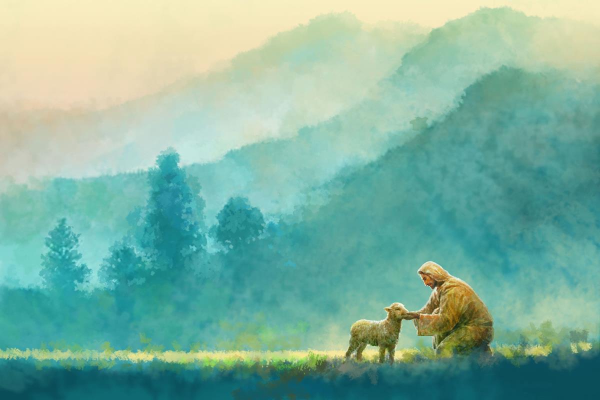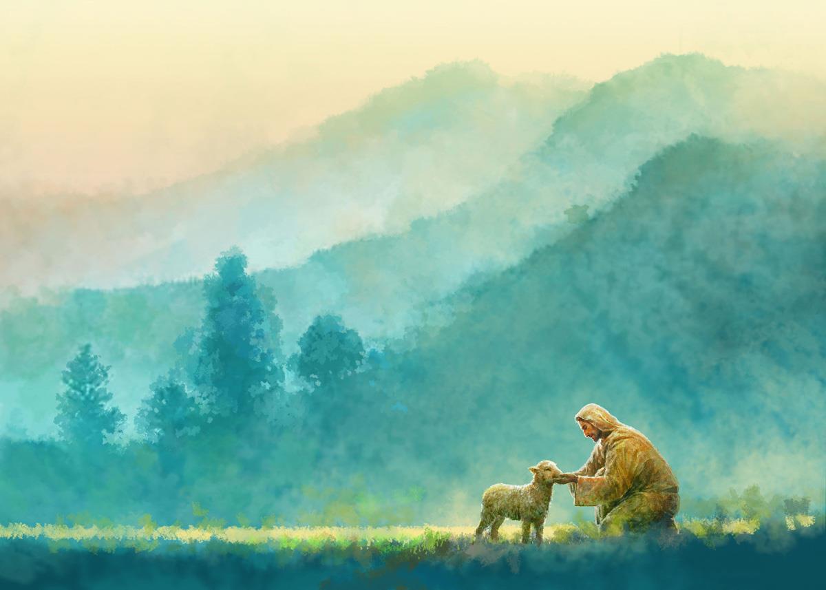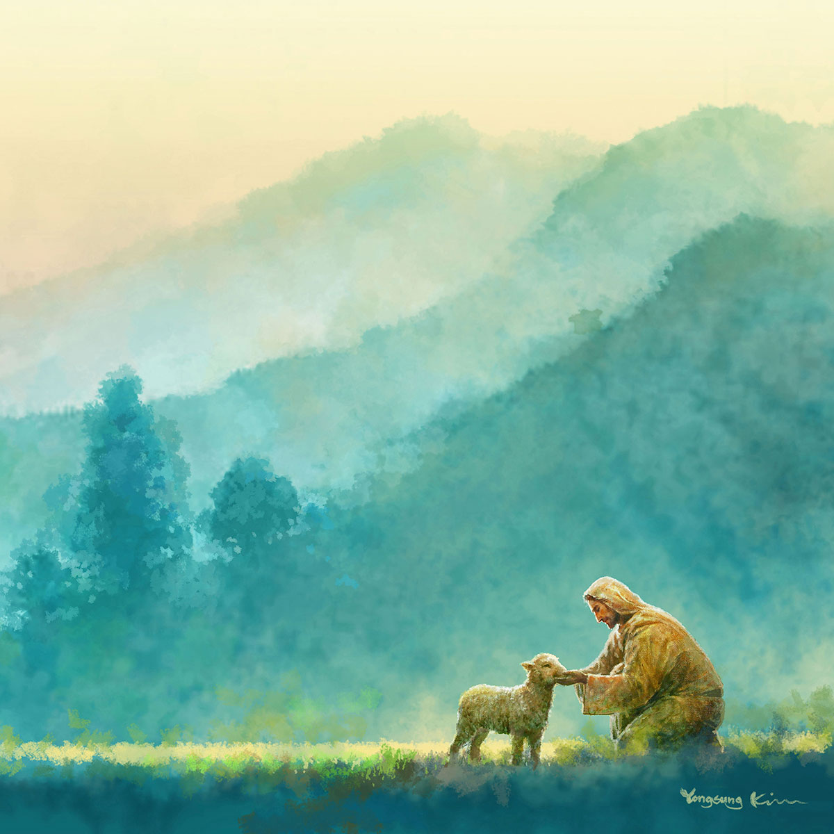Little One is a painting by Yongsung Kim. This painting depicts Jesus Christ tending to a lost lamb amidst a large field.