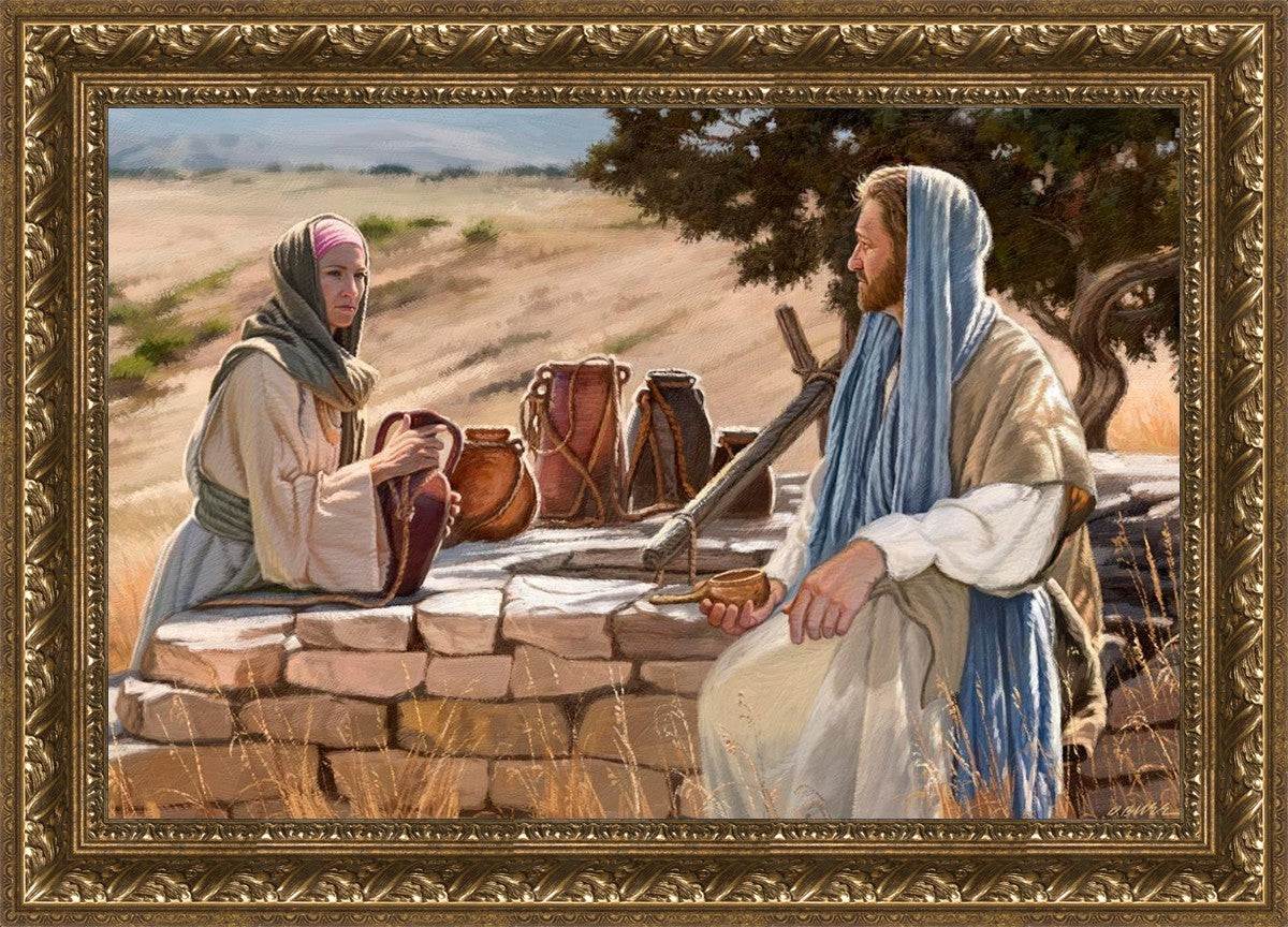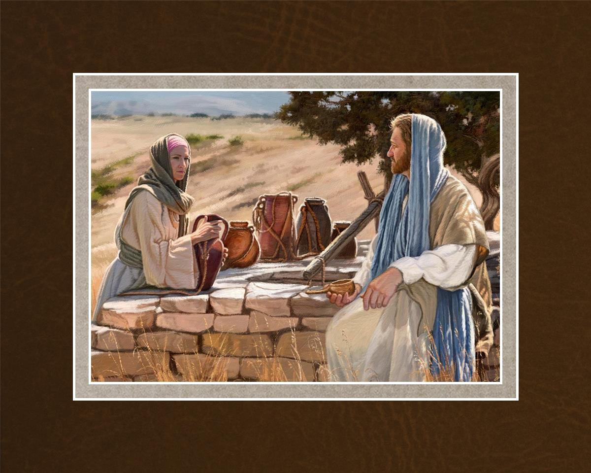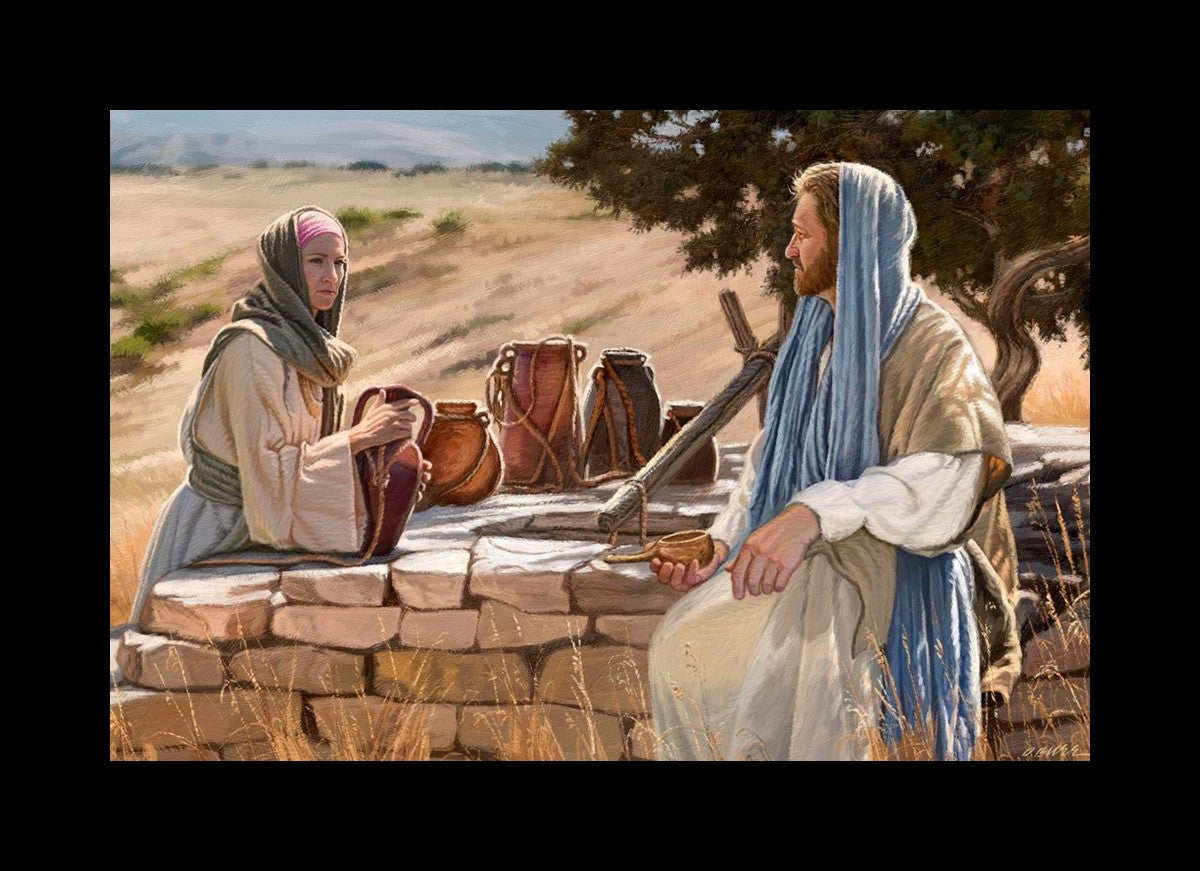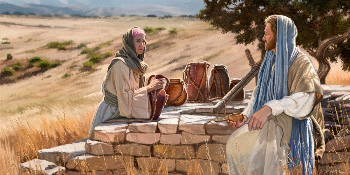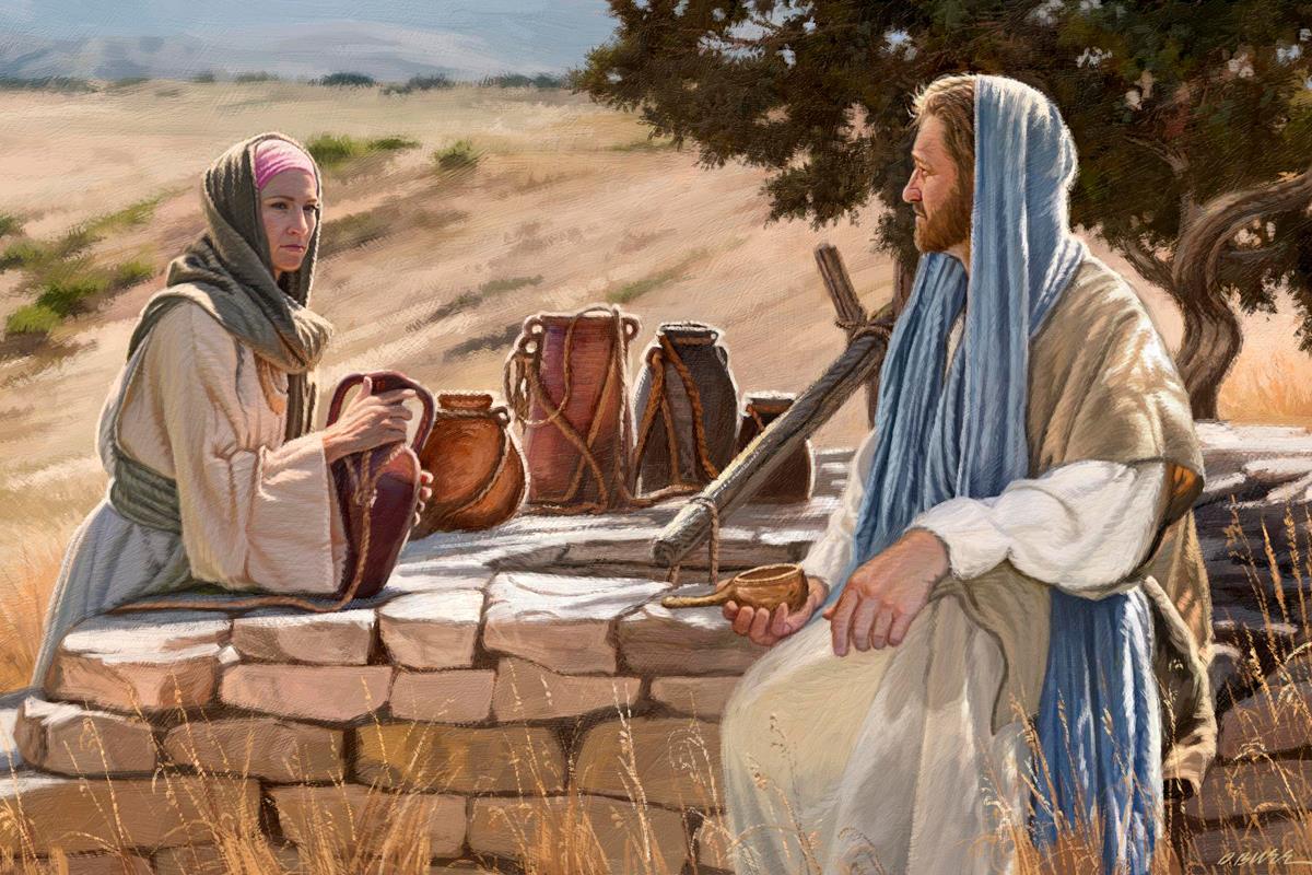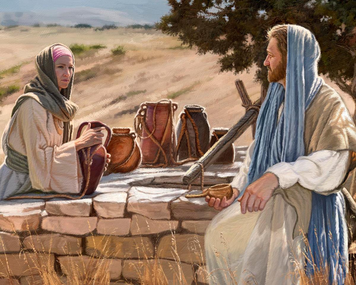 Jesus talking to the Samaritan Woman at the well.