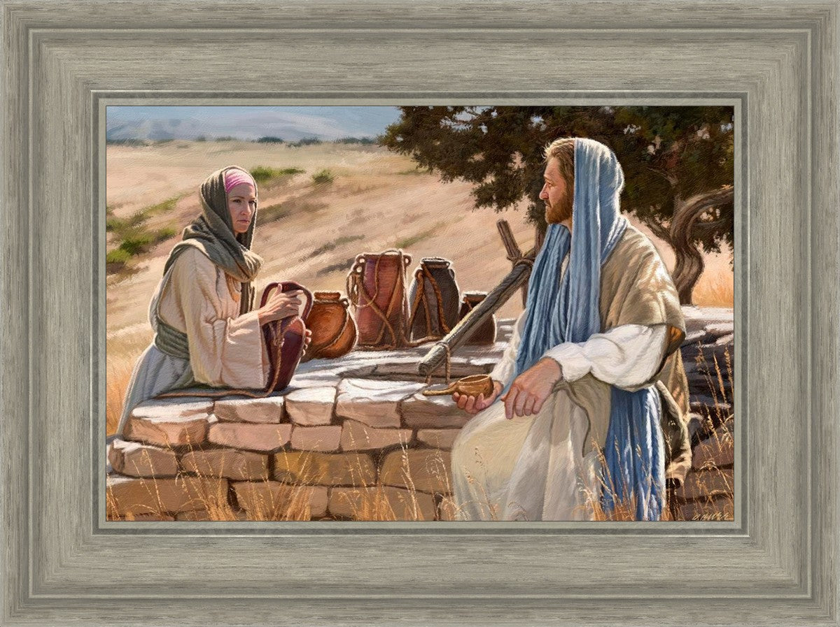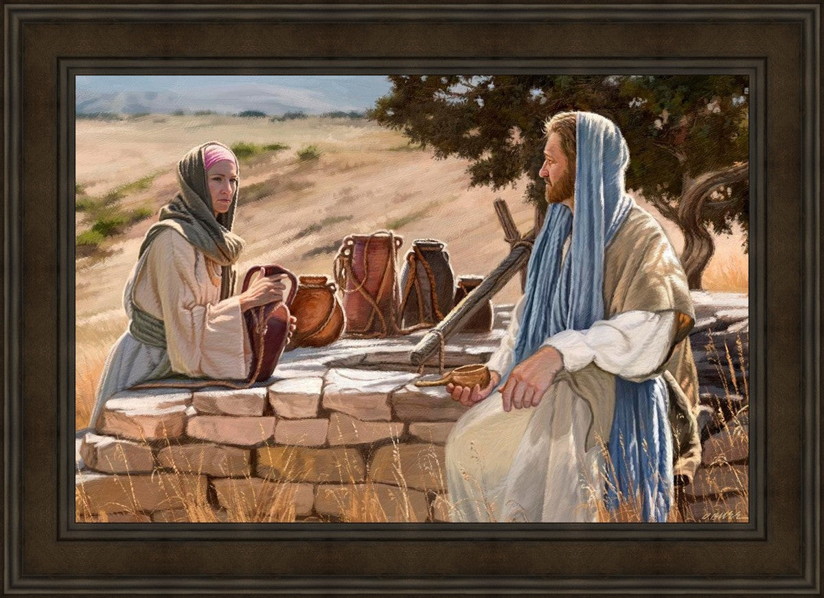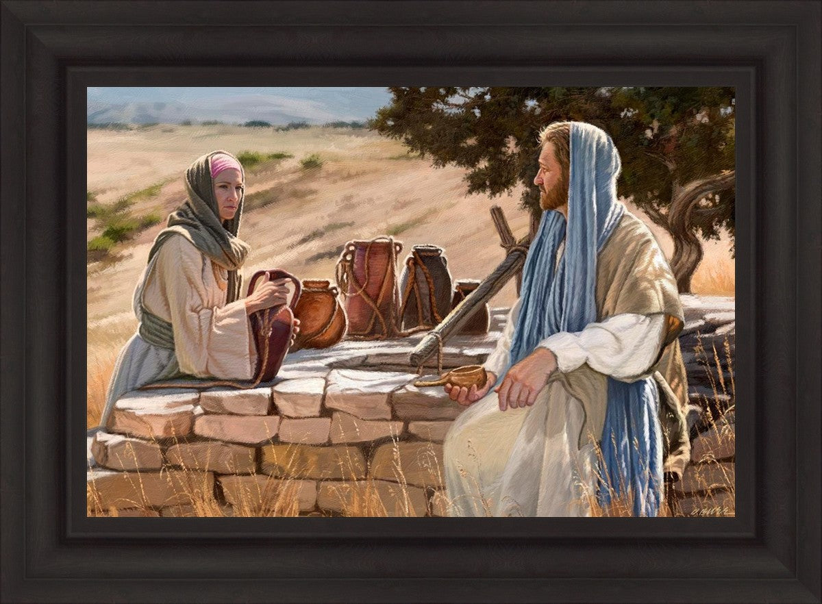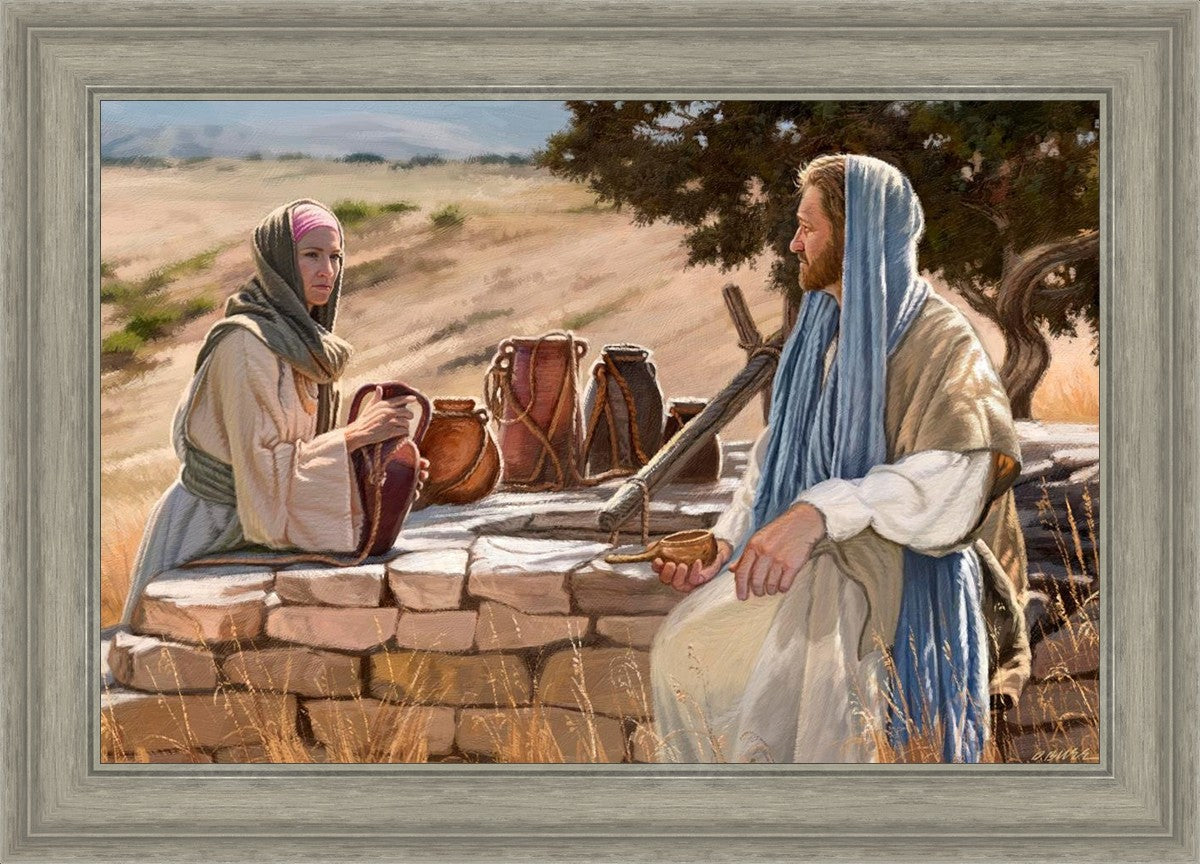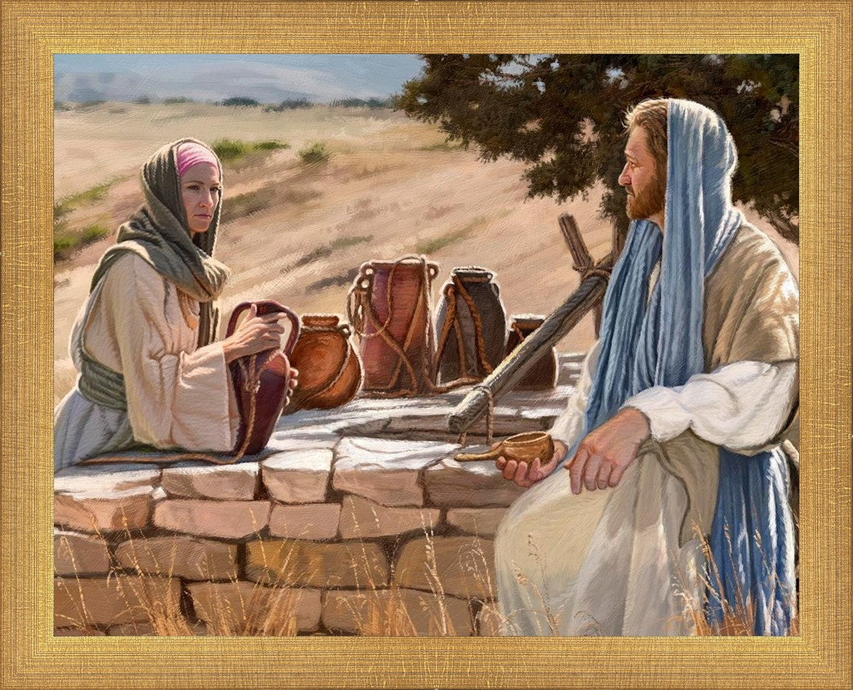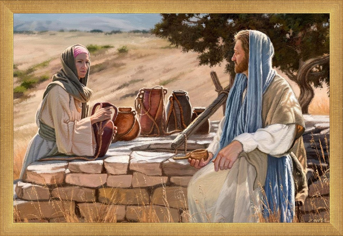 Jesus talking to the Samaritan Woman at the well.