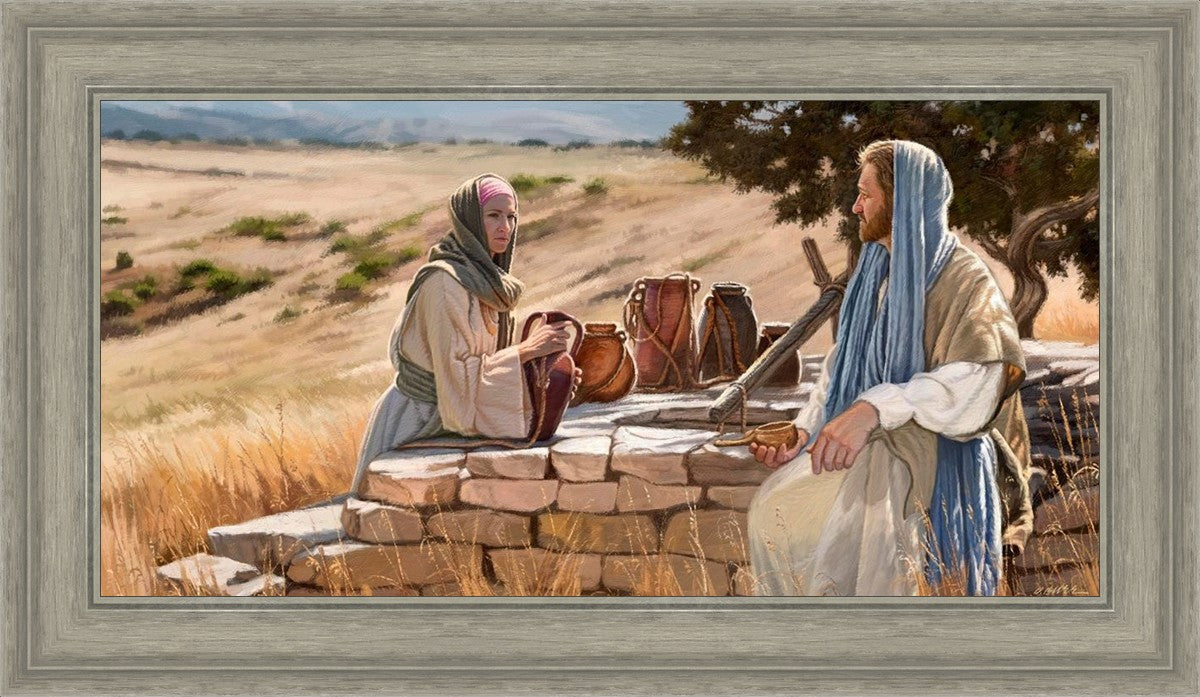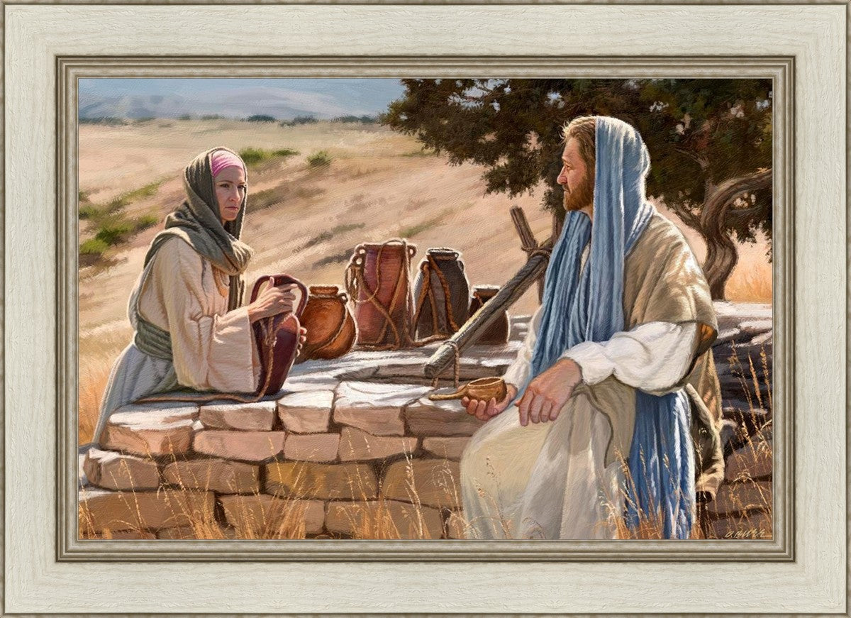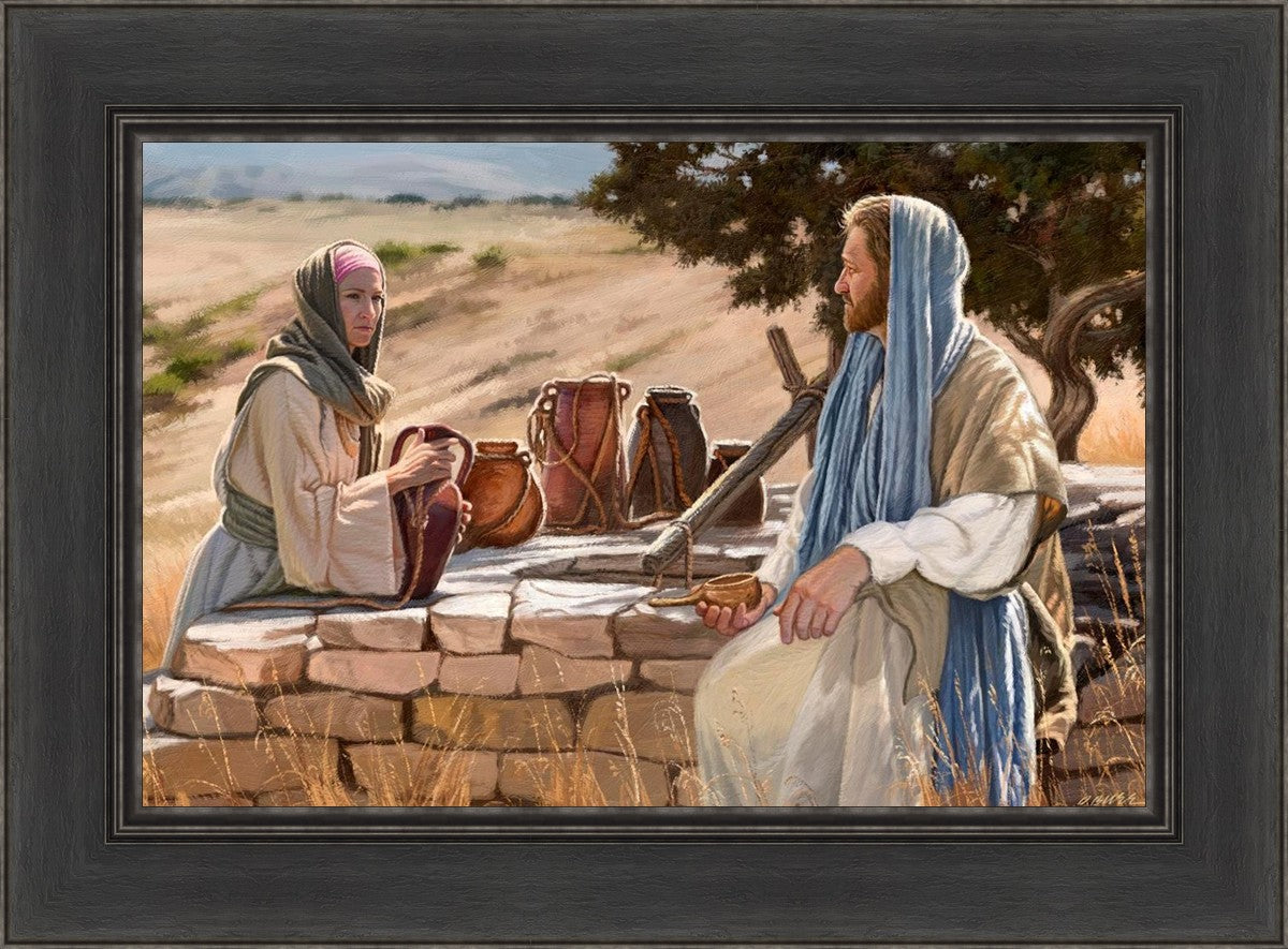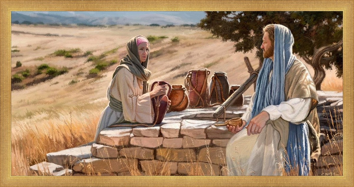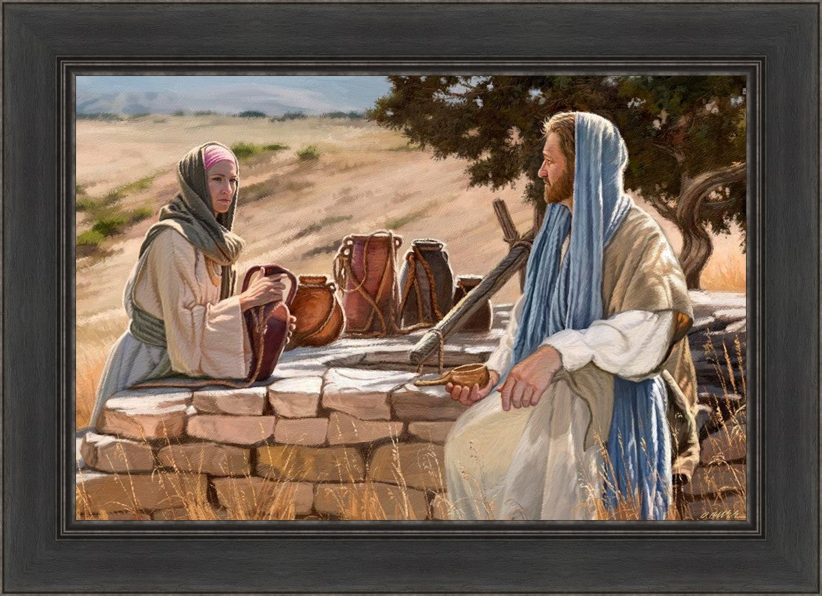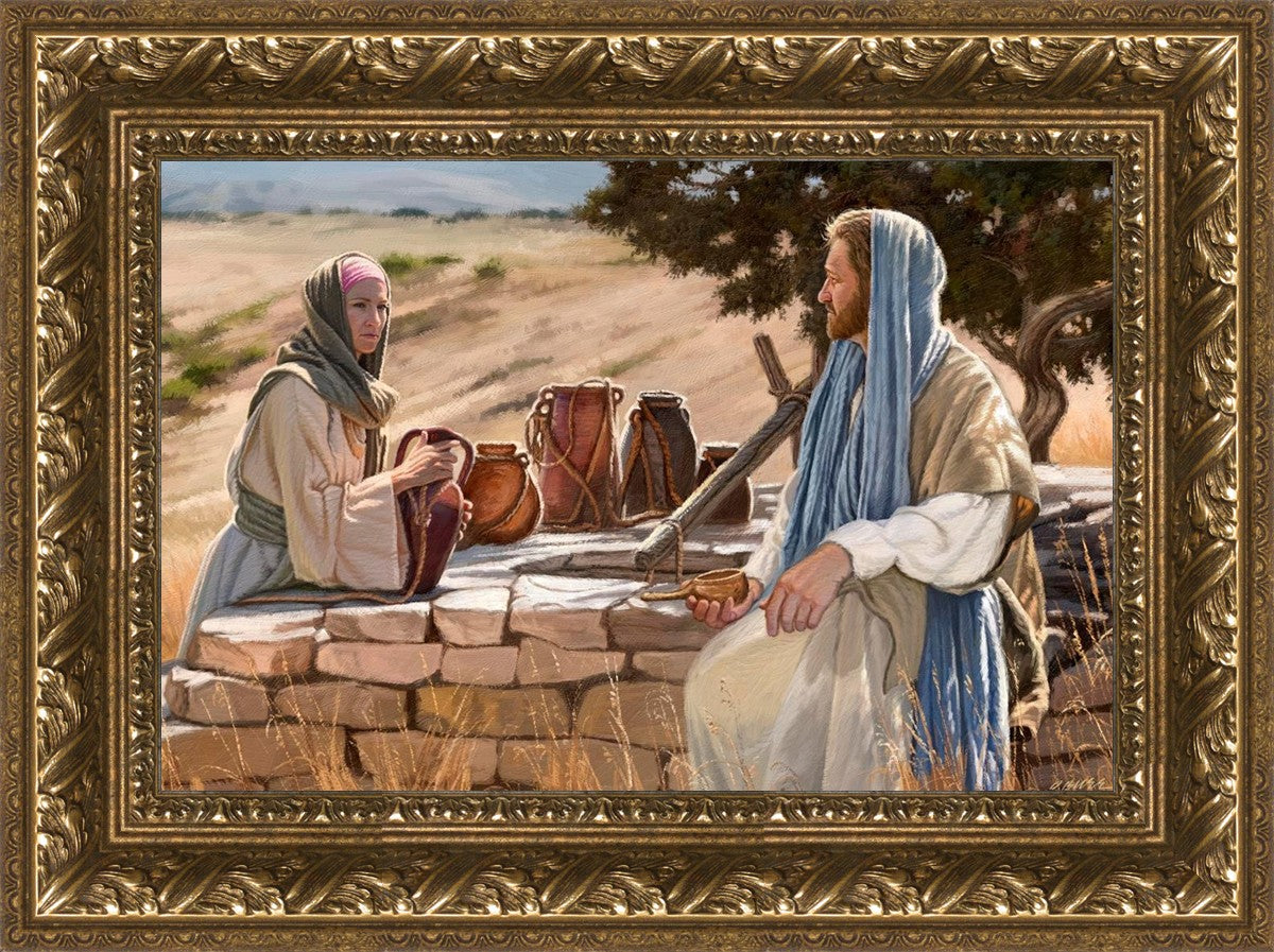Jesus talking to the Samaritan Woman at the well.