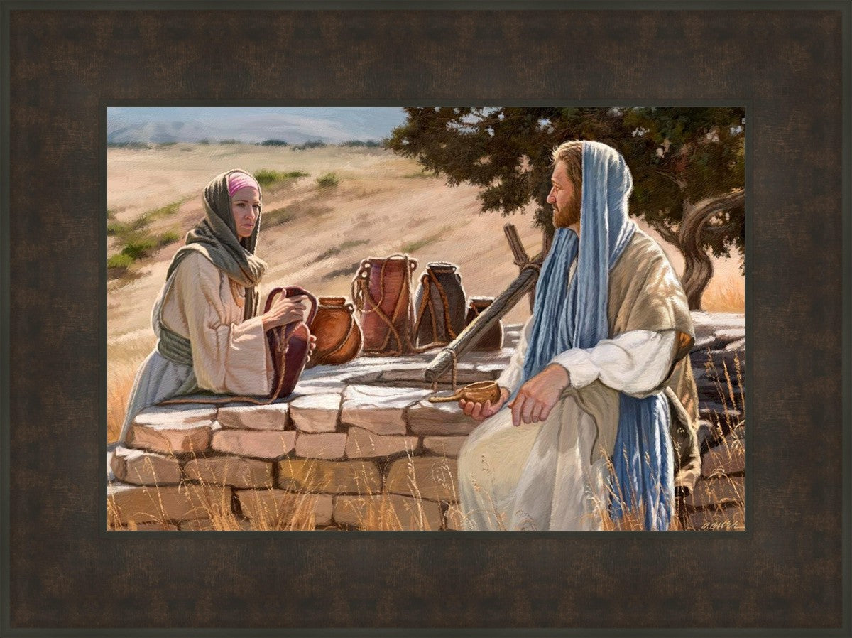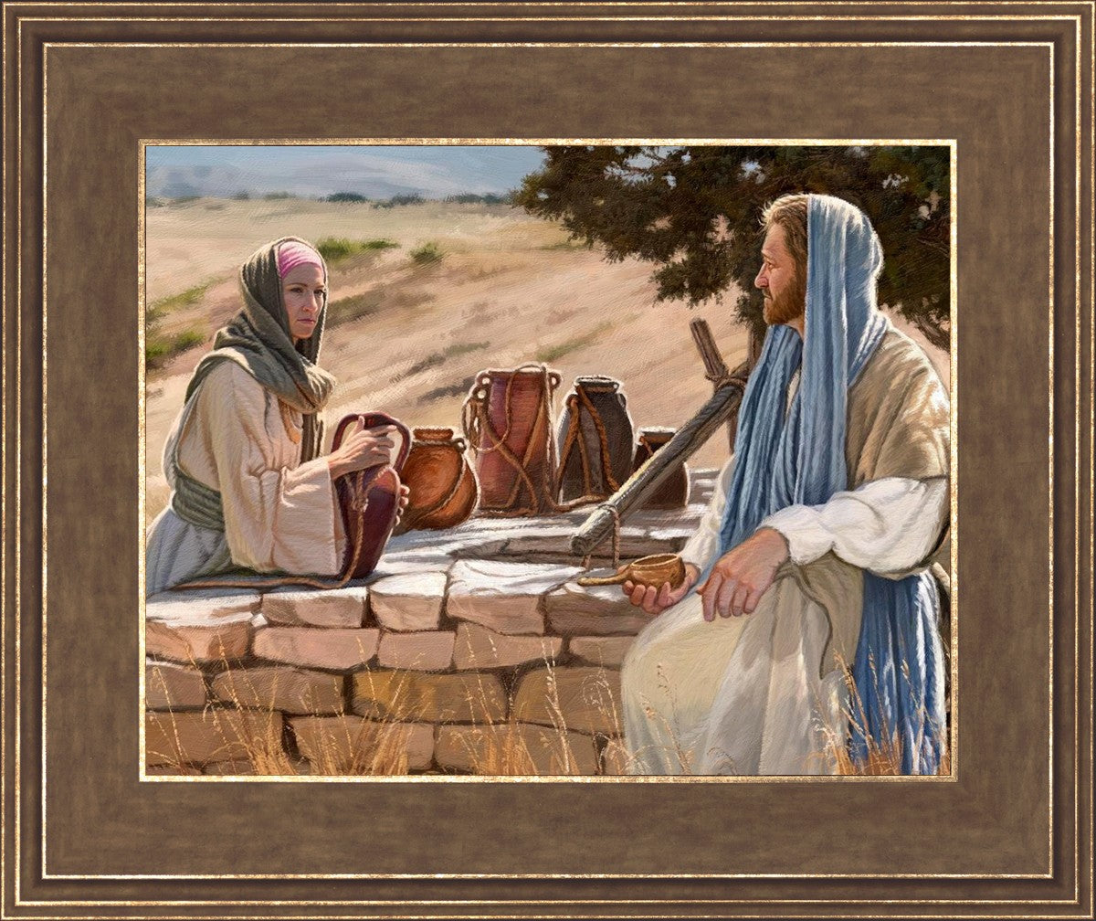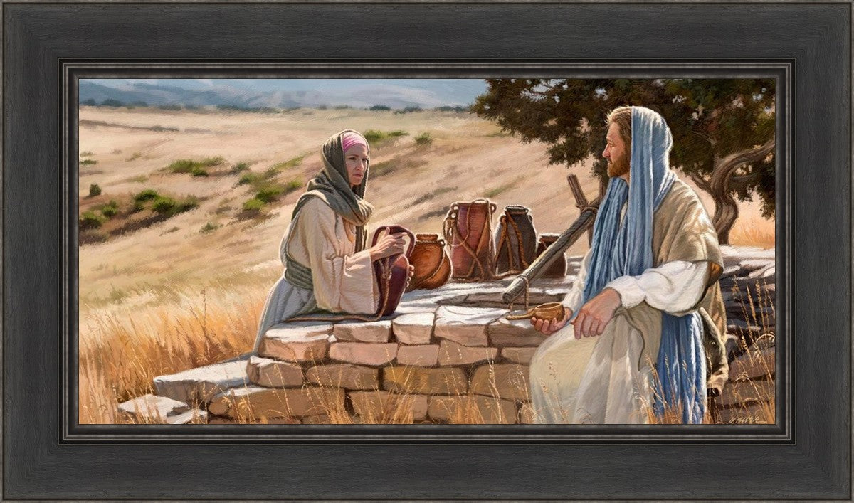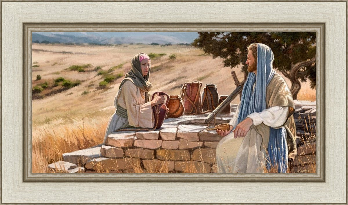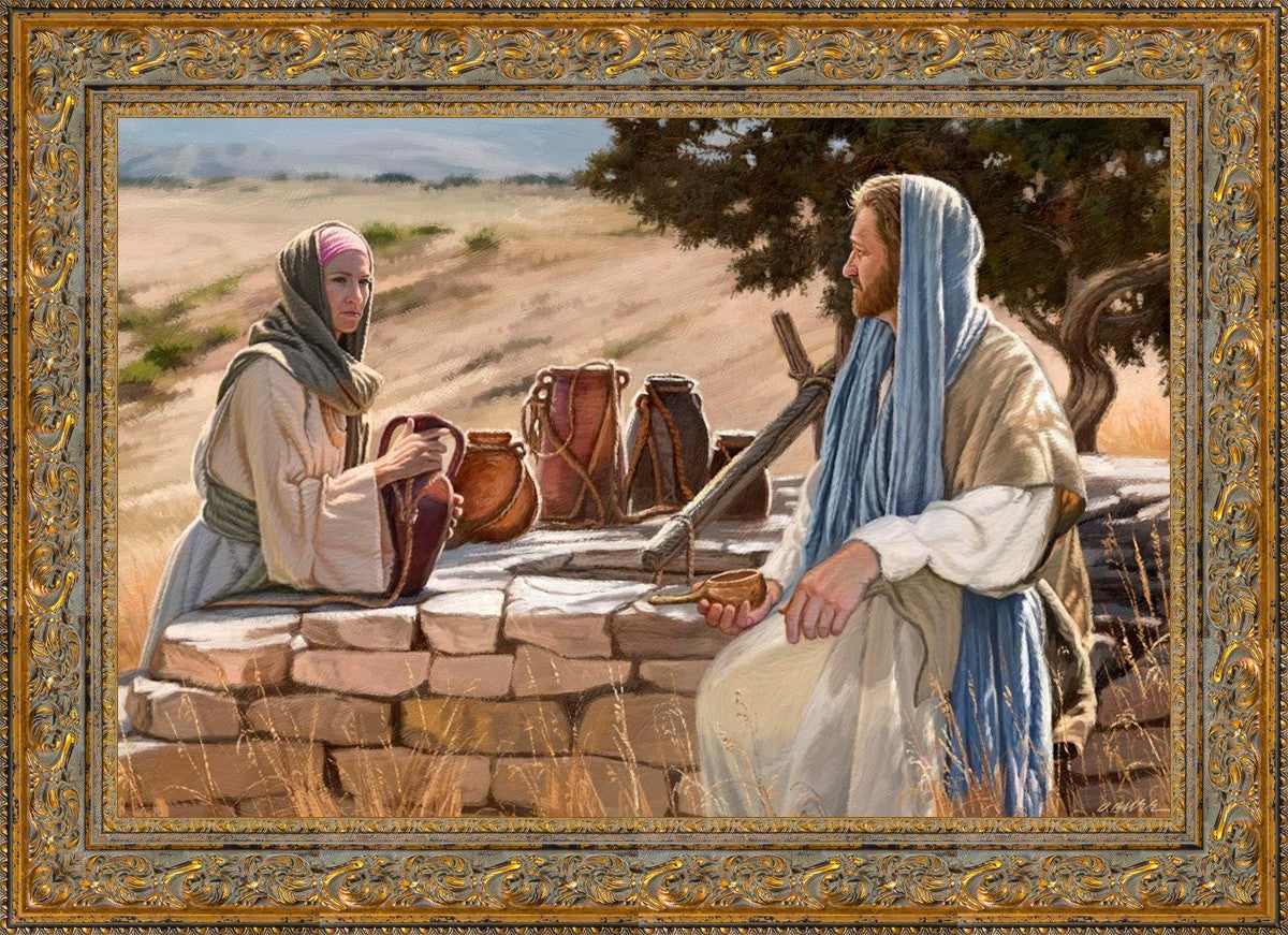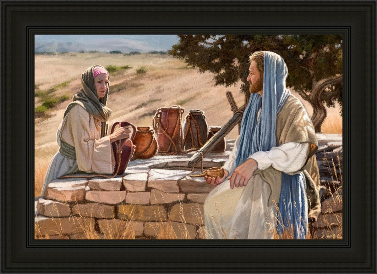 Jesus talking to the Samaritan Woman at the well.