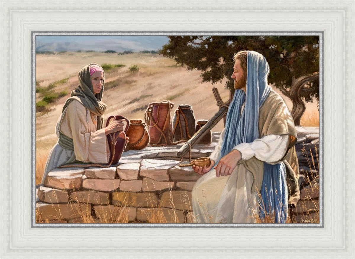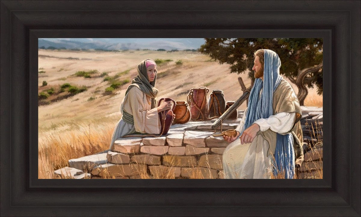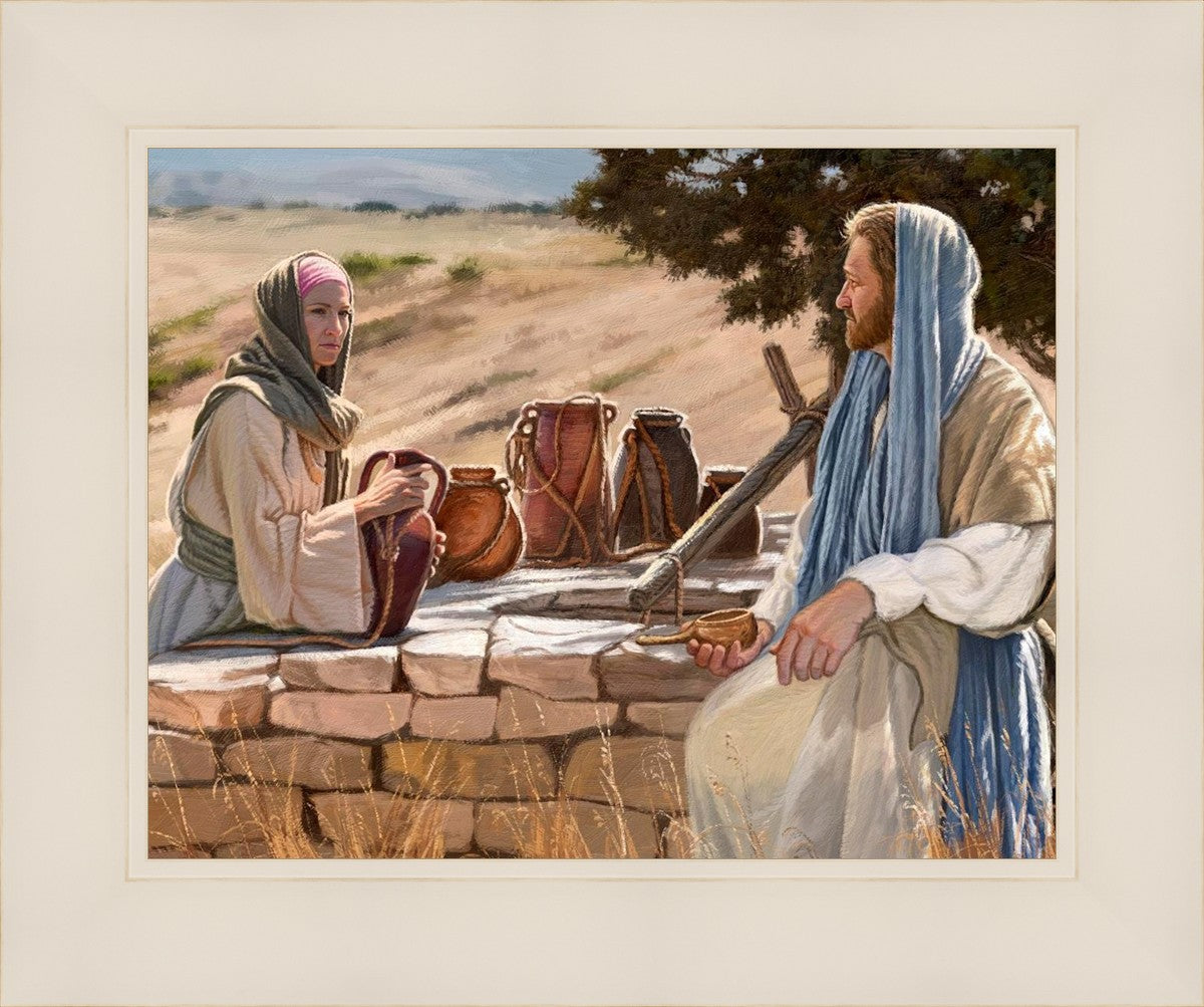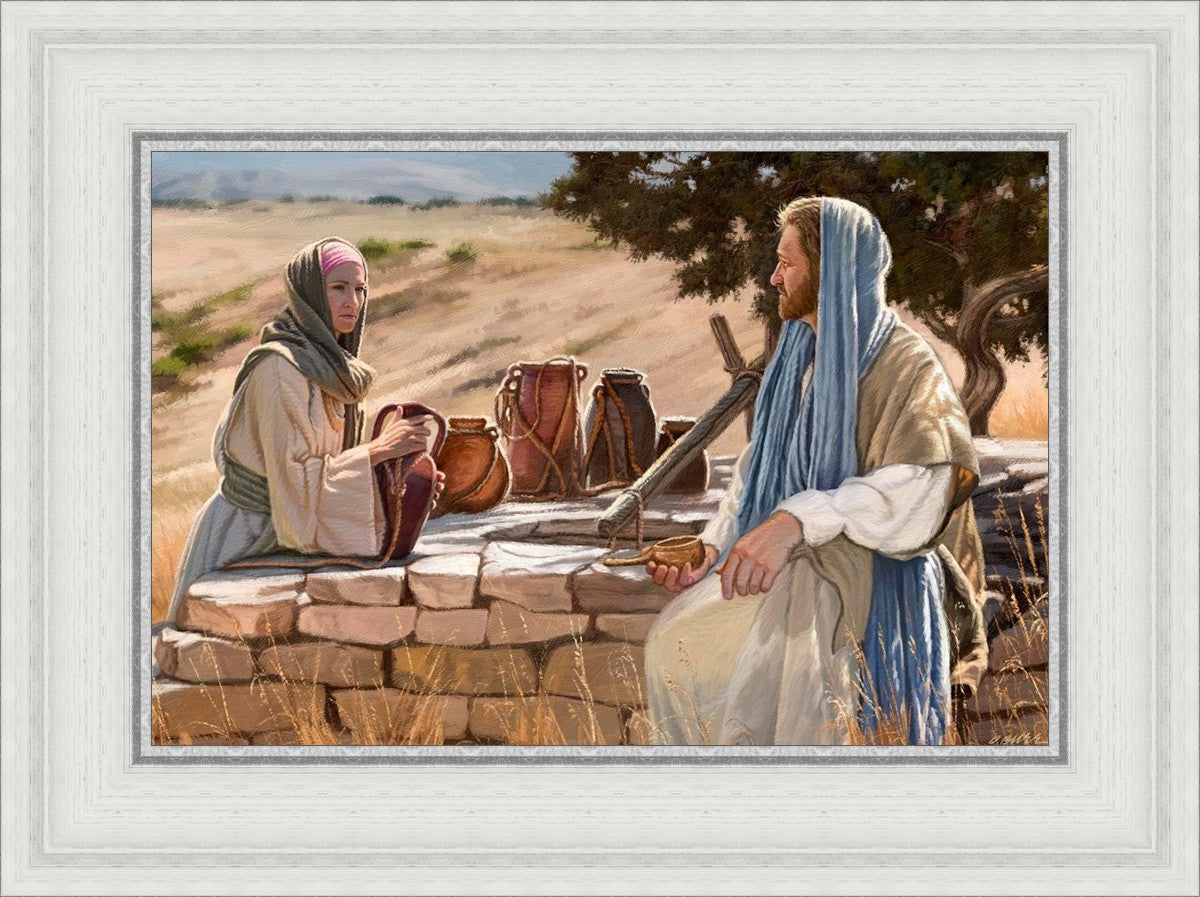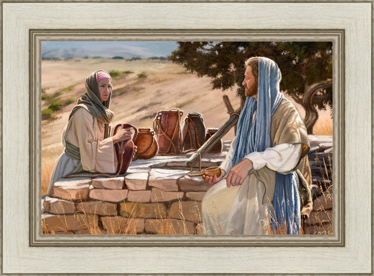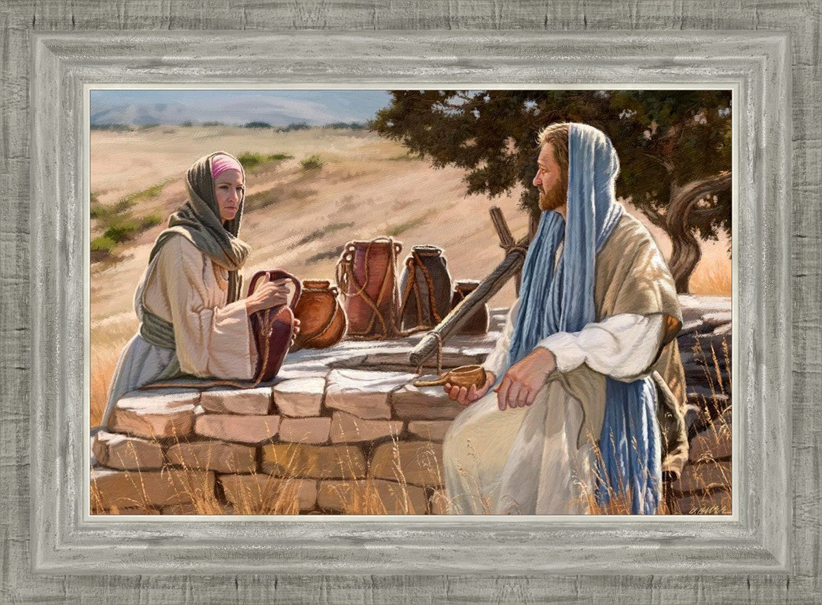 Jesus talking to the Samaritan Woman at the well.