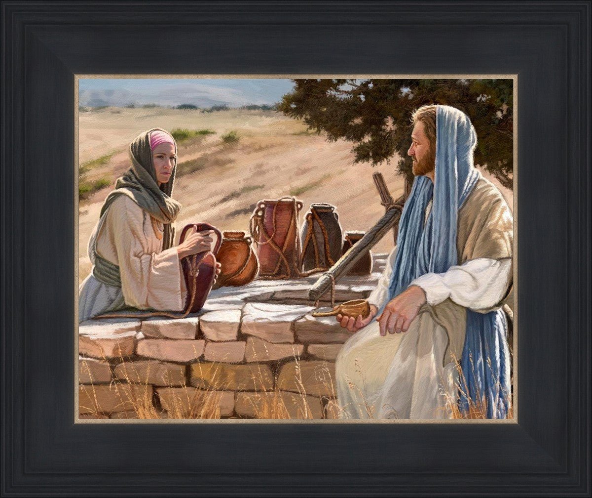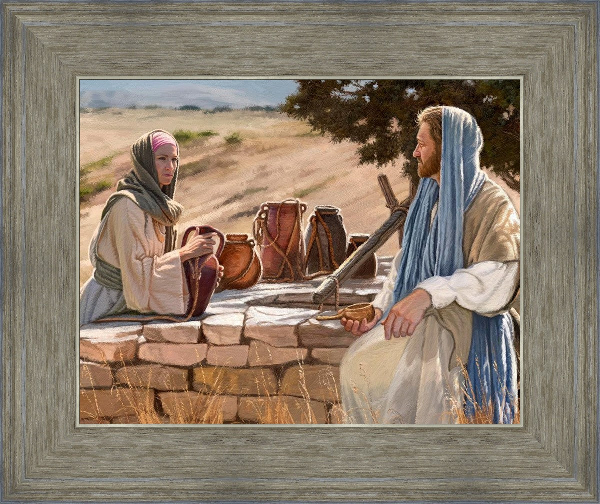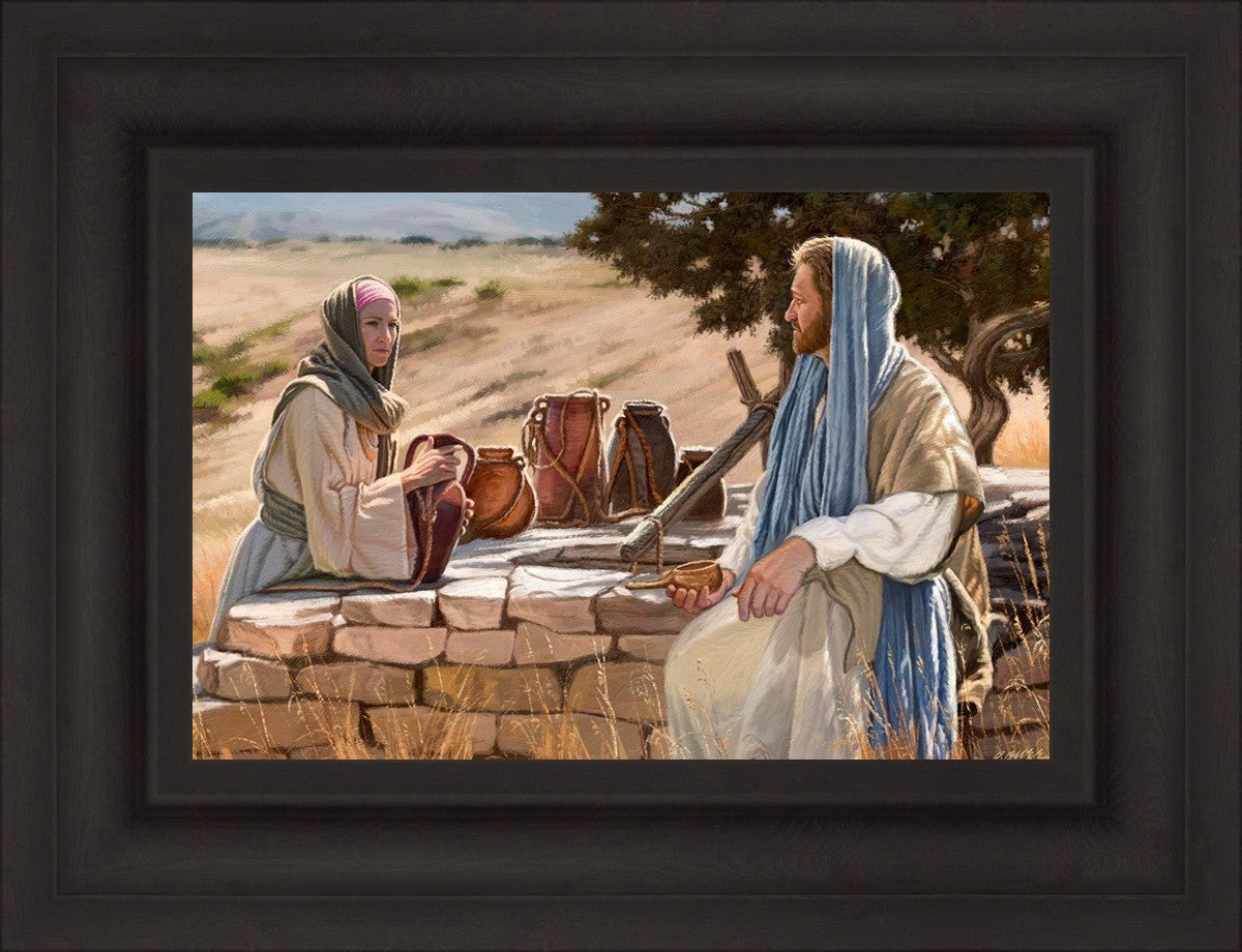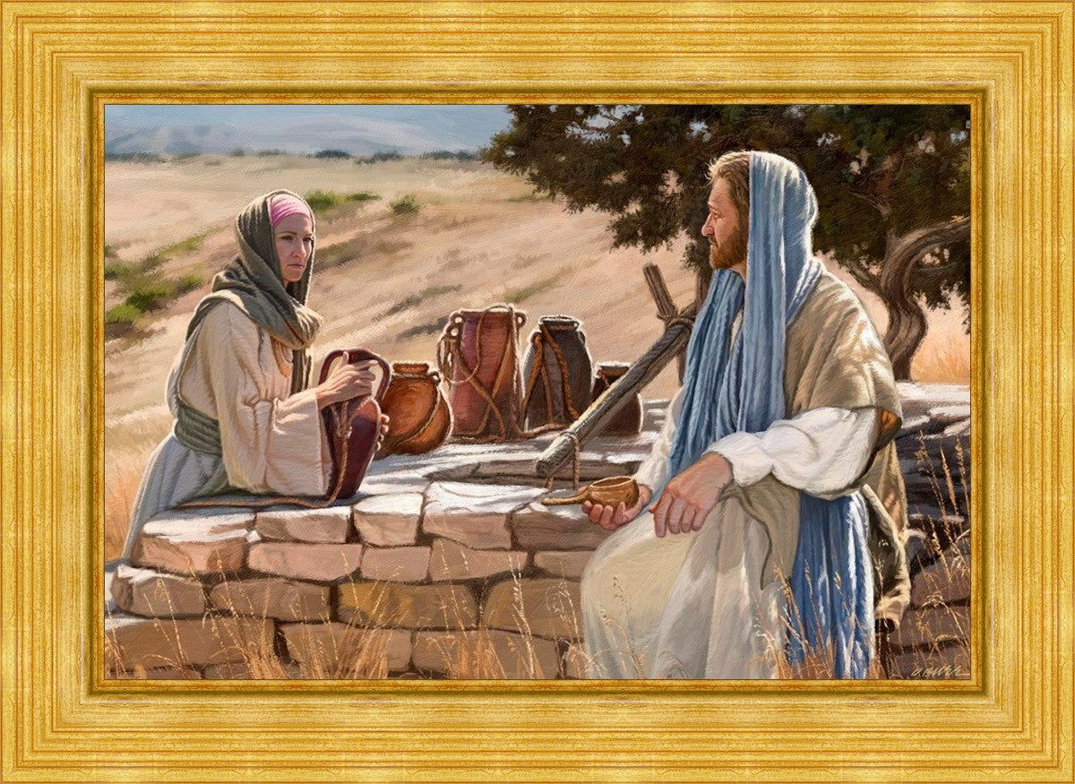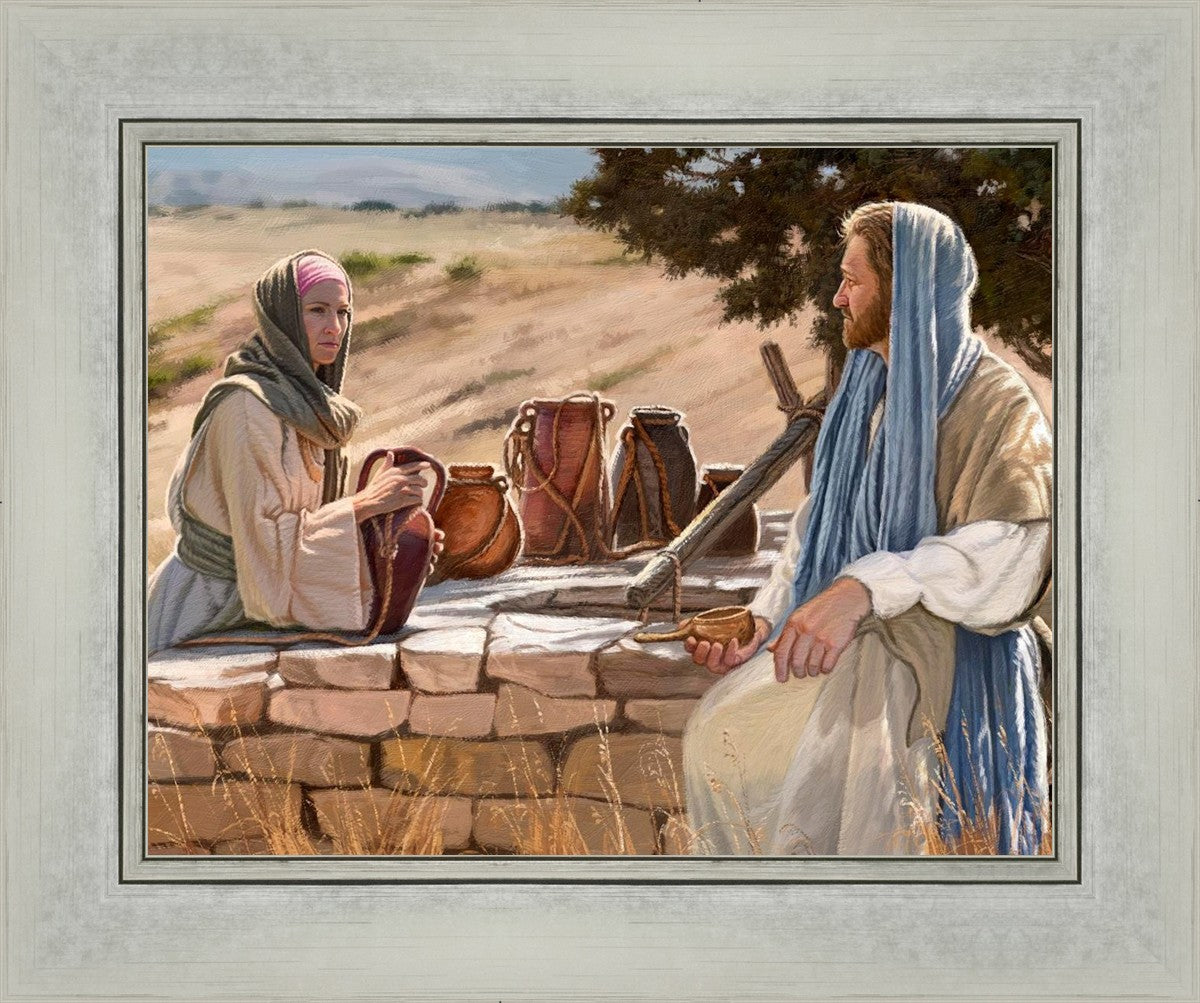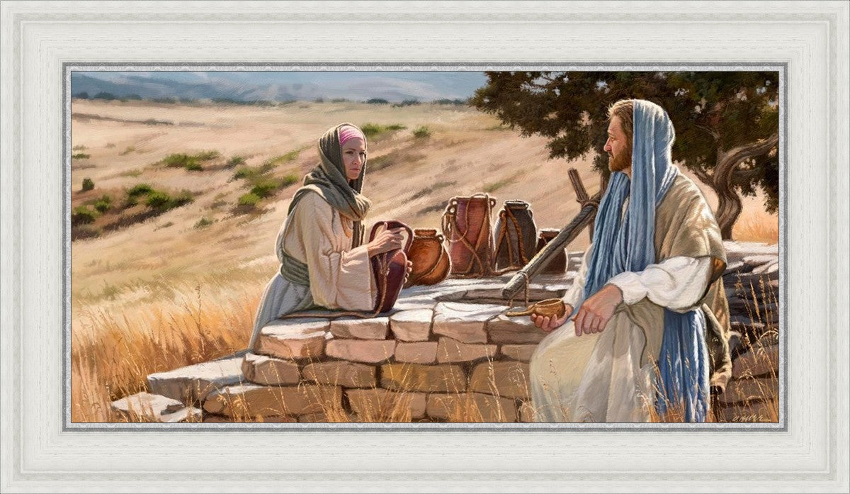 Jesus talking to the Samaritan Woman at the well.