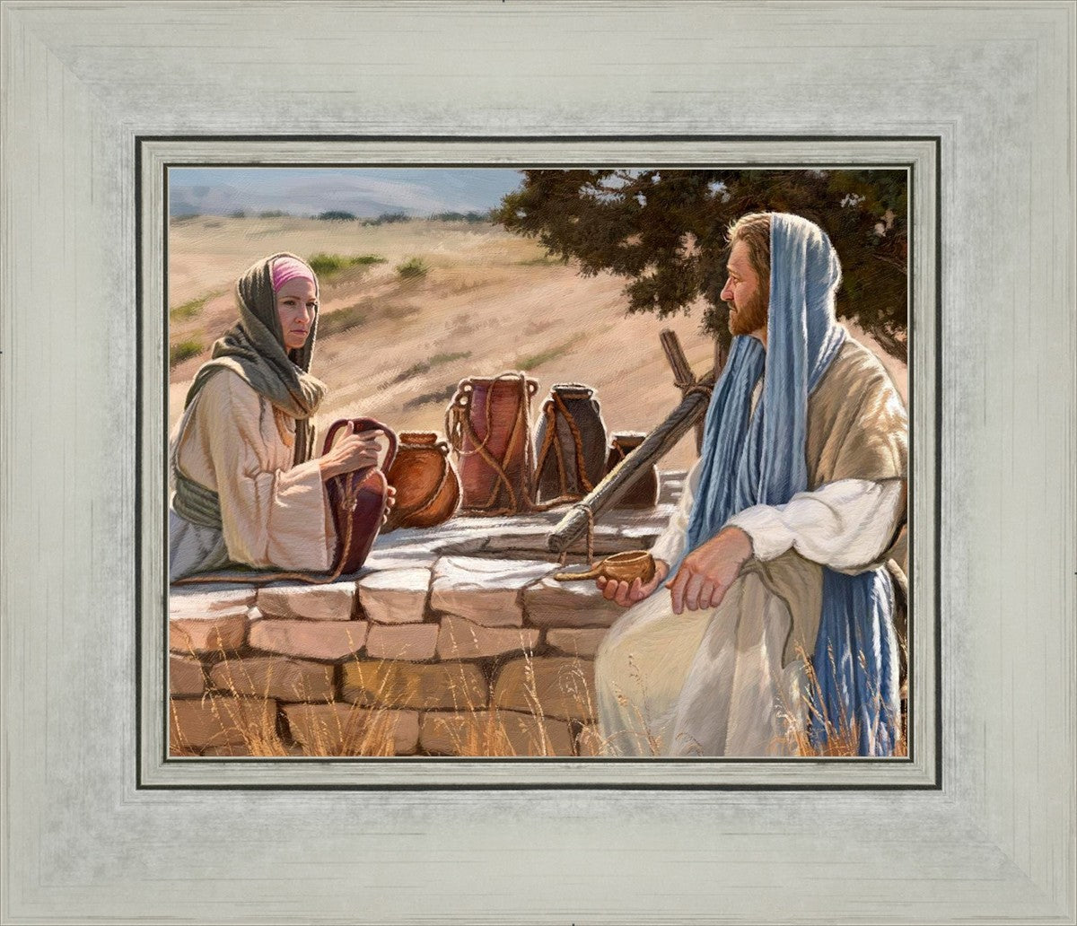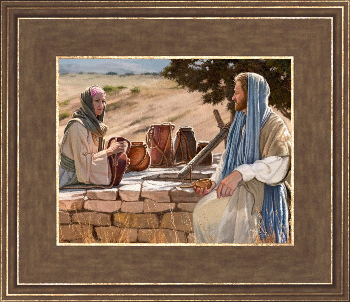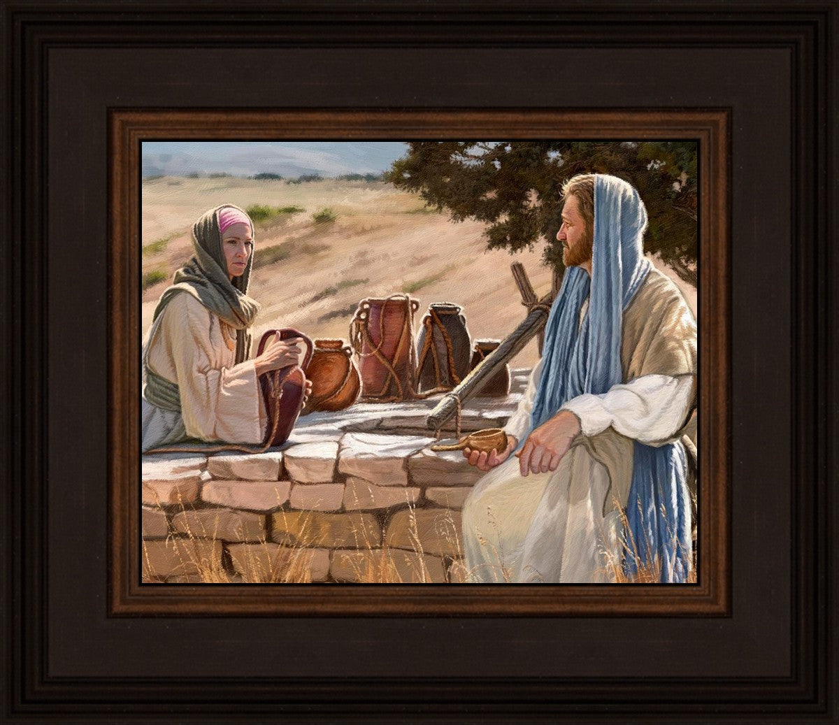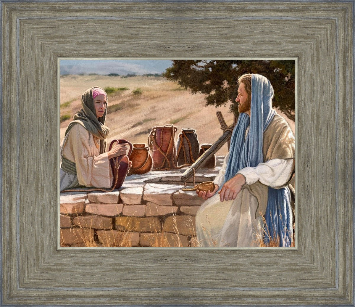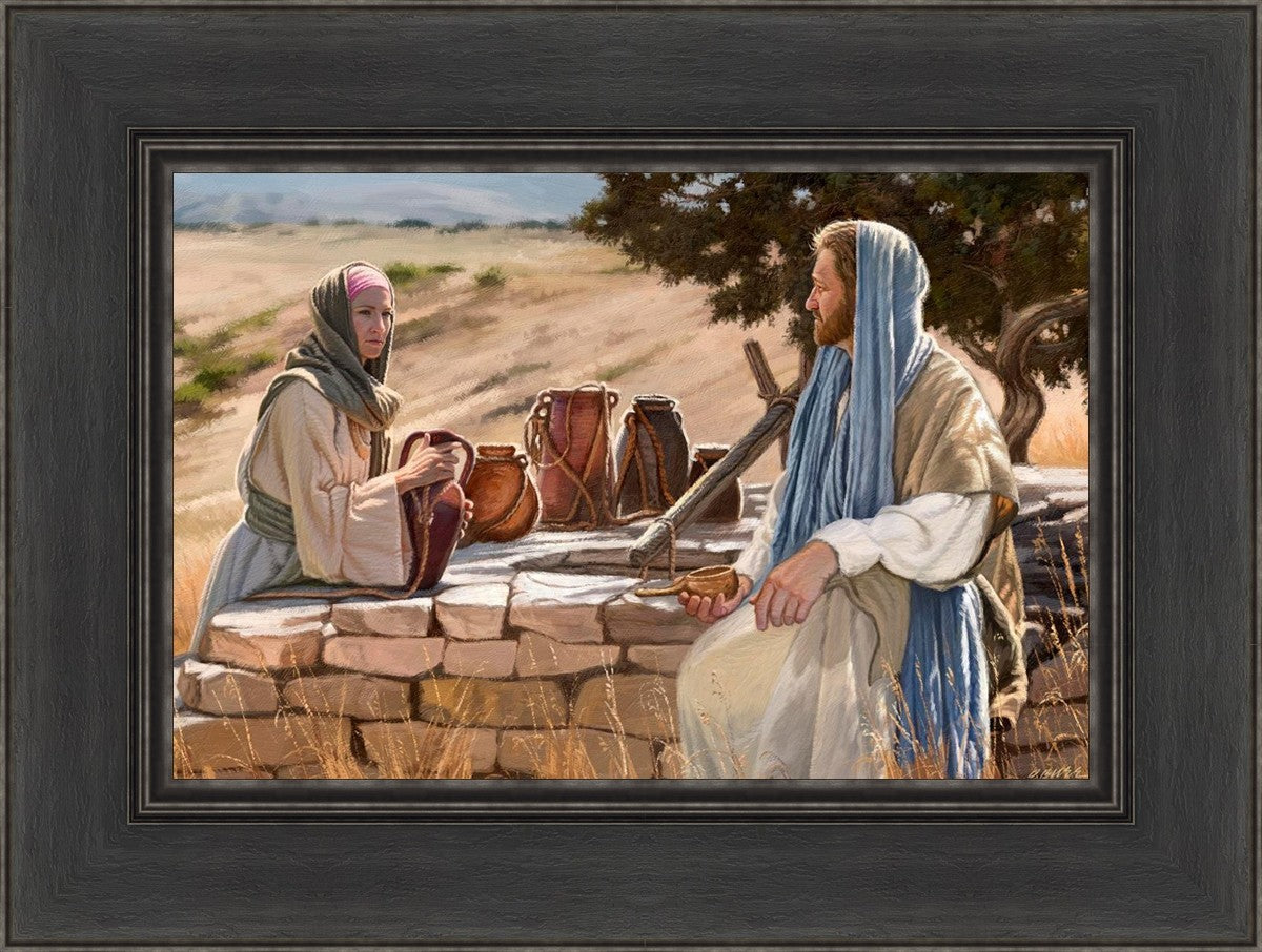 Jesus talking to the Samaritan Woman at the well.