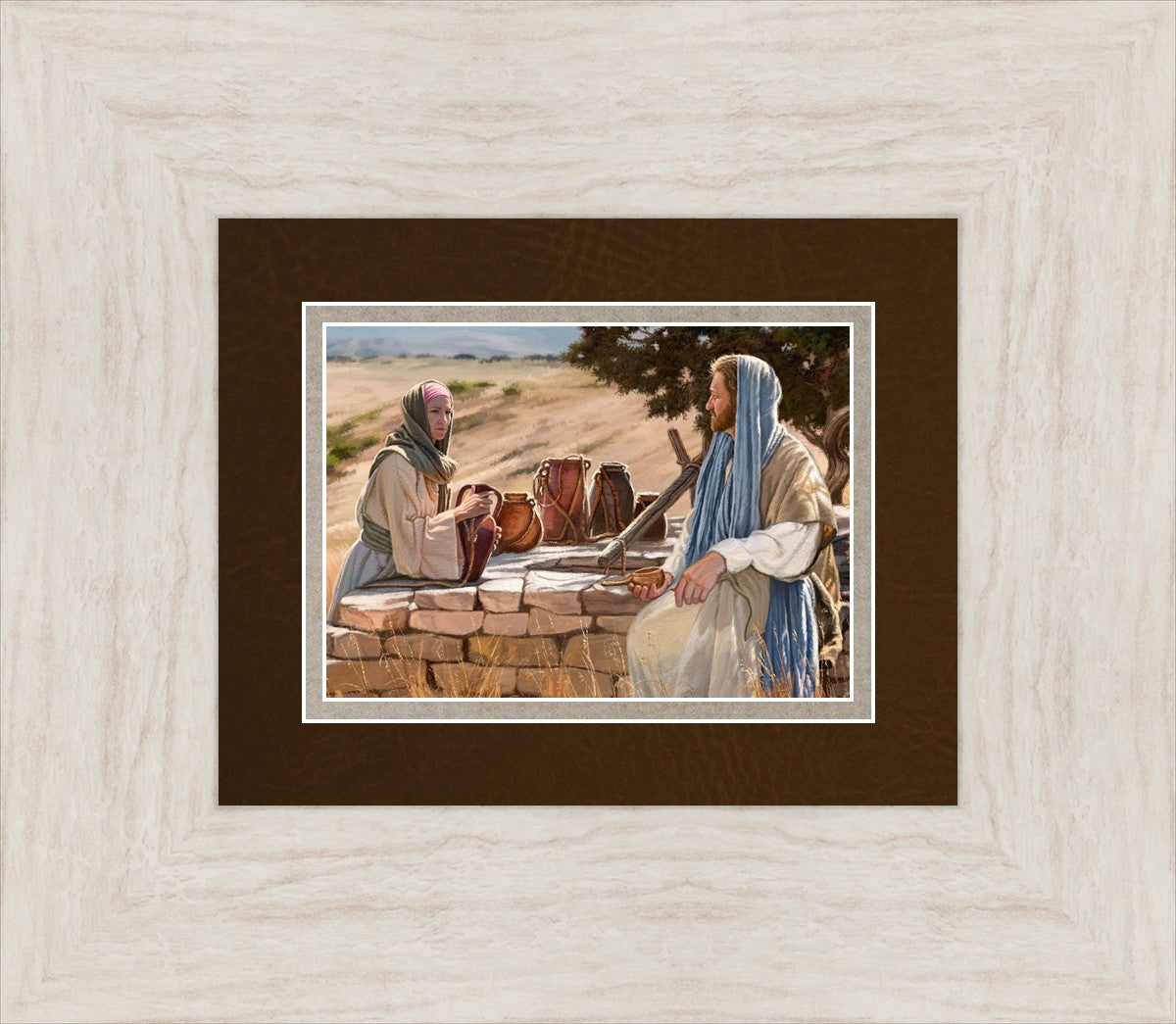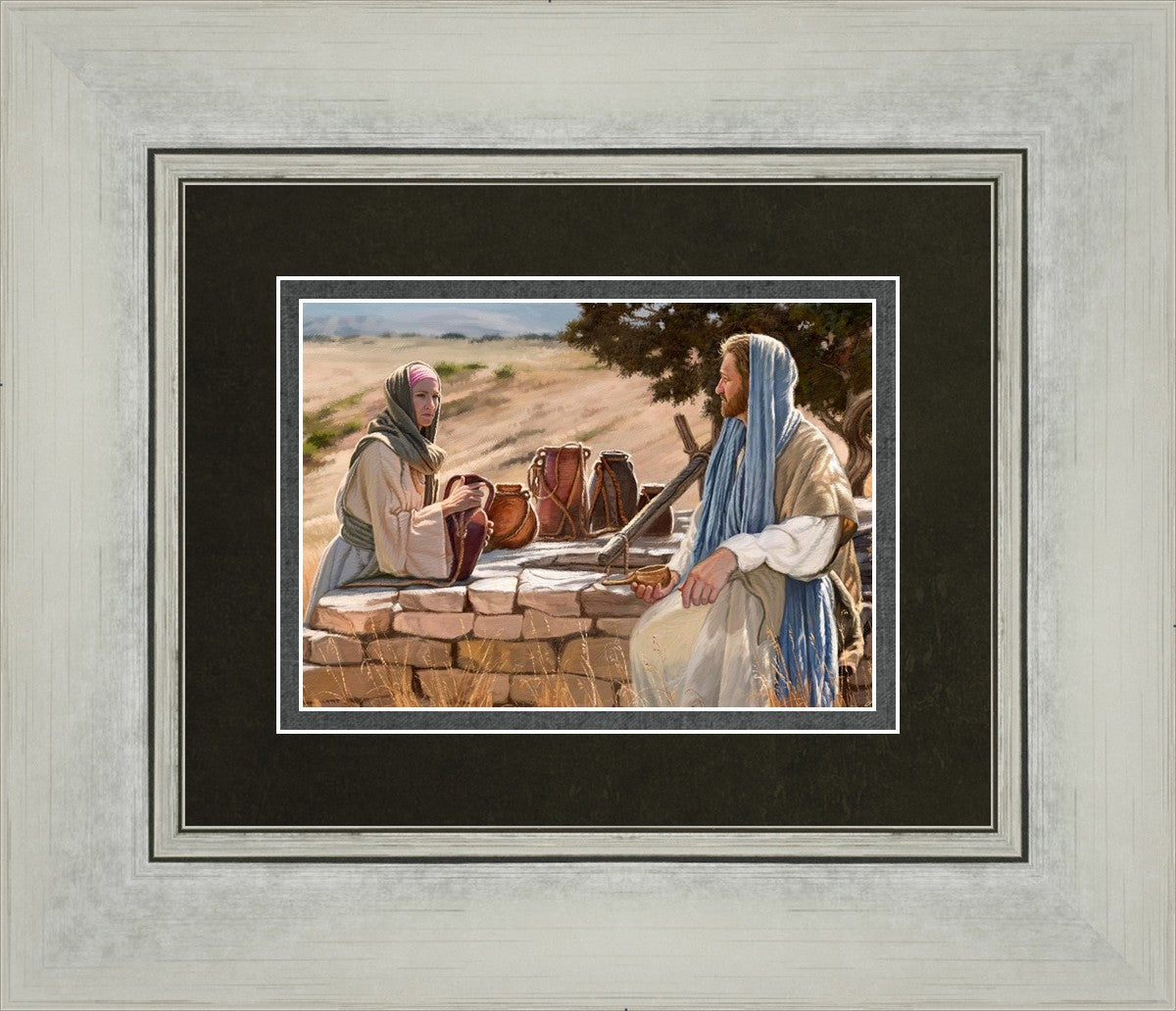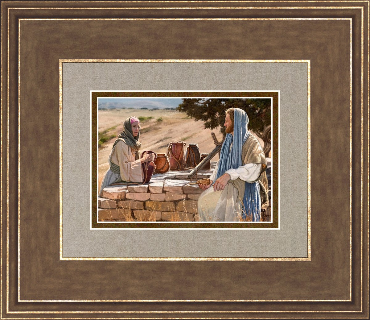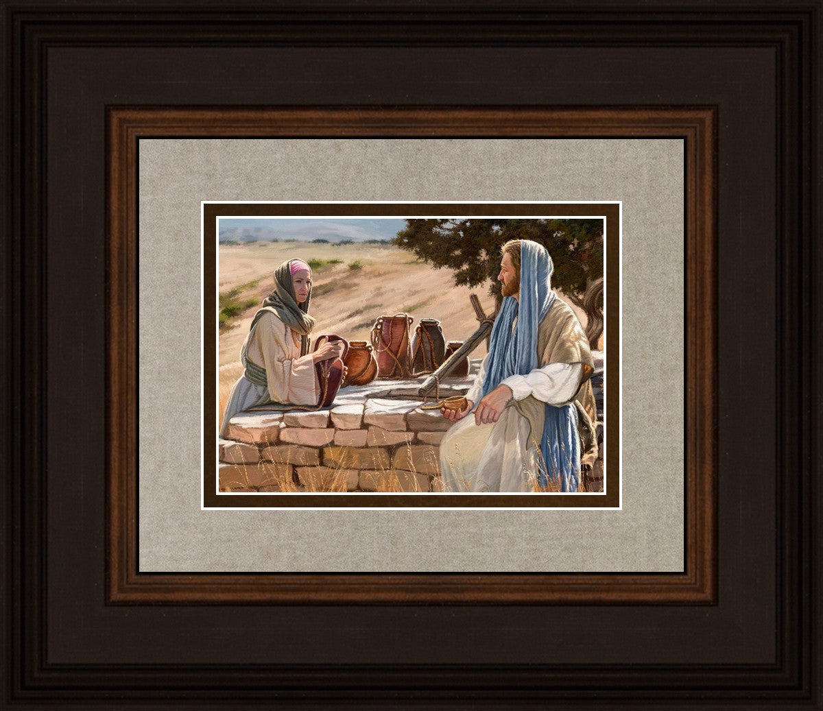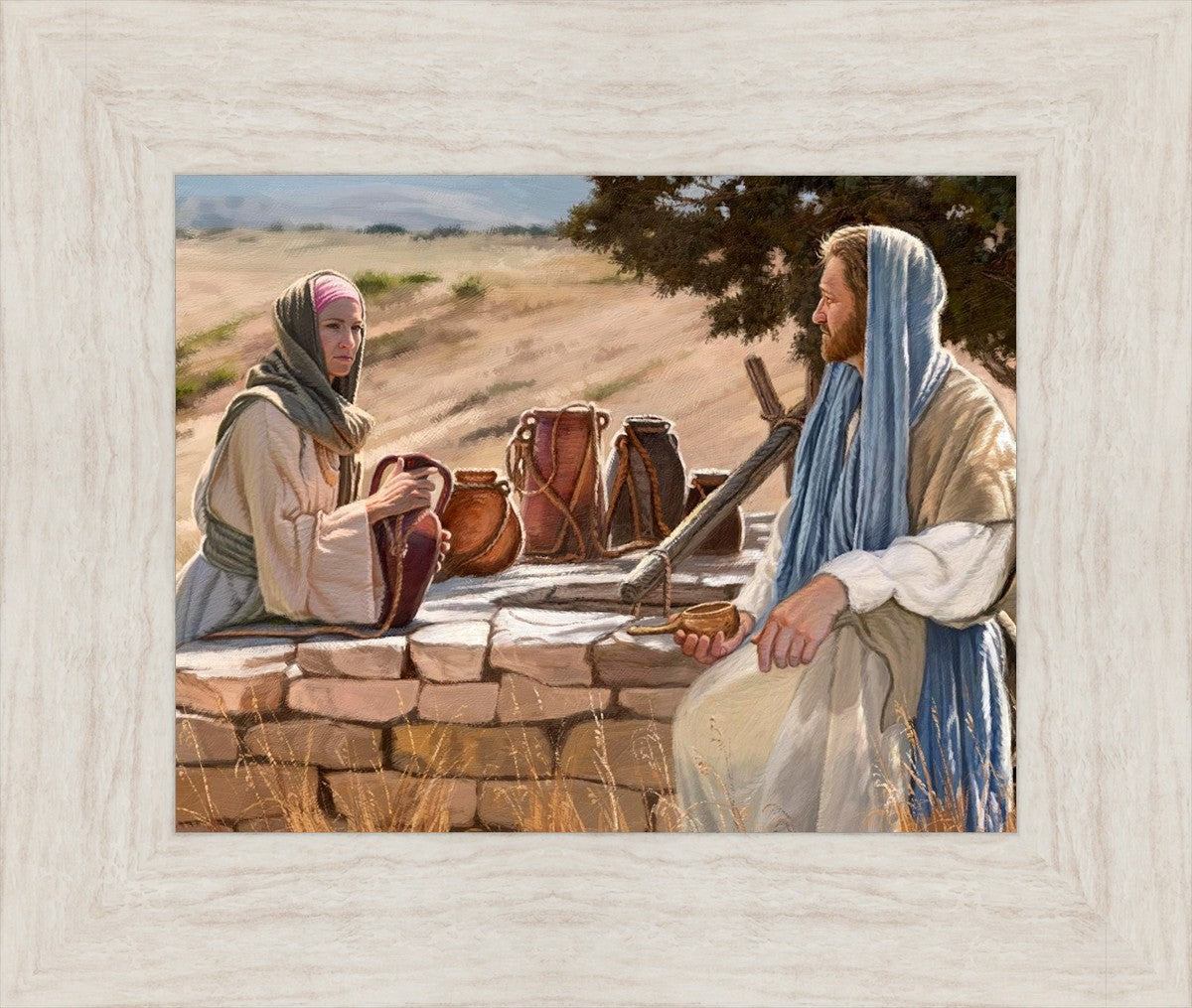 Jesus talking to the Samaritan Woman at the well.