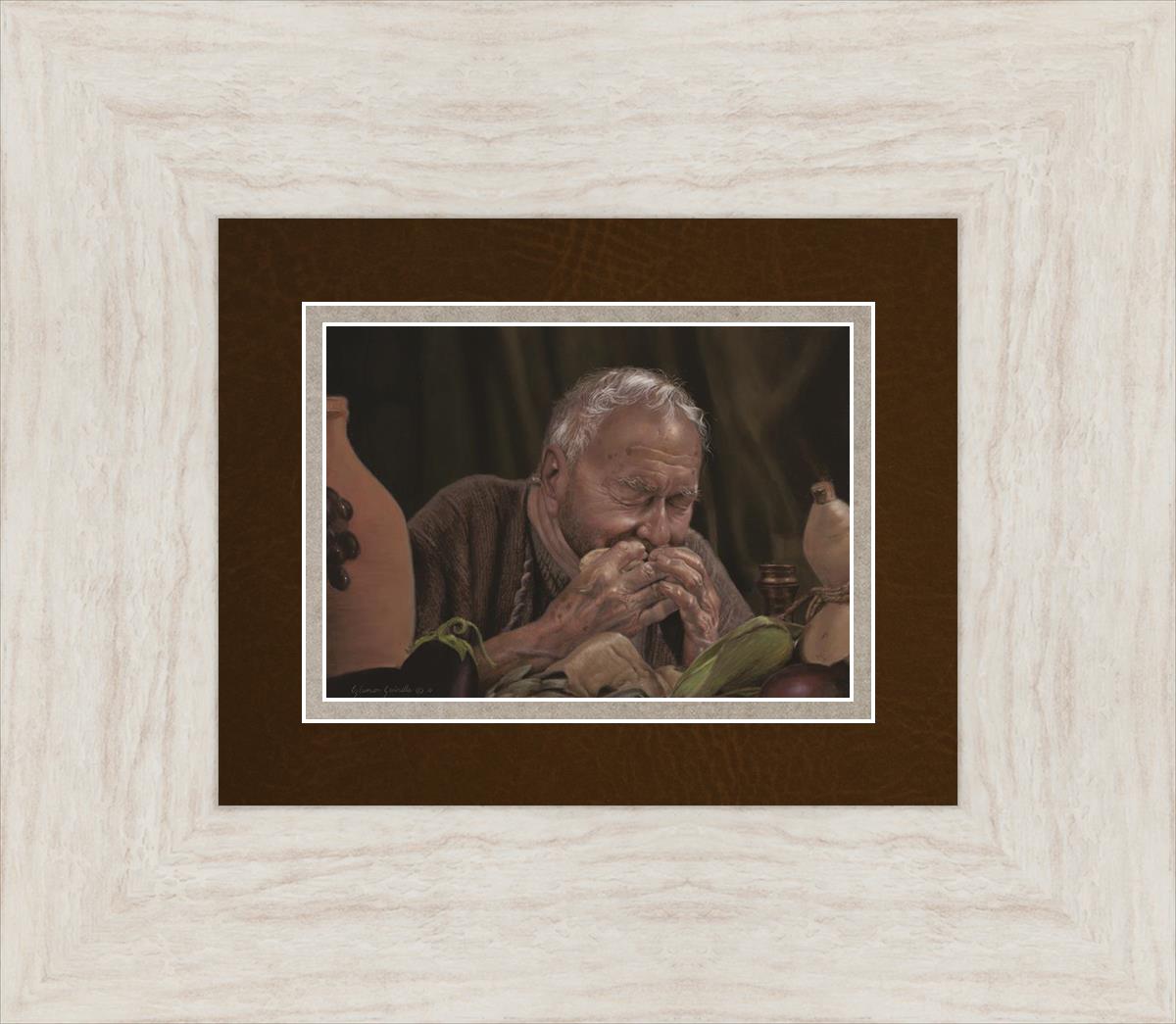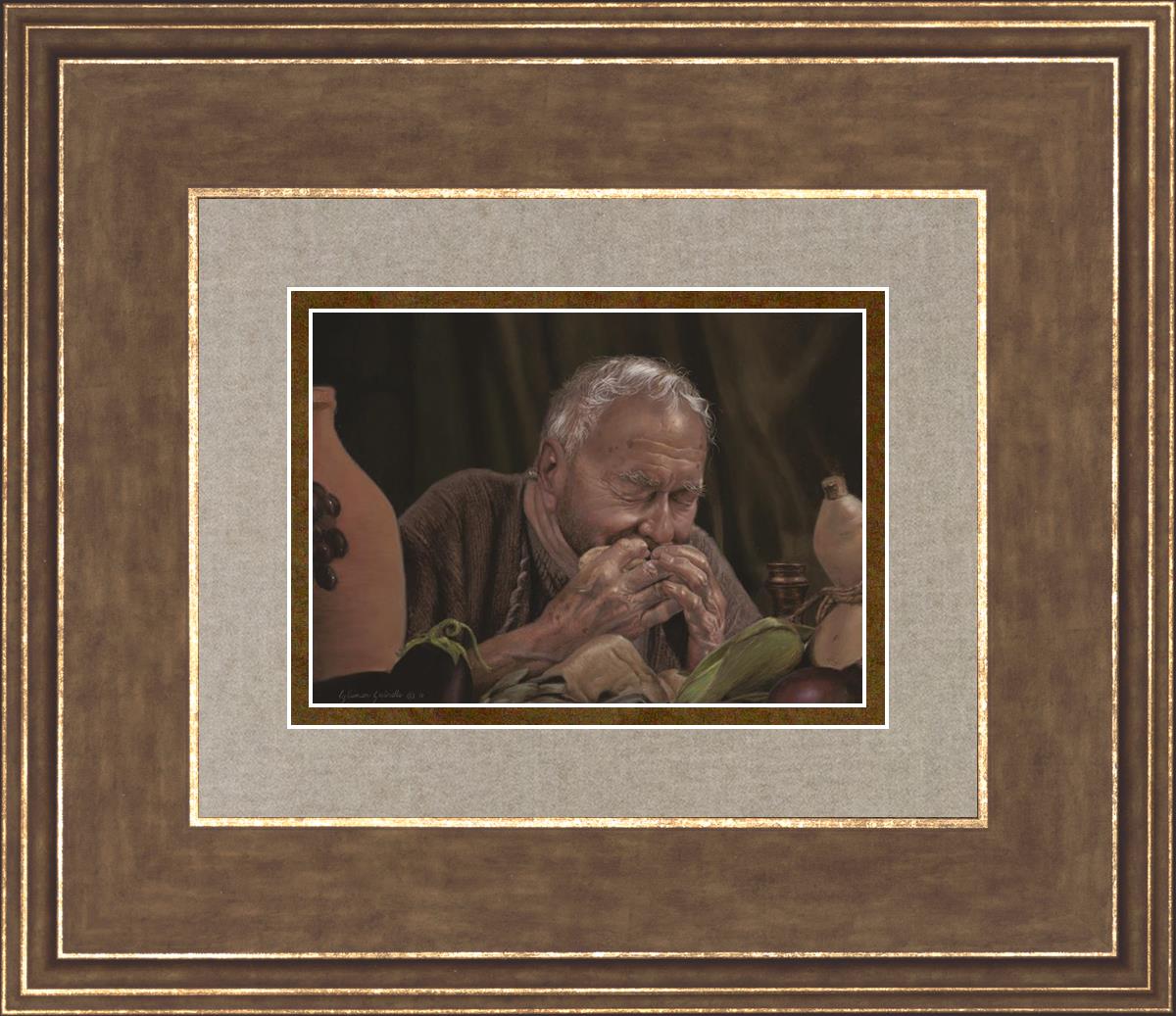 In the parable of the Great Supper, a wealthy man makes a feast and sends invitations to his friends. Each turns down the invite citing financial and familial obligations to which they must attend. The master of the house, seeing that his friends will not join him, sends his servant into the streets to bring in all of the poor and homeless to share in his feast. God is the Master in the parable and He invites each of us, no matter or station, to come and sup with Him. I included a trumpet in the stem of the eggplant, symbolic that God is calling all of us and like those in the parable, we each must choose whether we will let daily cares and obligations prevent us from coming to feast at His table.