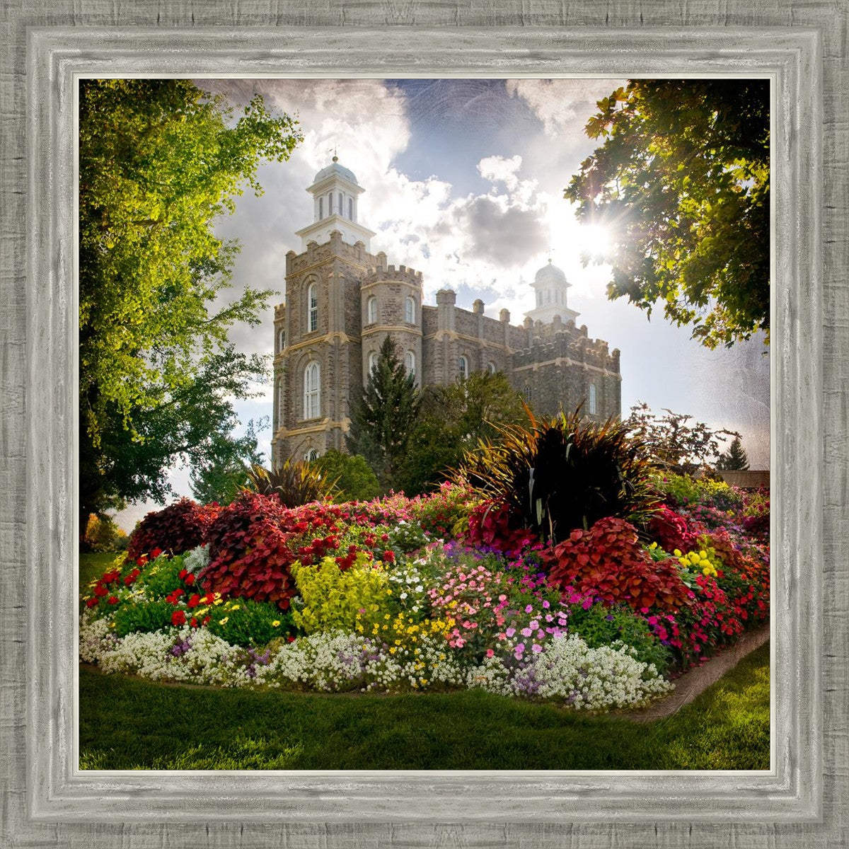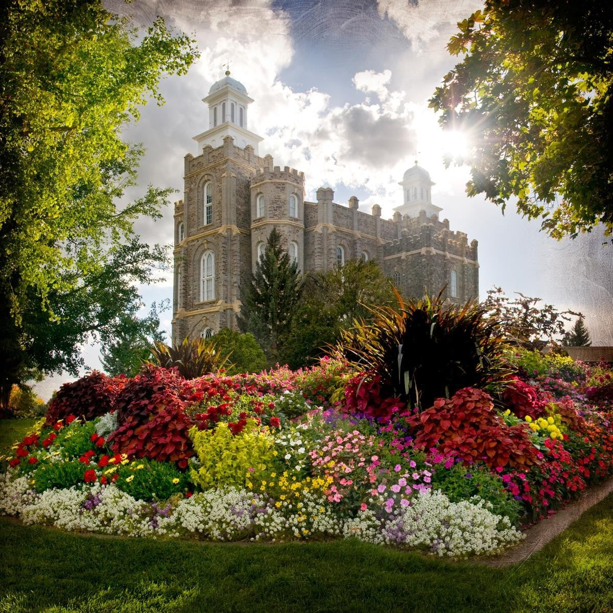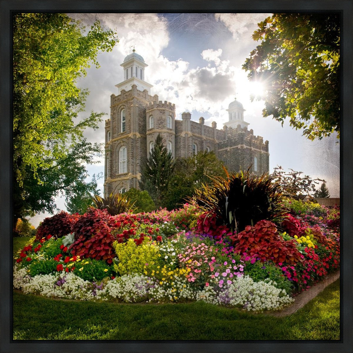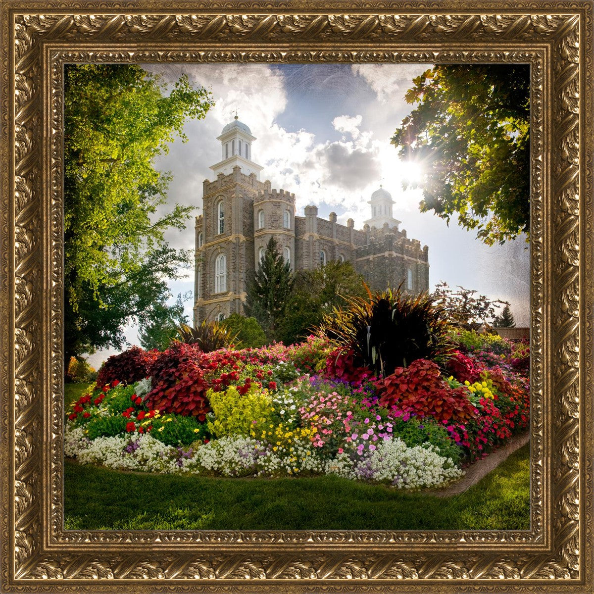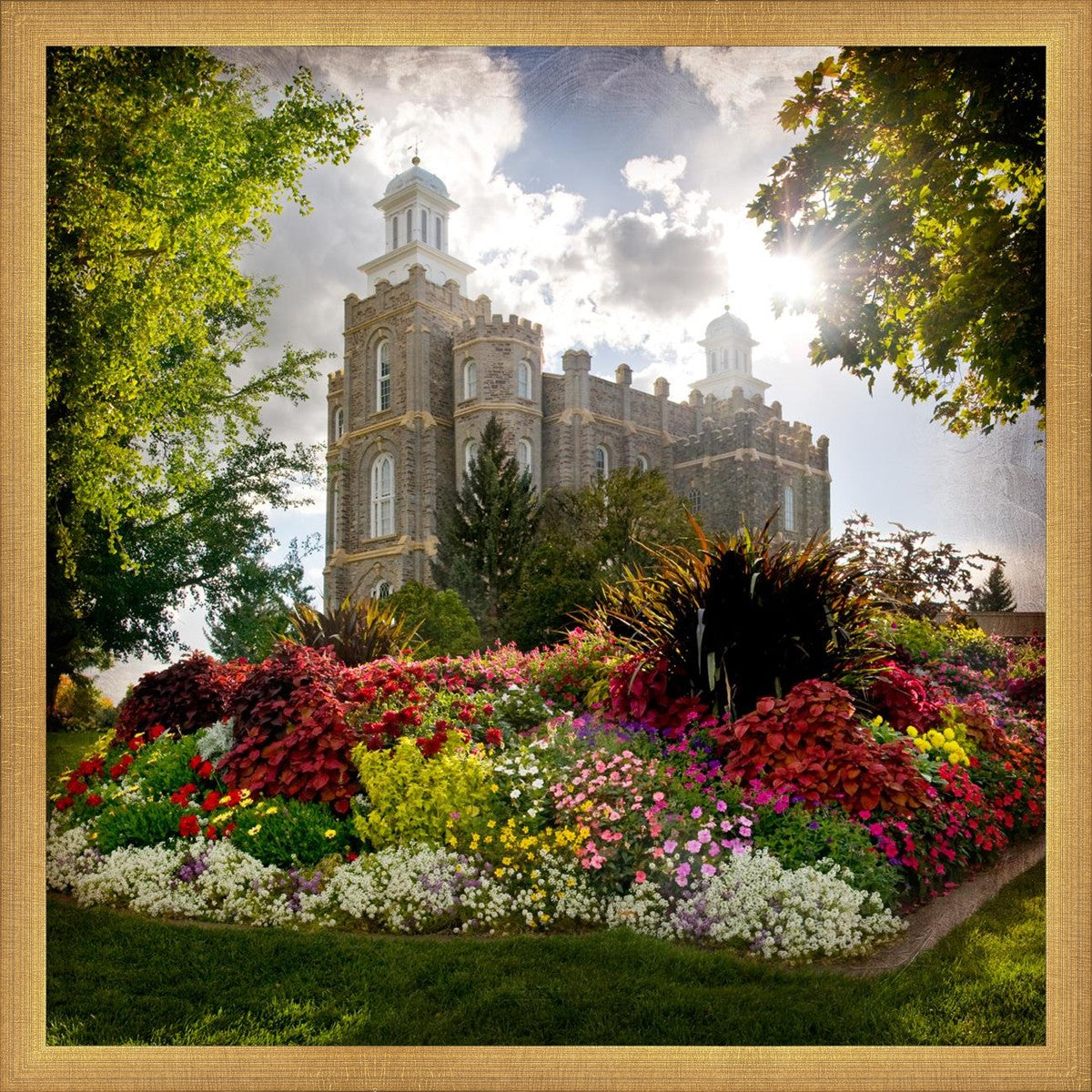 Since 1999 Landon has worked as an artisan in nearly 40 temples doing the decorative paint and gold leaf. He continues to do so as well as wood repair and graining. He was married in 2001 to Jacey Thomas in the Manti Utah temple. When she couldn’t find an image of the temple that she liked enough to purchase for their home, he decided to take one himself. That desire to create something original and different inspired his current series of temple art. They are taken from a panoramic viewpoint and stylized with an artistic border that reflect his paintings. All modern structures apart from the temple have been omitted.