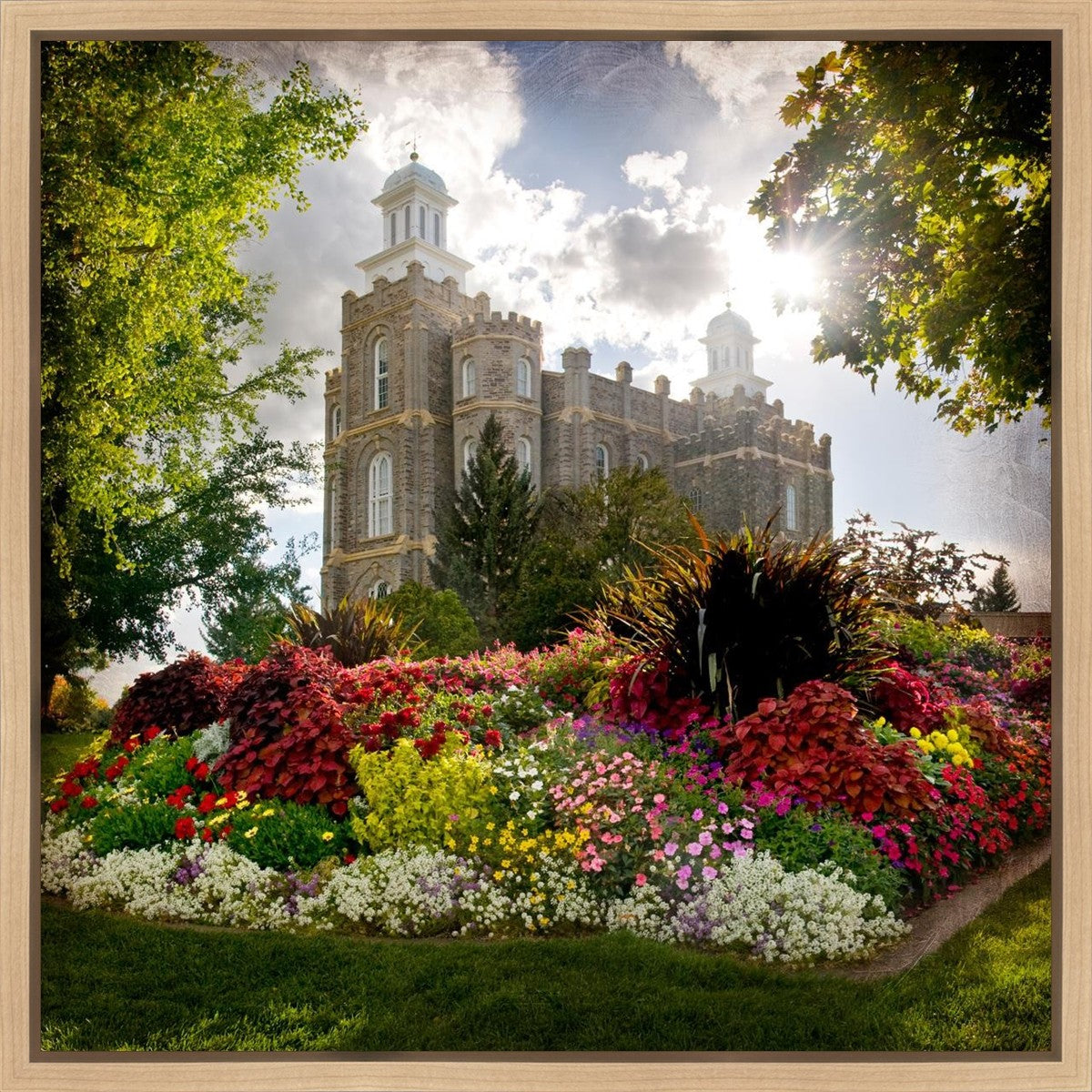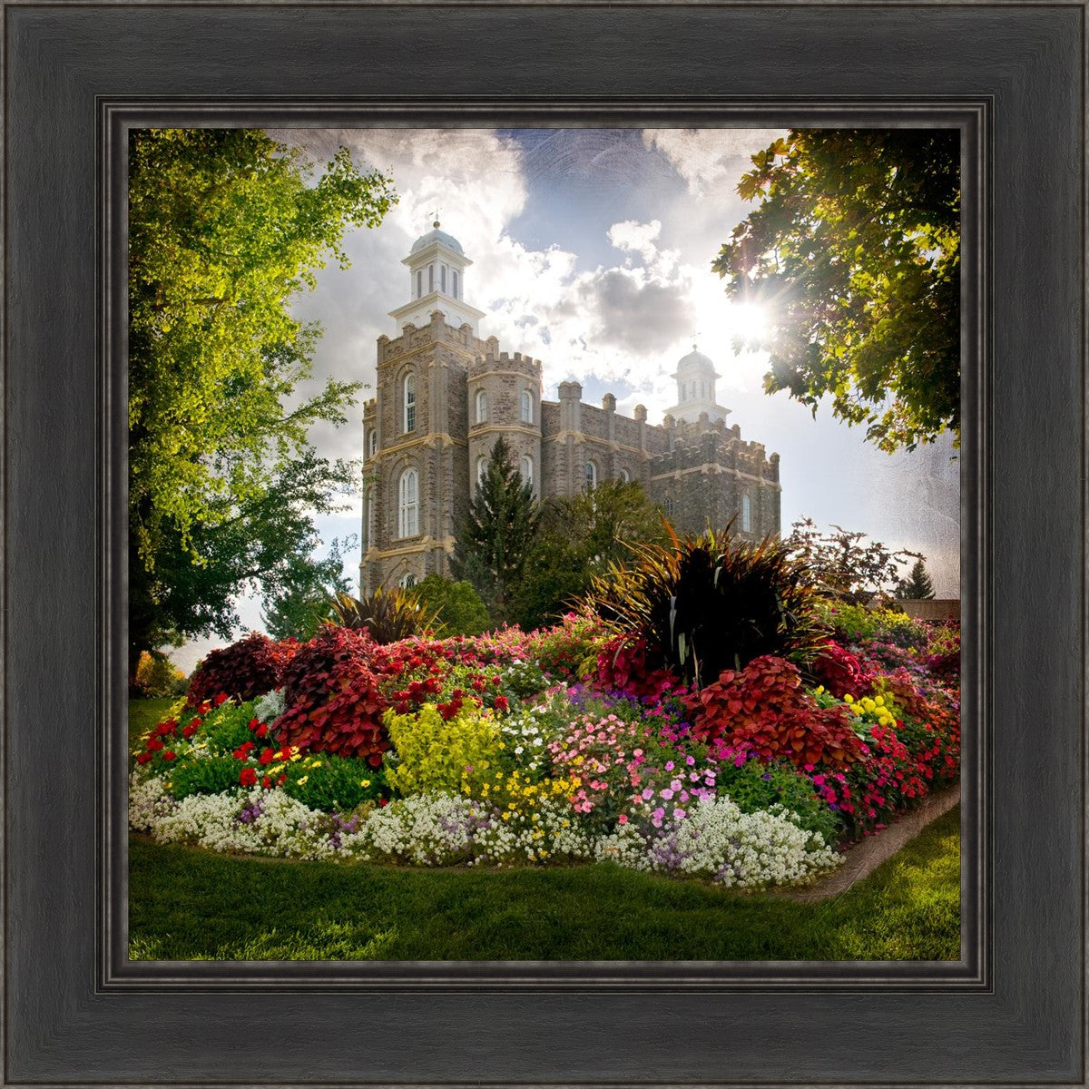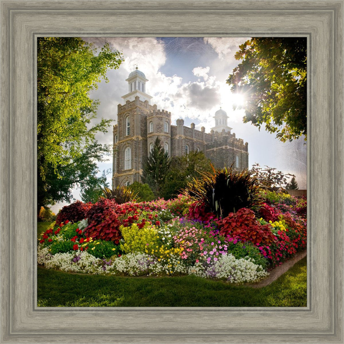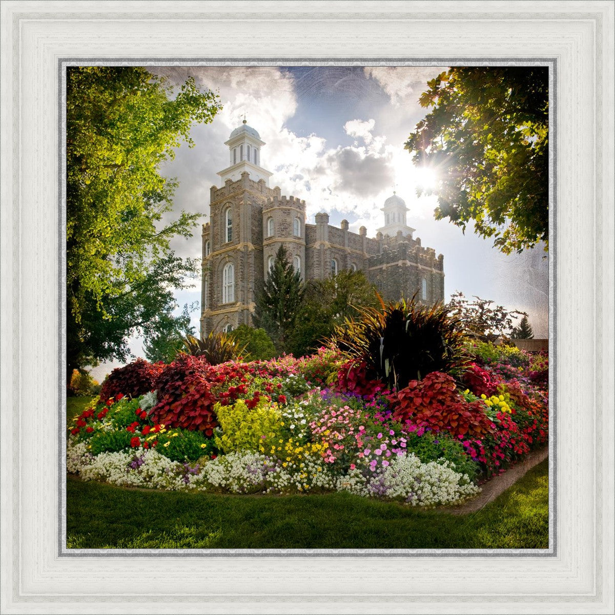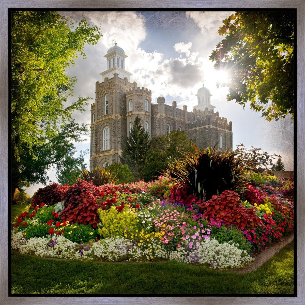 Since 1999 Landon has worked as an artisan in nearly 40 temples doing the decorative paint and gold leaf. He continues to do so as well as wood repair and graining. He was married in 2001 to Jacey Thomas in the Manti Utah temple. When she couldn’t find an image of the temple that she liked enough to purchase for their home, he decided to take one himself. That desire to create something original and different inspired his current series of temple art. They are taken from a panoramic viewpoint and stylized with an artistic border that reflect his paintings. All modern structures apart from the temple have been omitted.