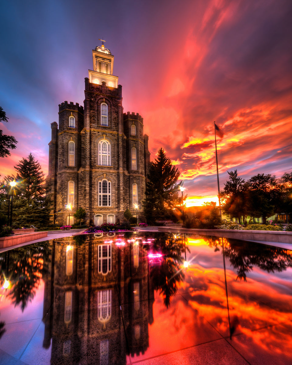 A fiery sunset with the beautiful Logan LDS Temple capturing a stunning reflection as I was on my way home one night. Happened to be in the right spot at the right time!