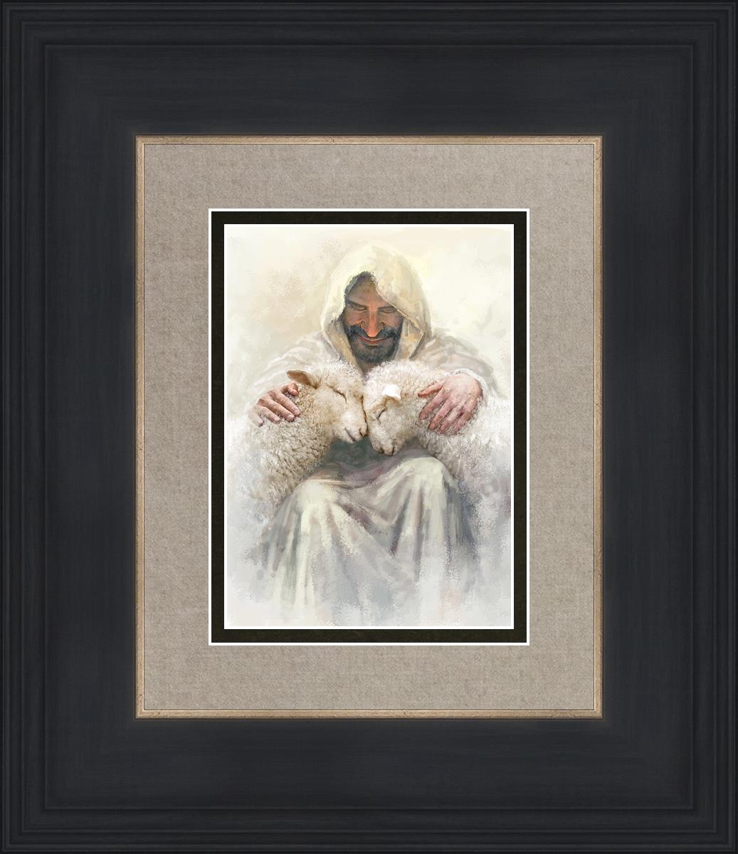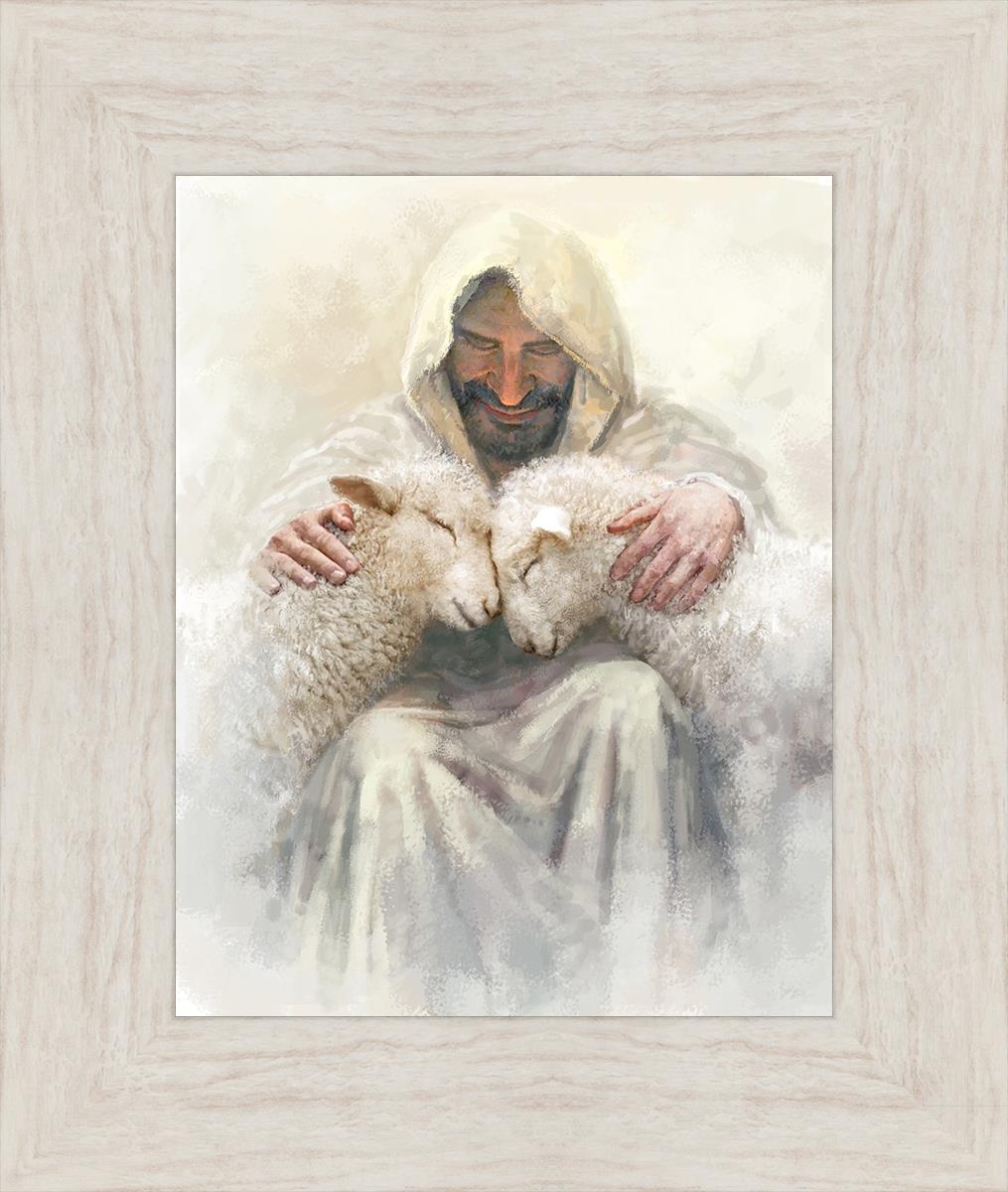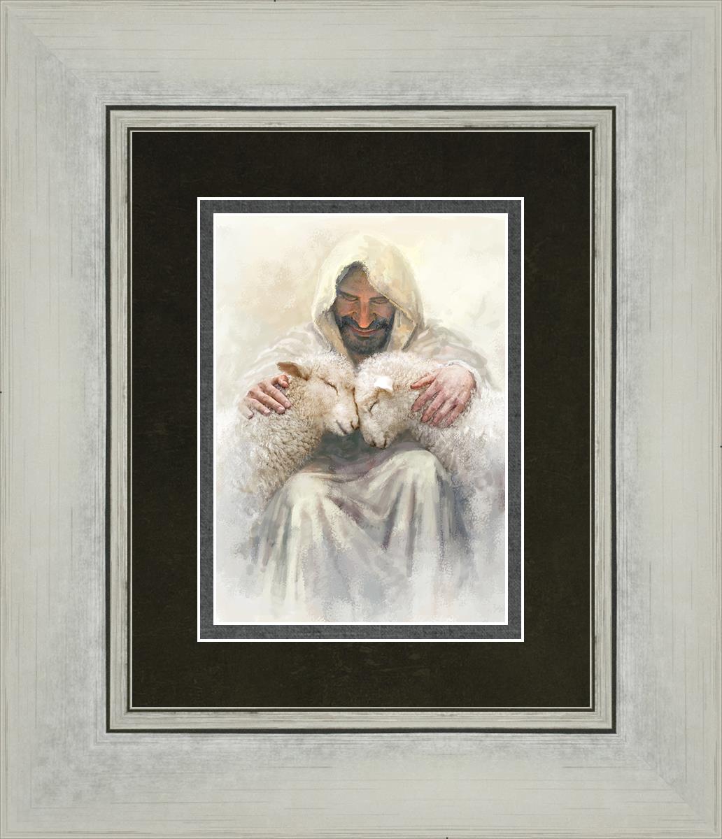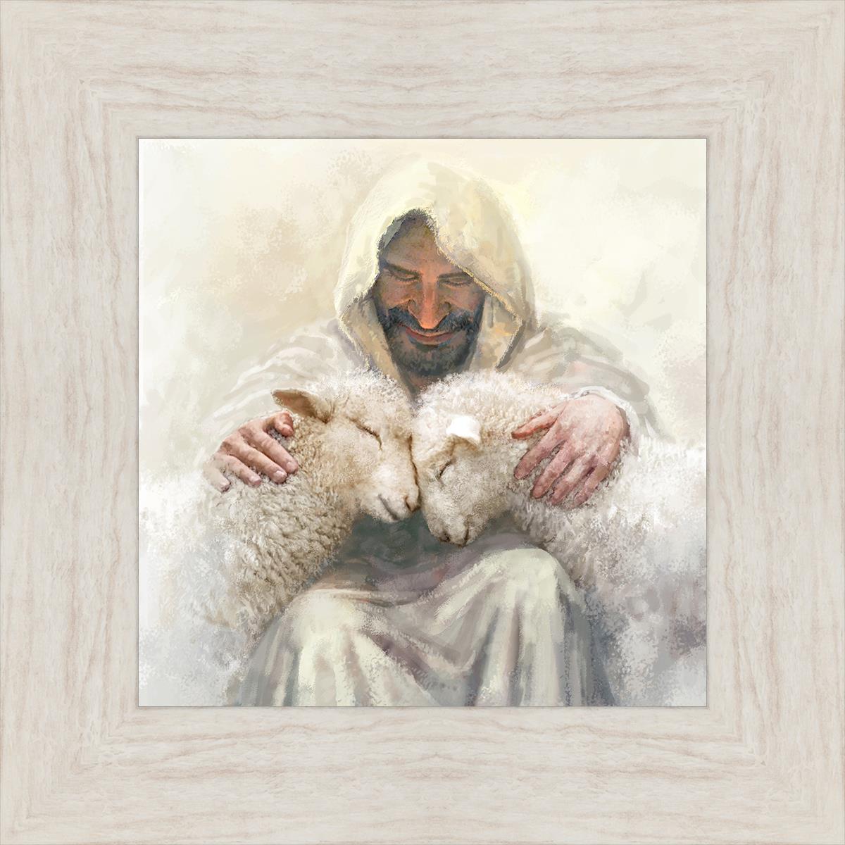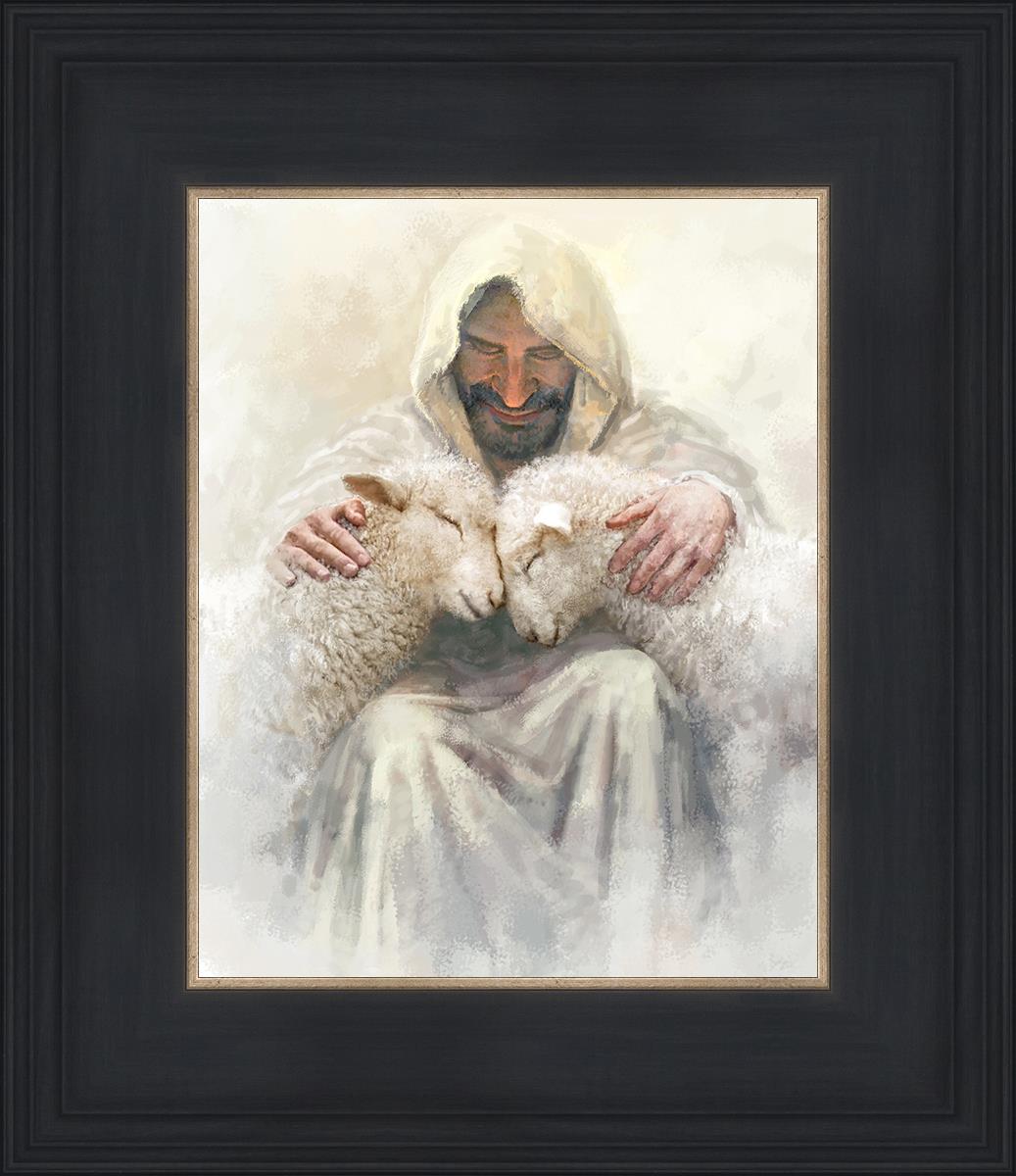 Painting of Love by Yongsung Kim depicting Christ holding two sheep.