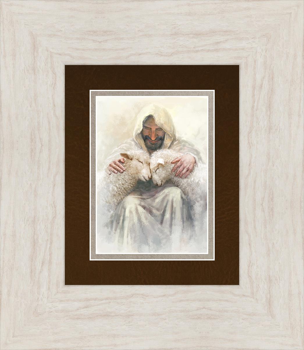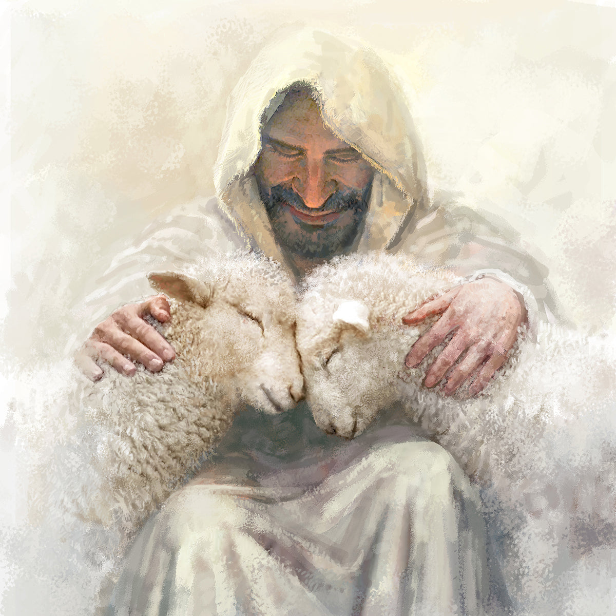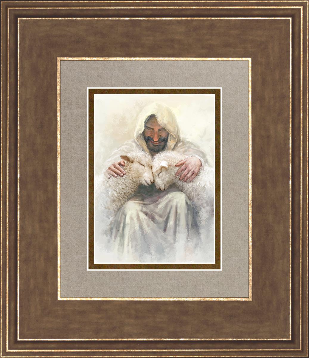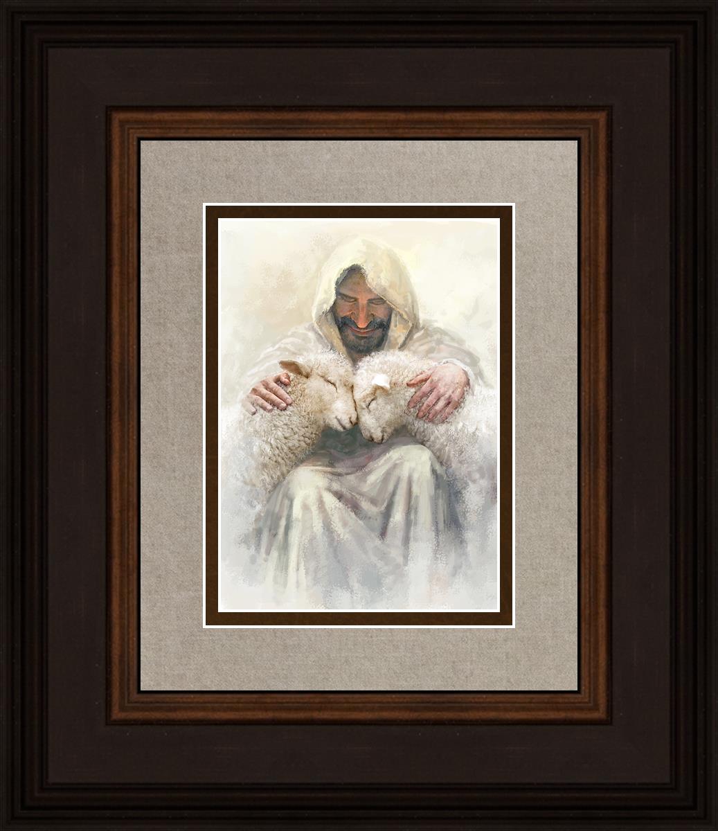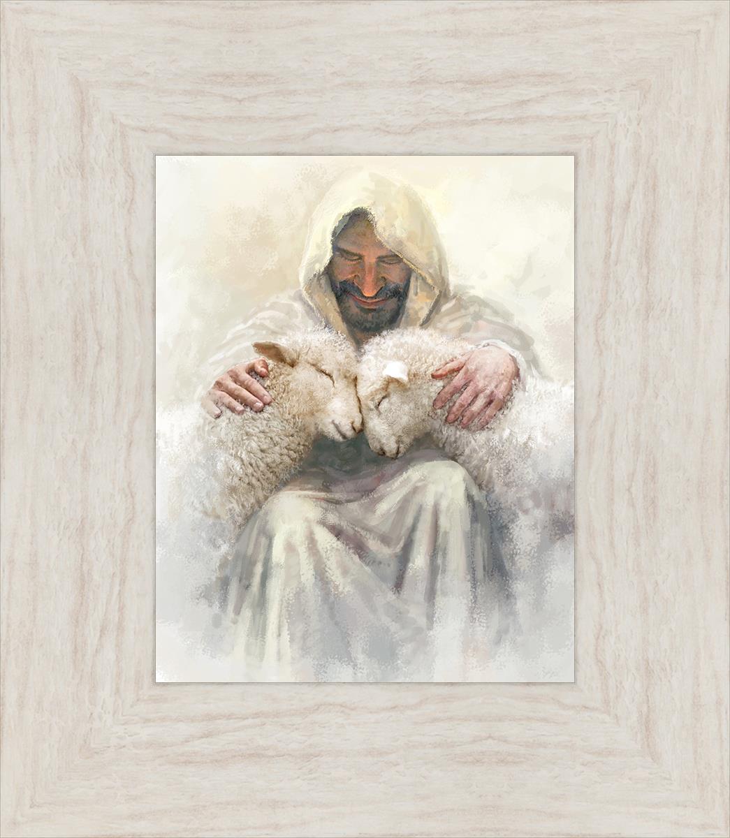 Painting of Love by Yongsung Kim depicting Christ holding two sheep.